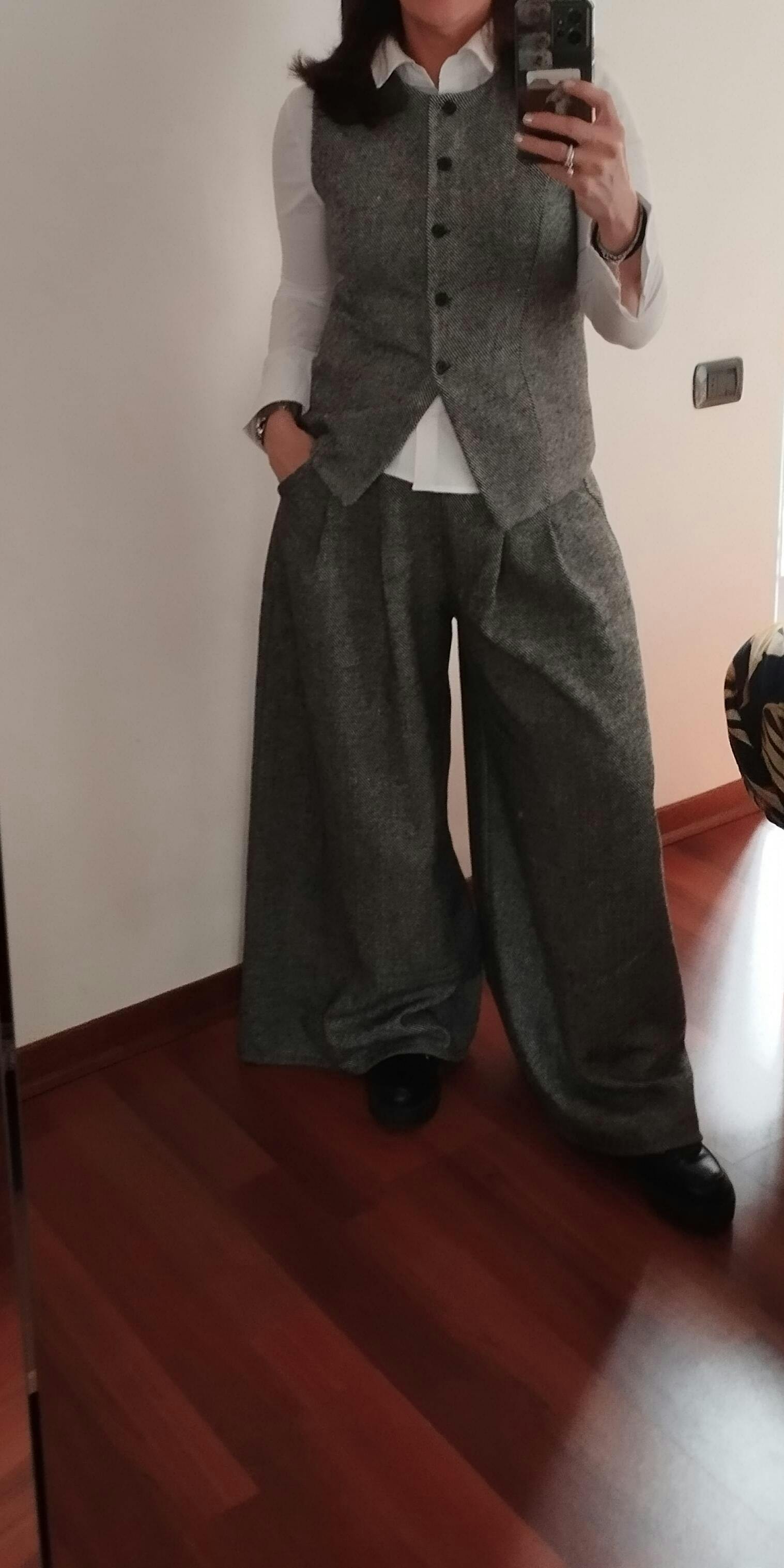 Coordinato spigato gilet con bottoni e pantalone con cintura , elastico in vita