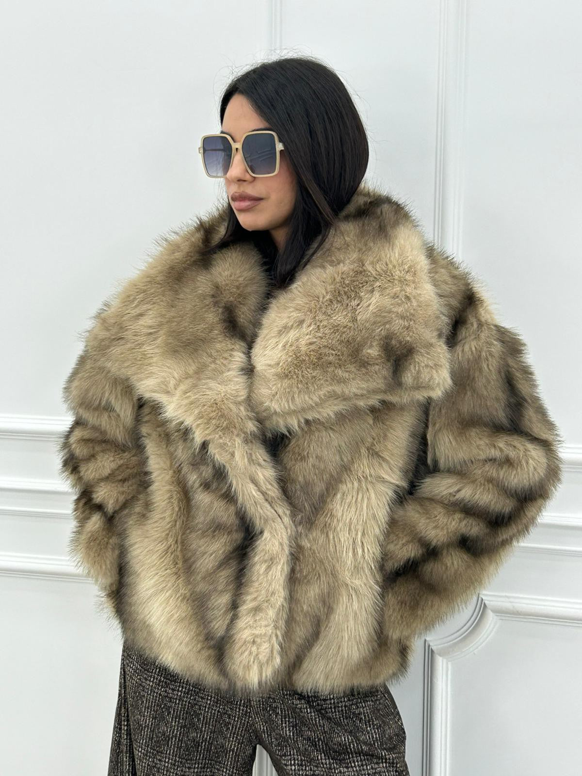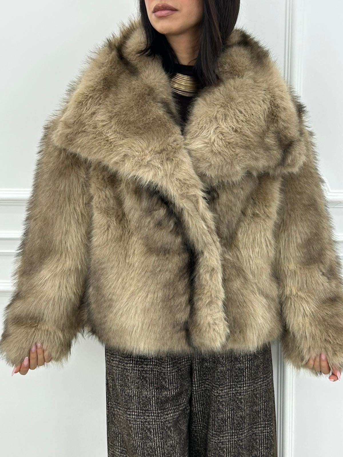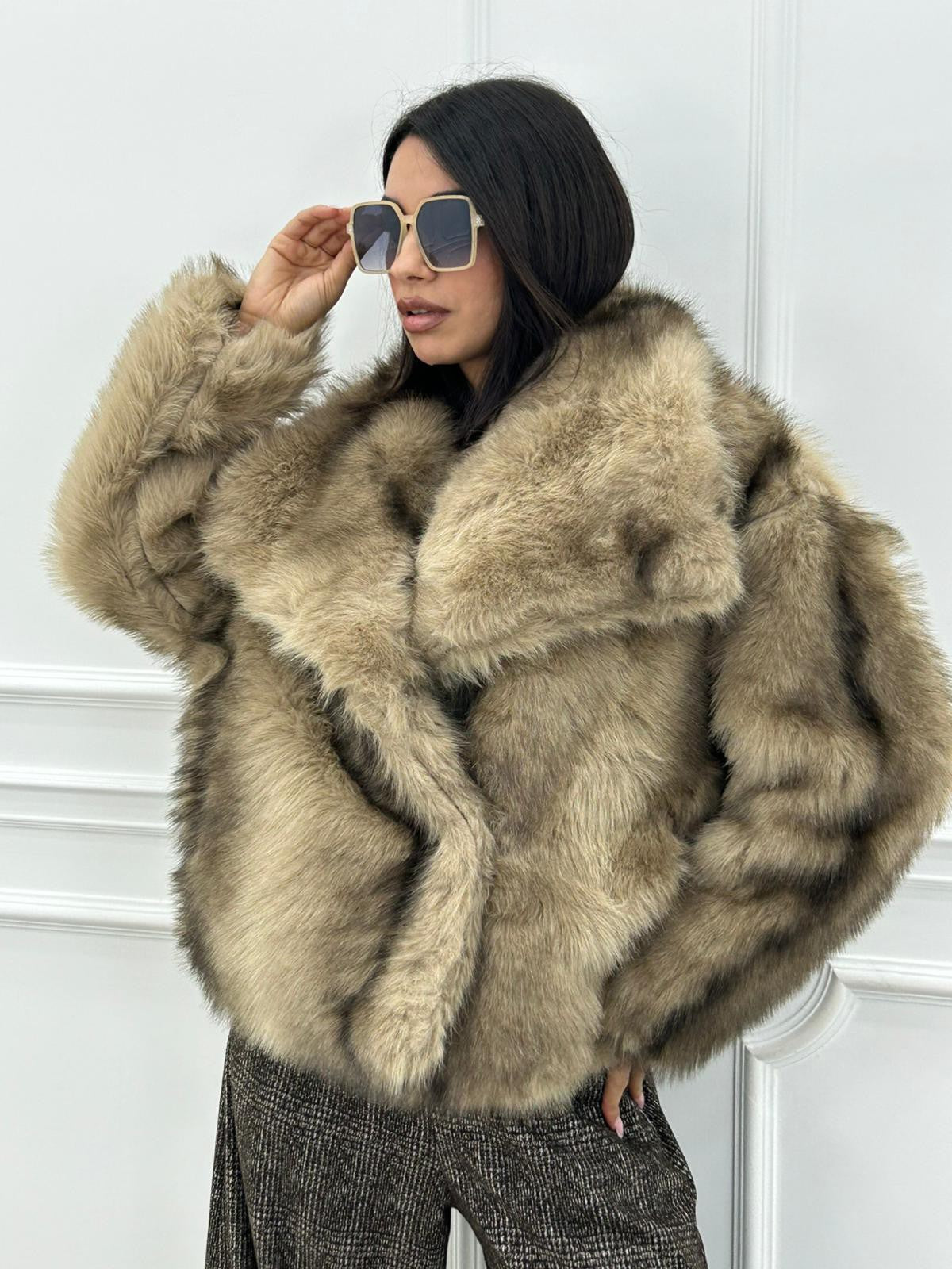 Ecopelliccia sfumata , con tasche e chiusura clip, interno foderata
