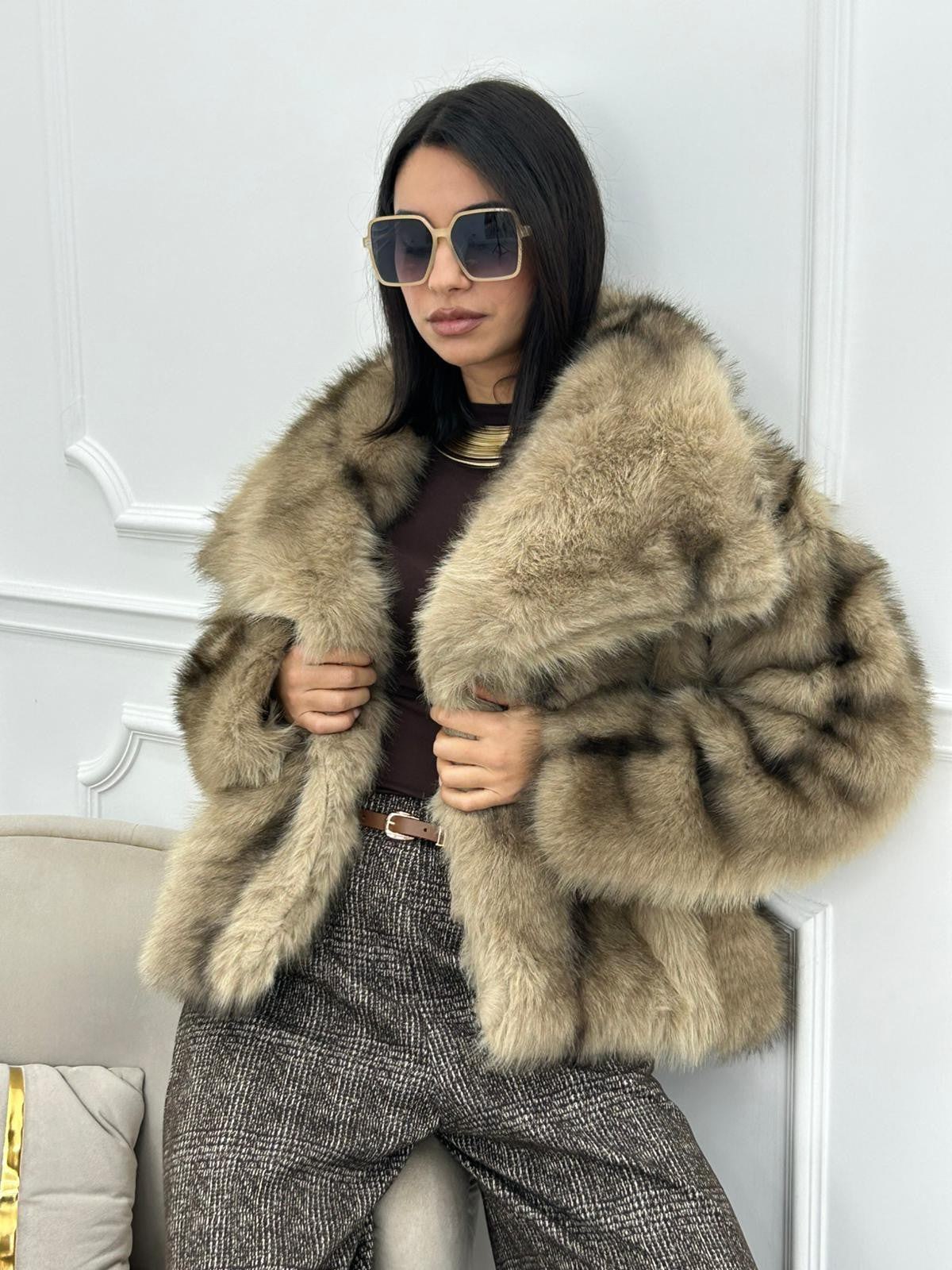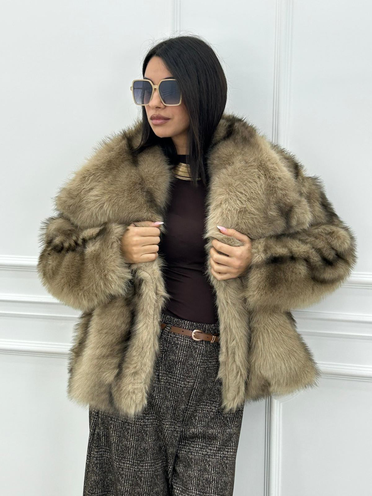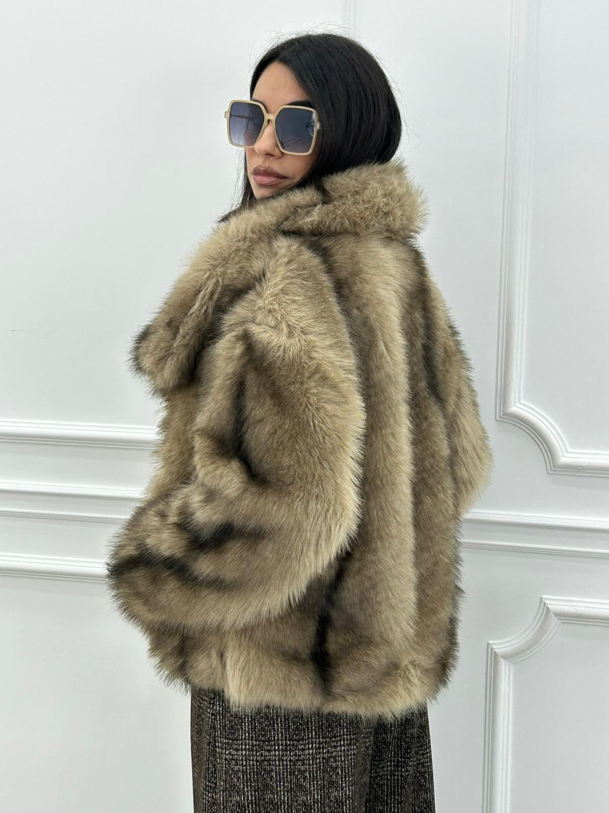 Ecopelliccia sfumata , con tasche e chiusura clip, interno foderata