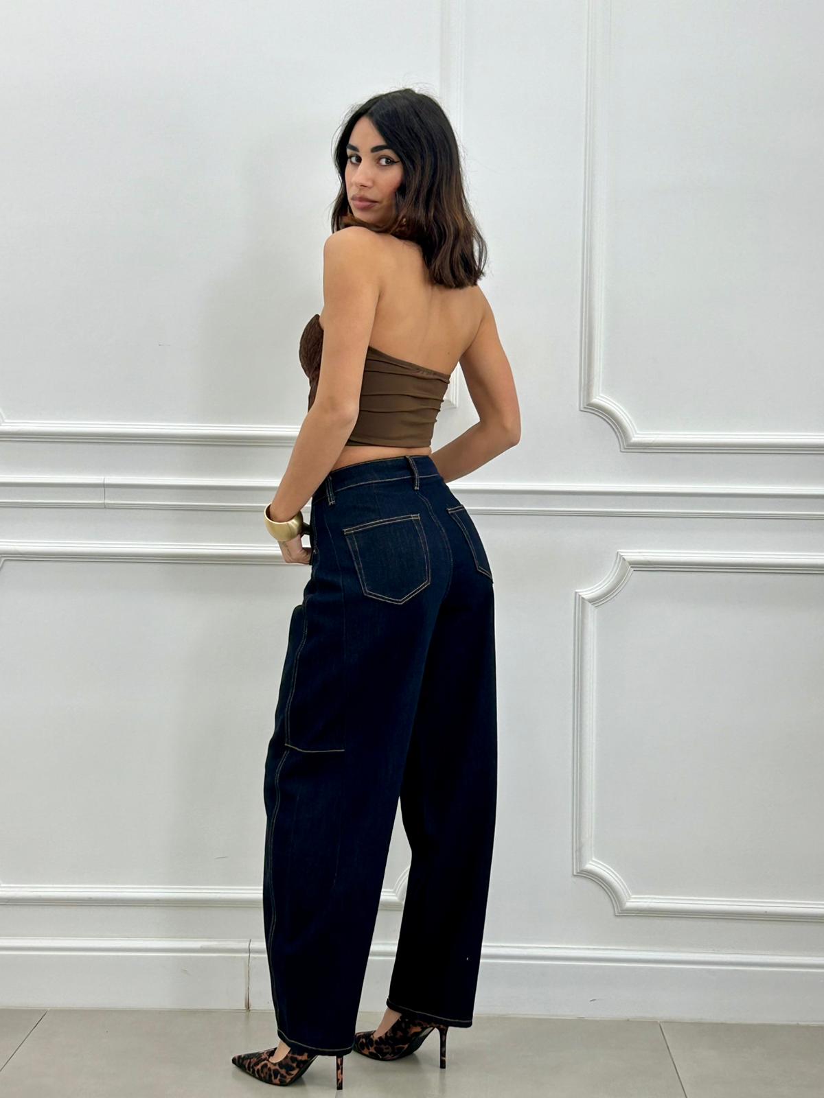Jeans vita alta balloon ,lavaggio scuro