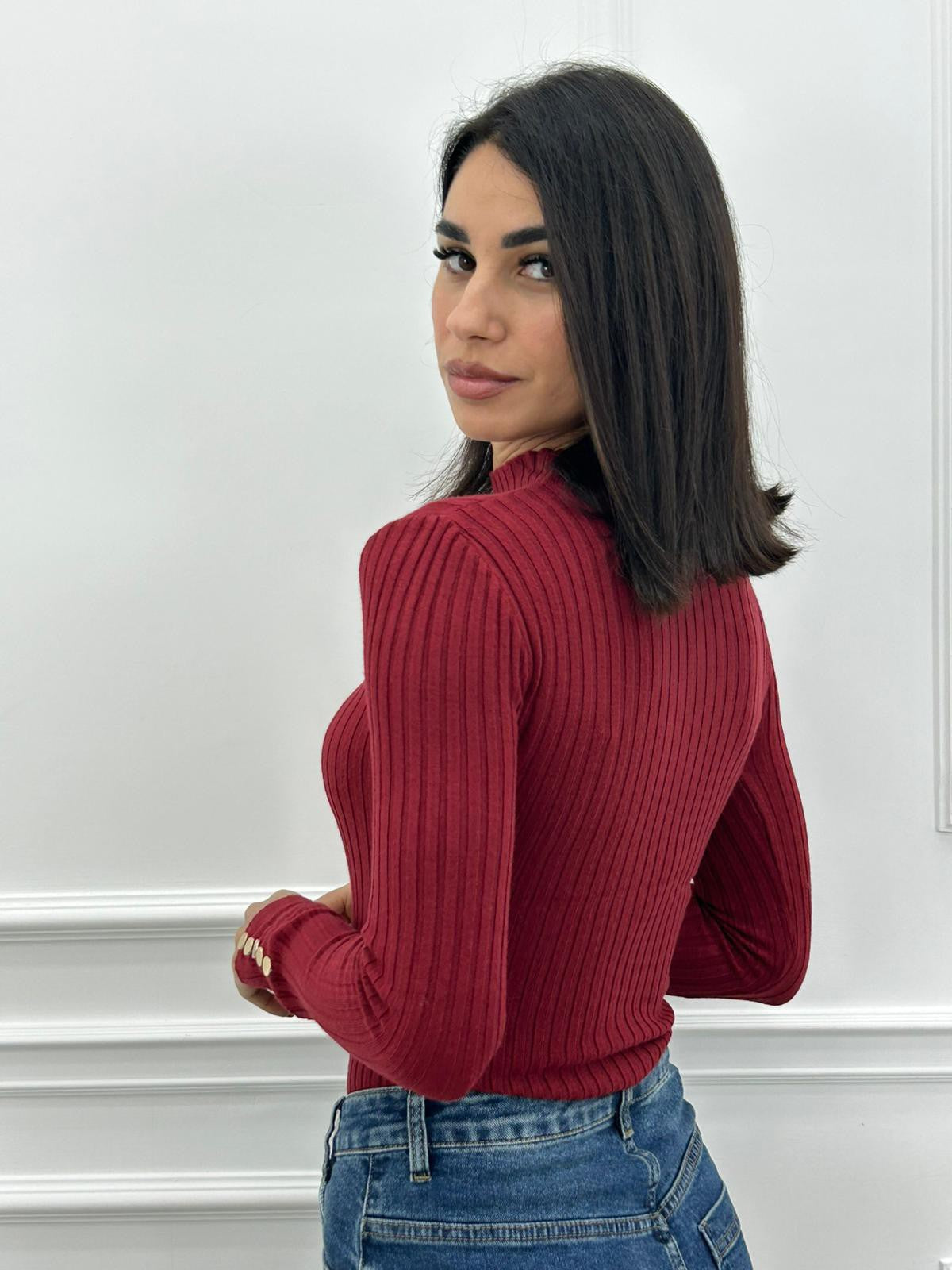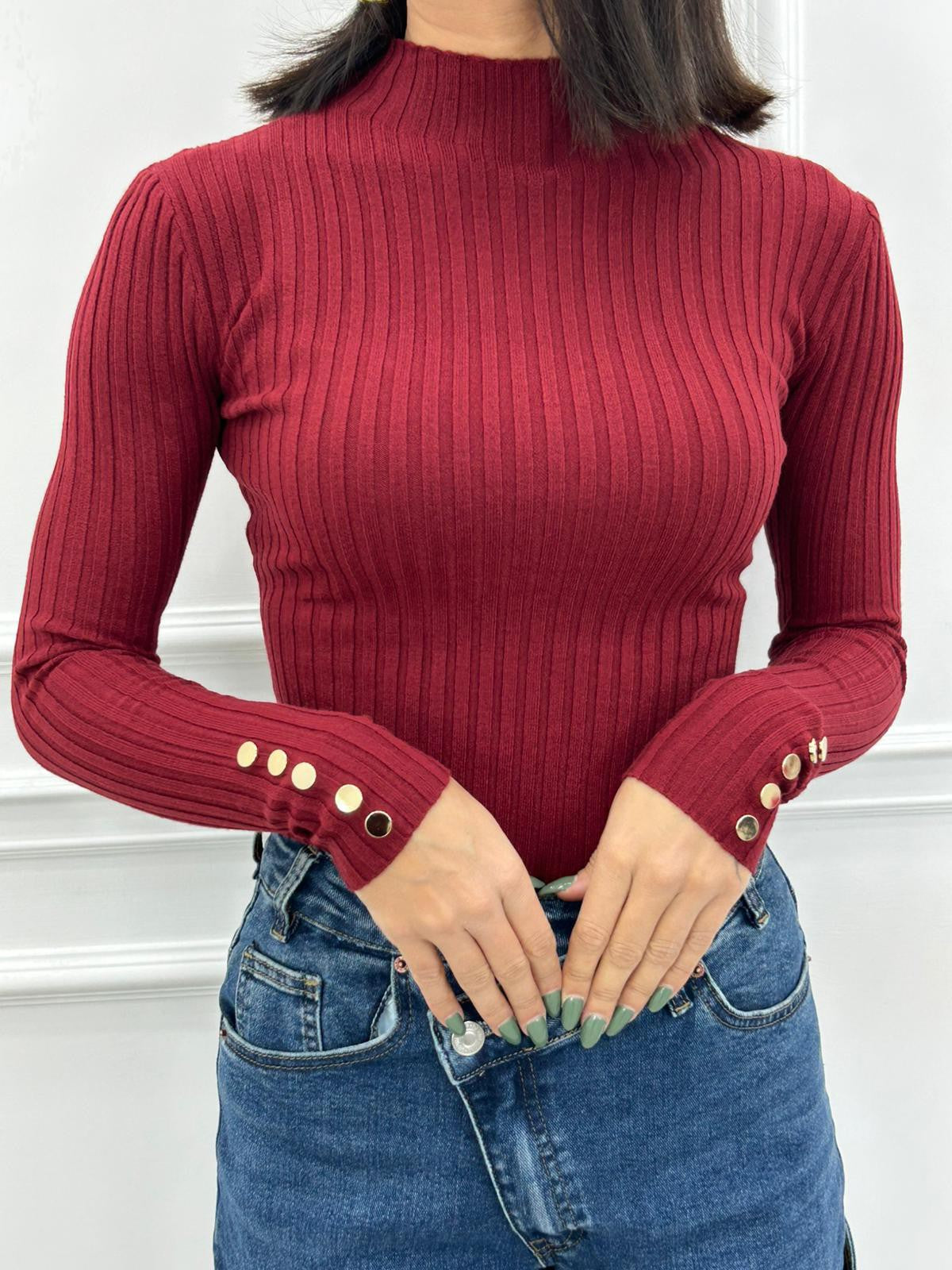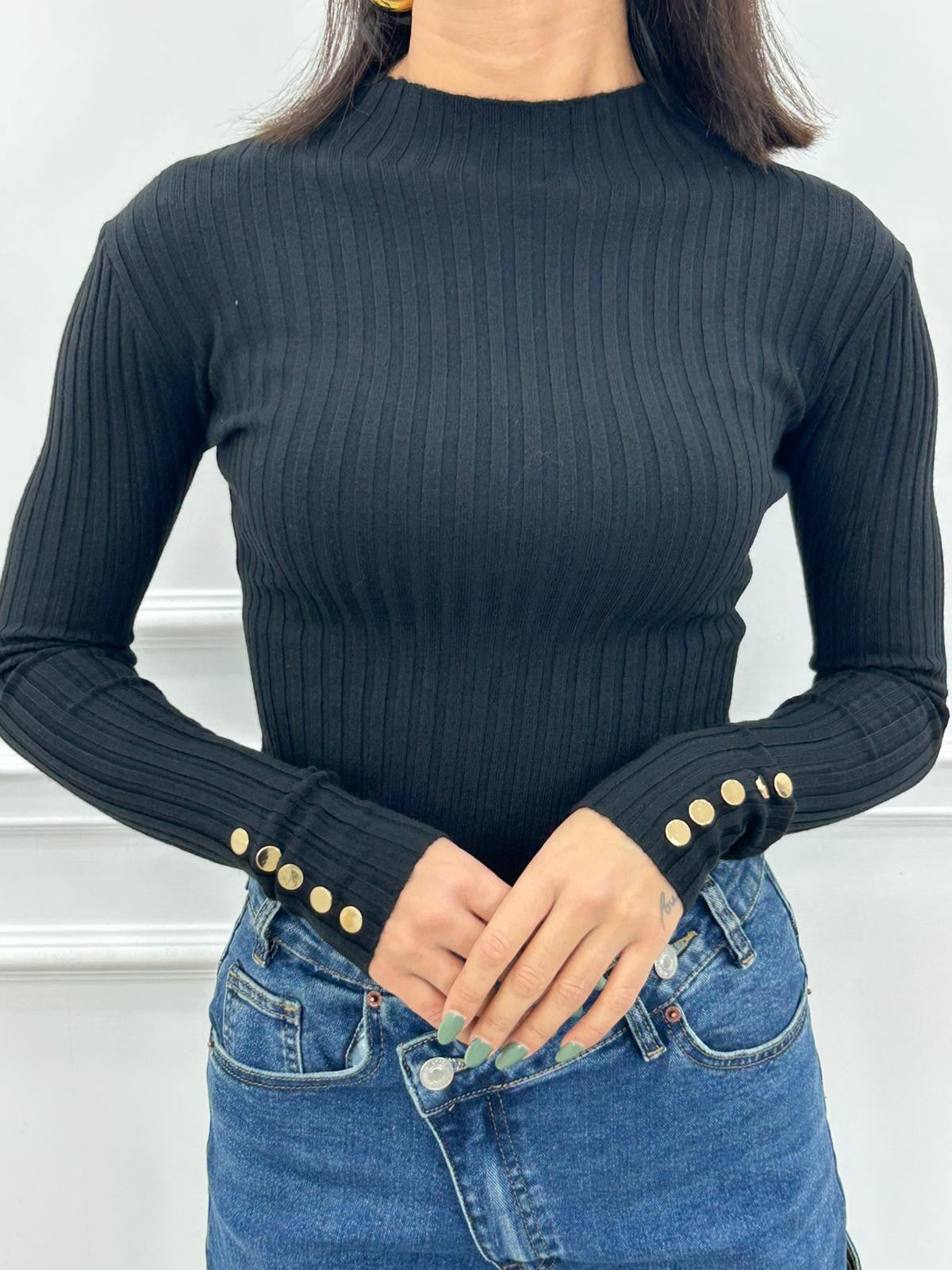 Maglia costina con bottoncini oro