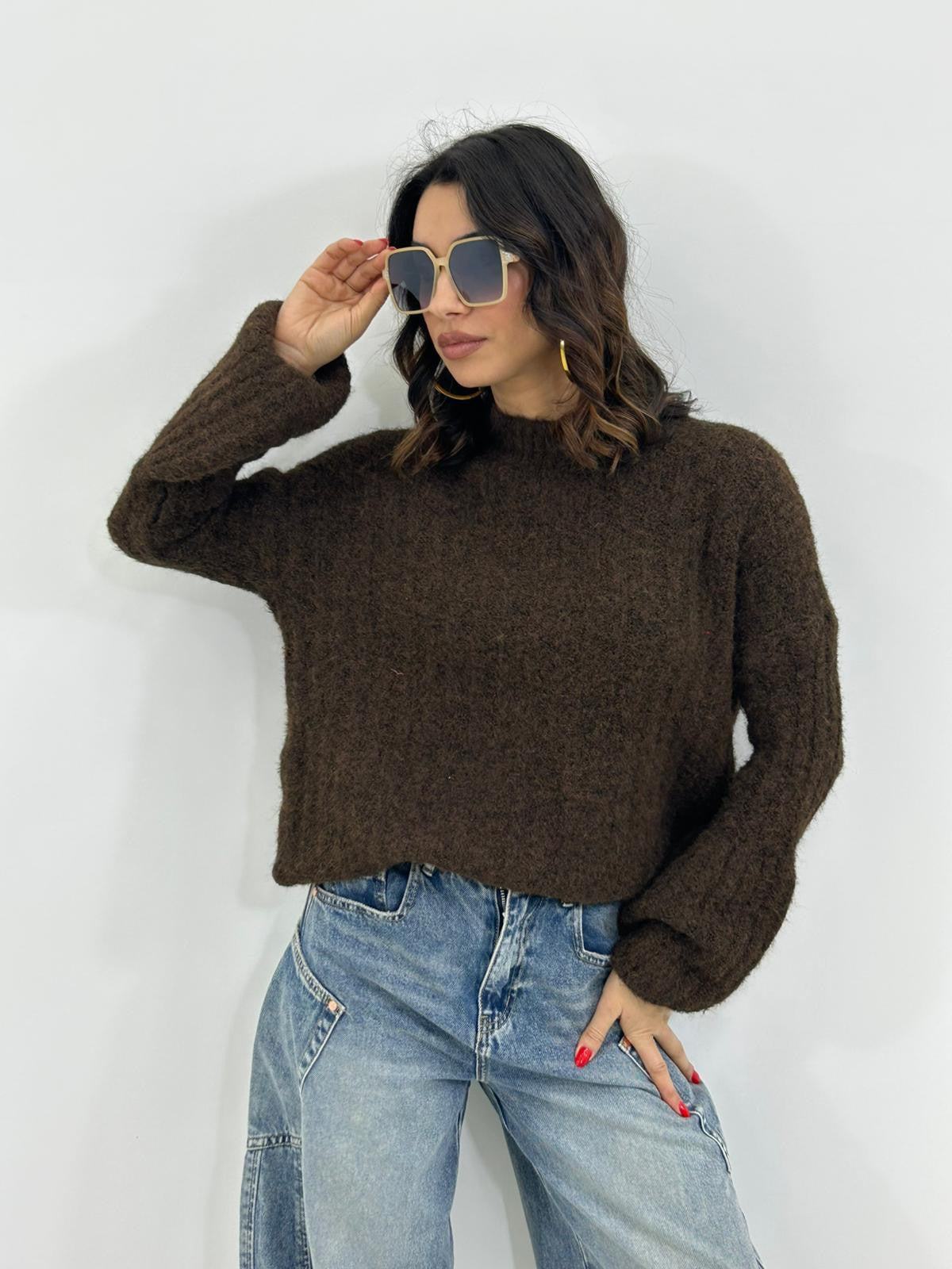 Maglione lana tinta unita , con manica sbuffo