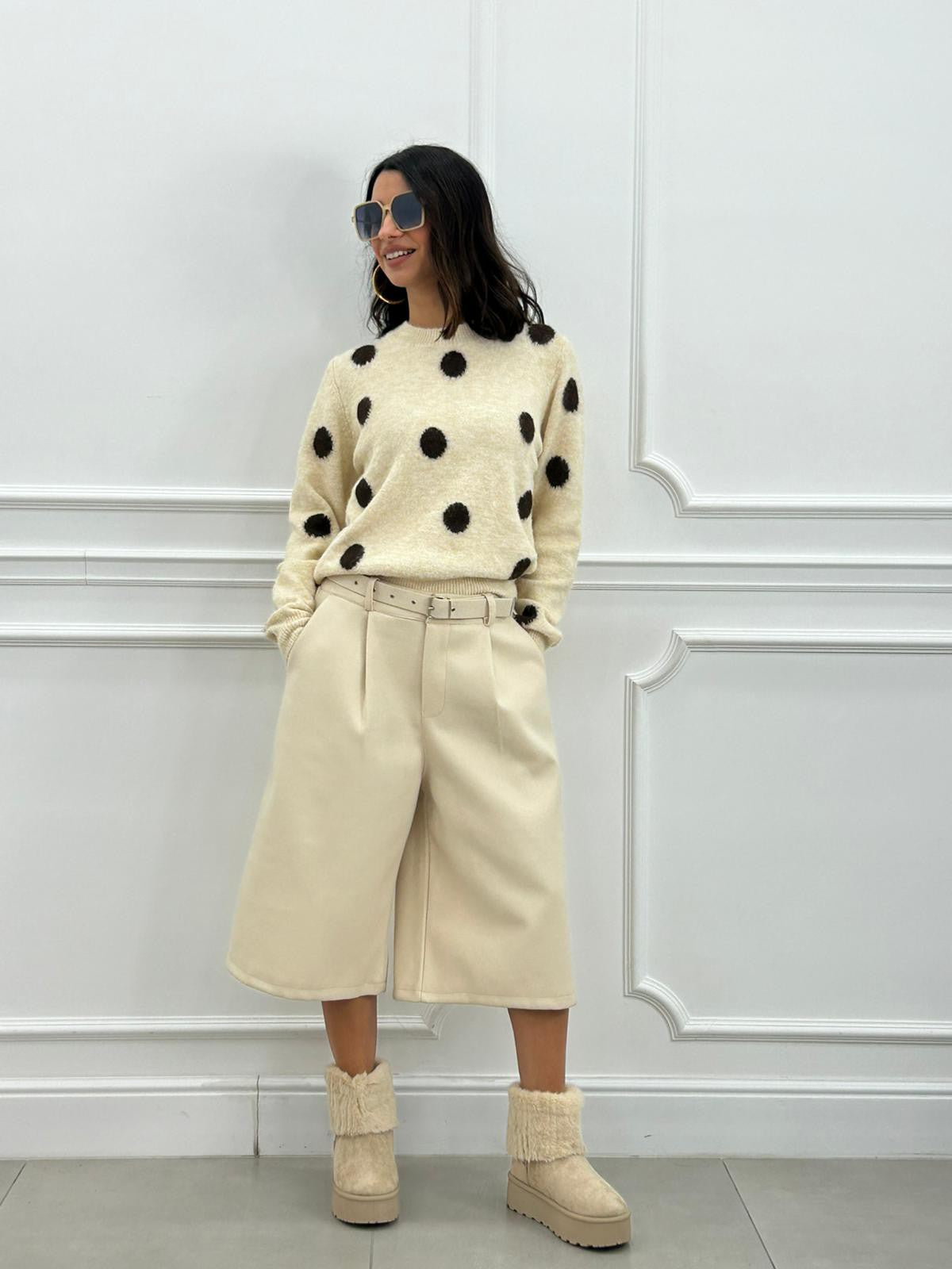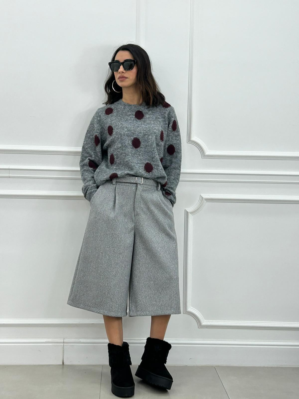Bermuda in panno con cintura e tasche ,elastico in vita