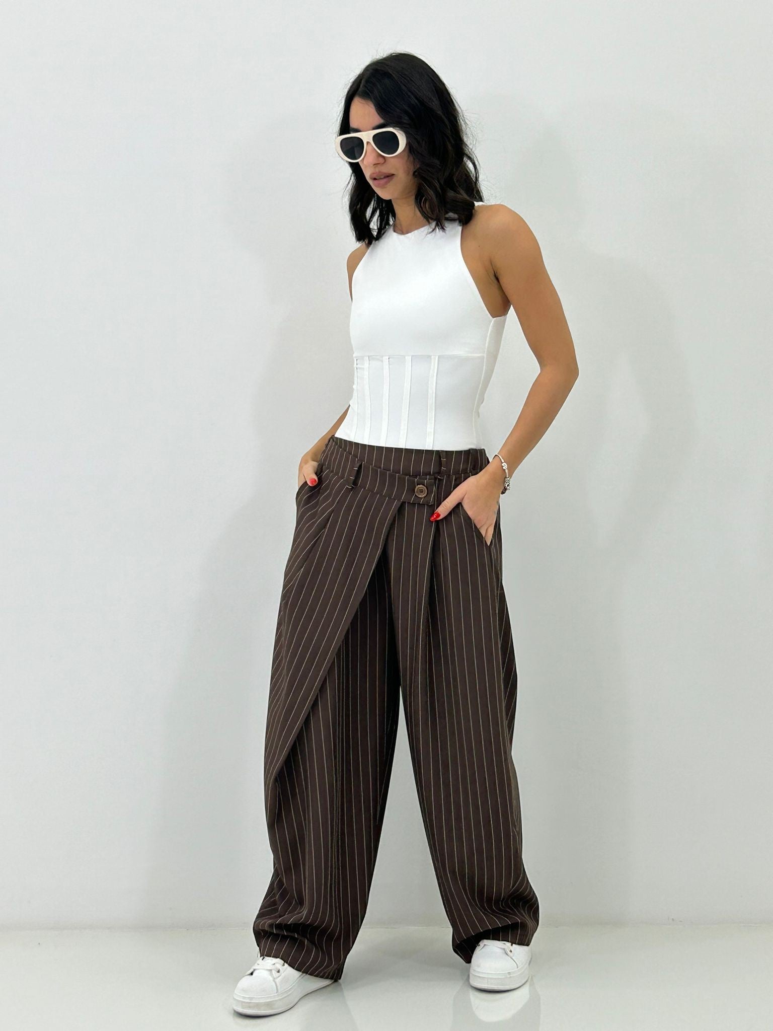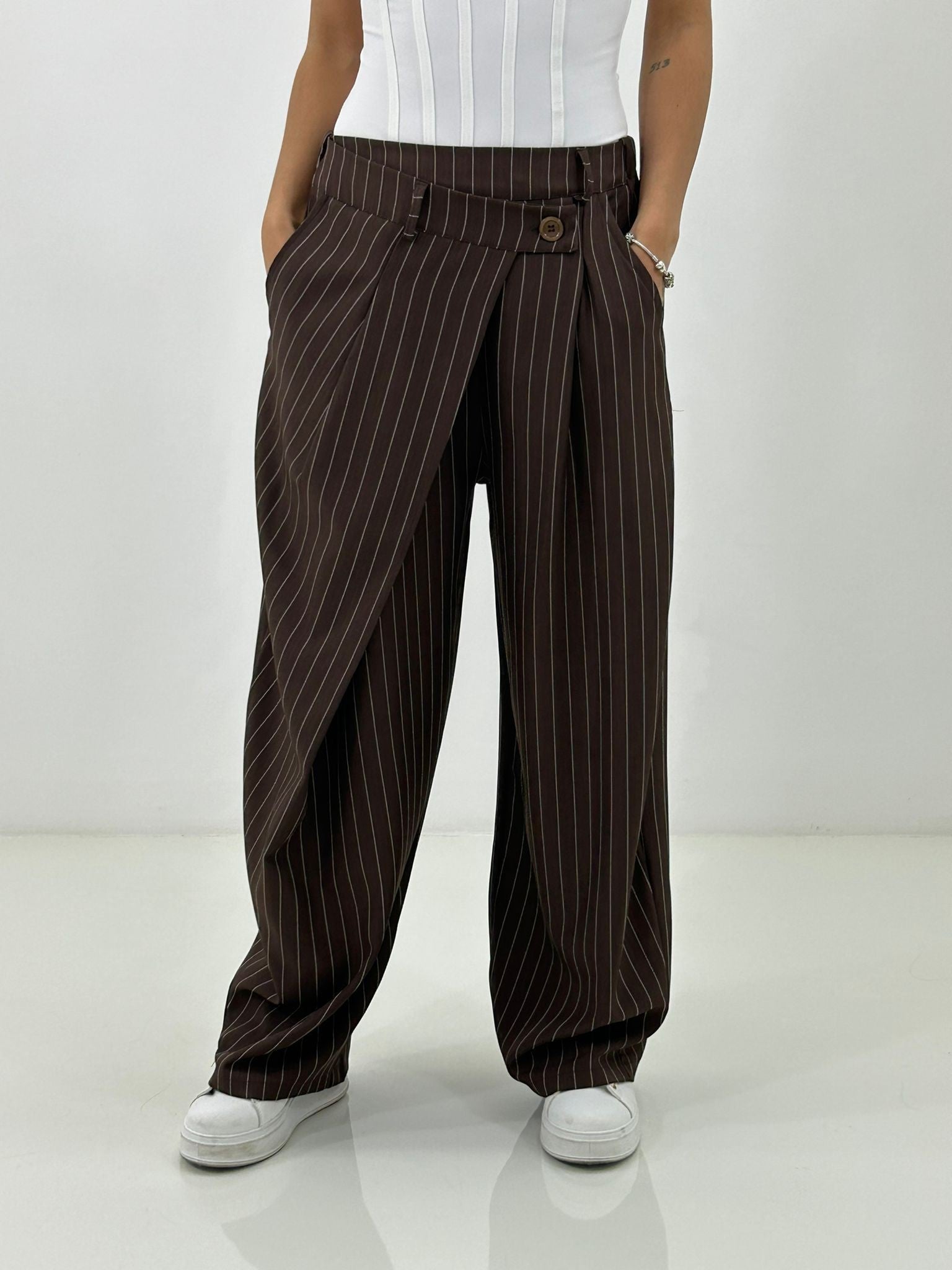 Pantalone portafoglio gessato con tasche , elastico in vita