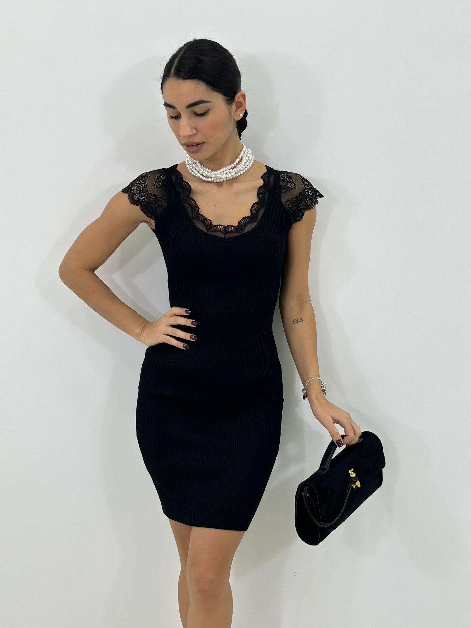 Abito costina con dettaglio in pizzo