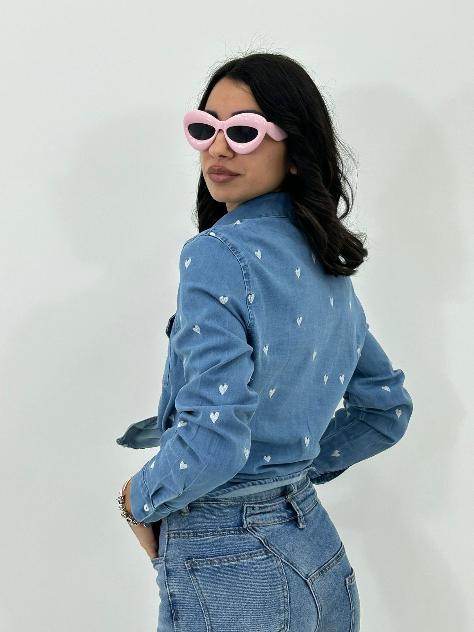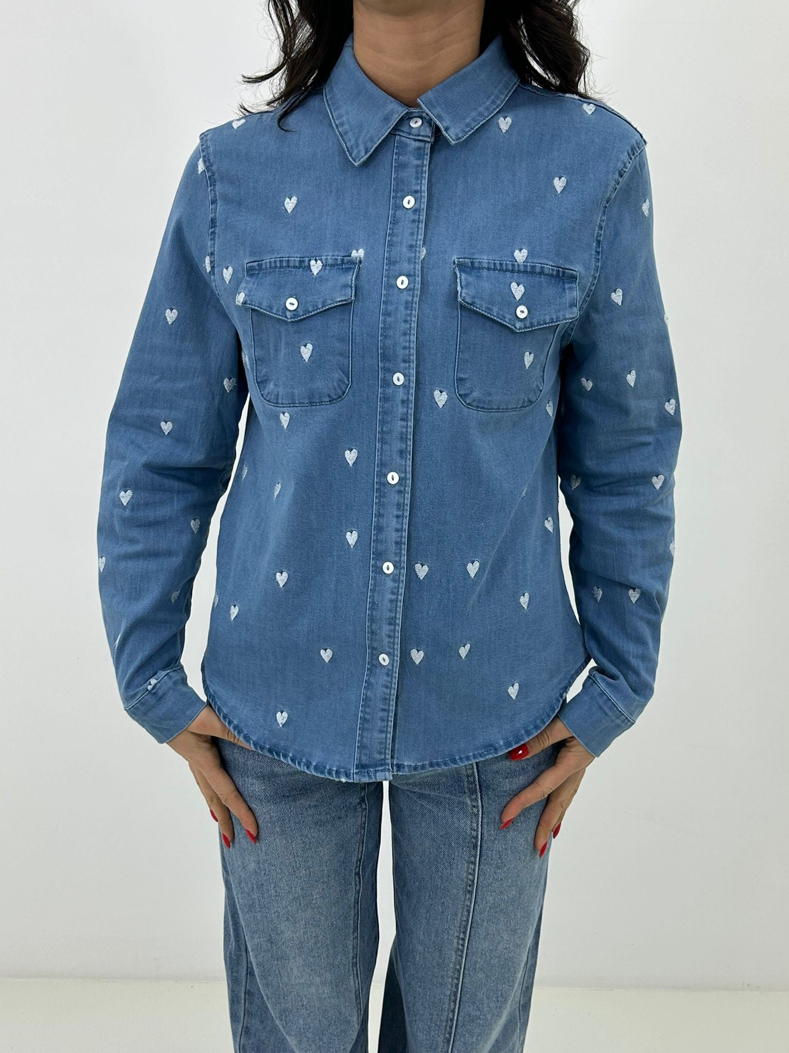 Camicia denim con ricamo cuore