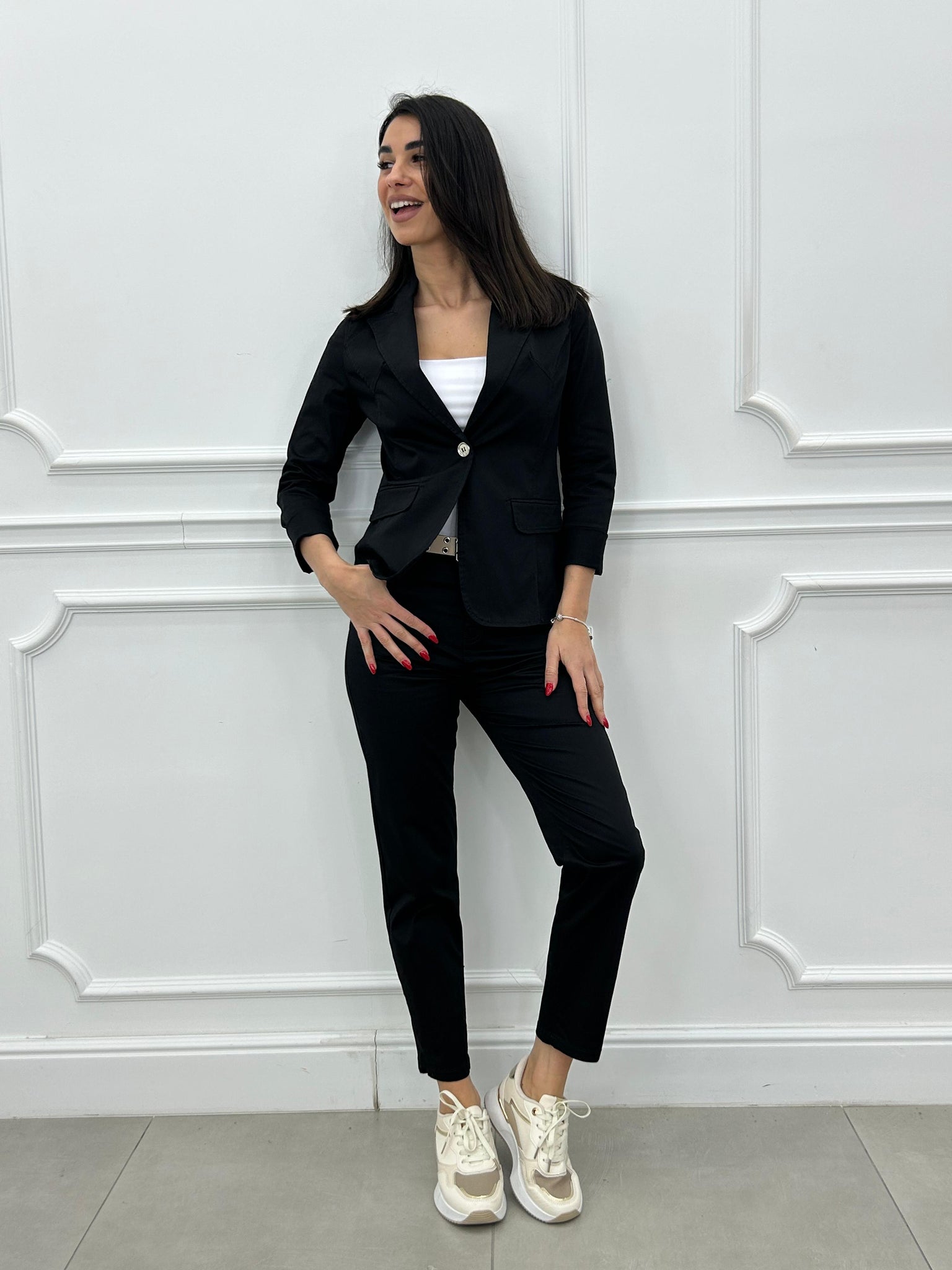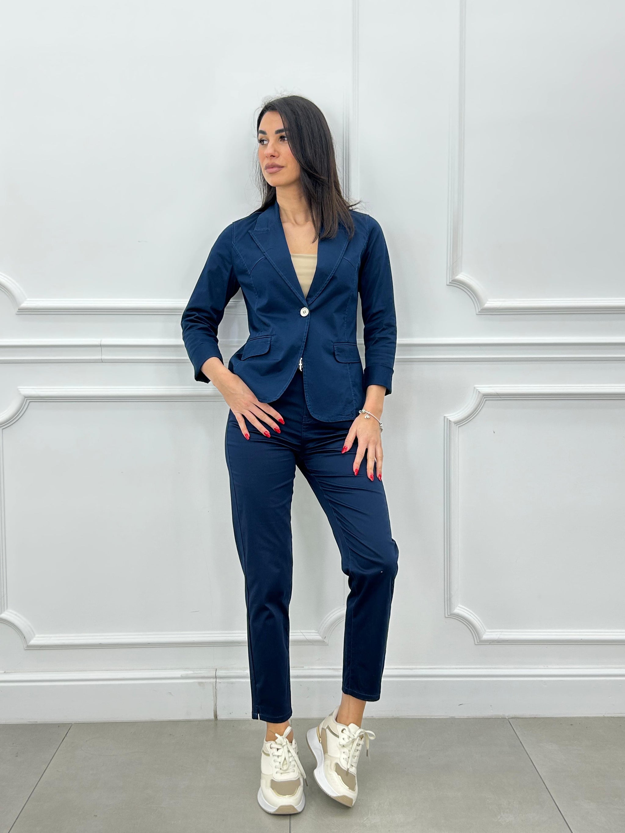 Completo composto da giacca monobottone e pantalone modello capri.