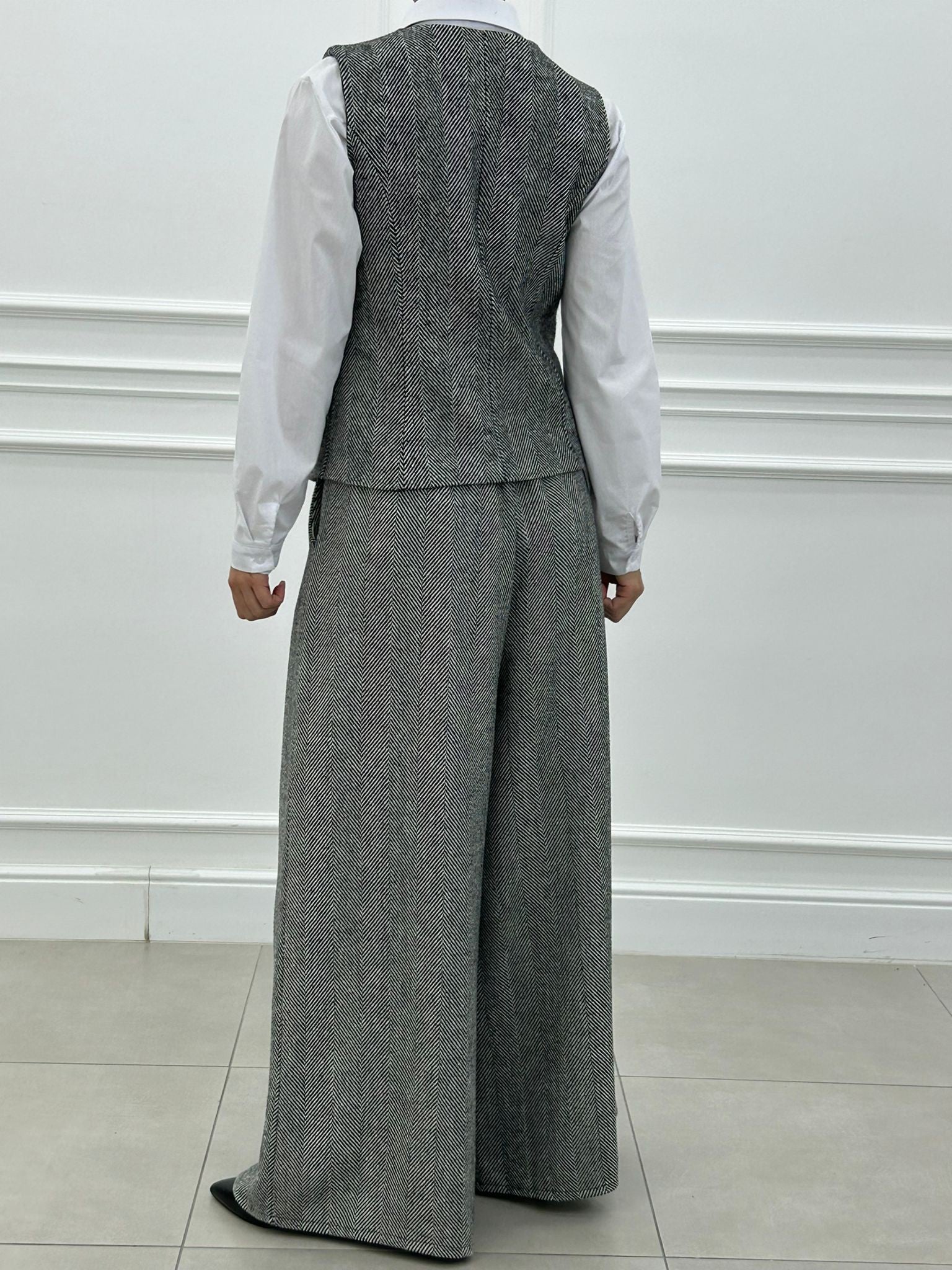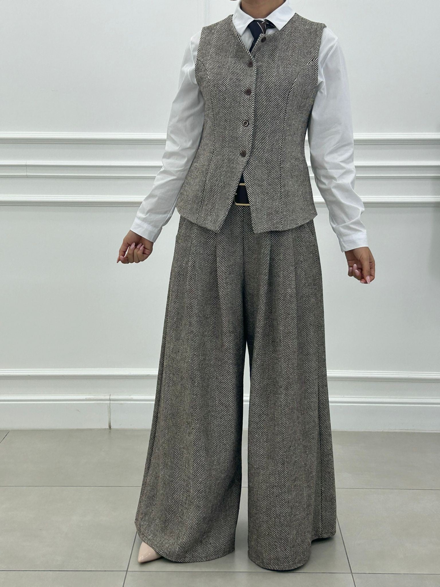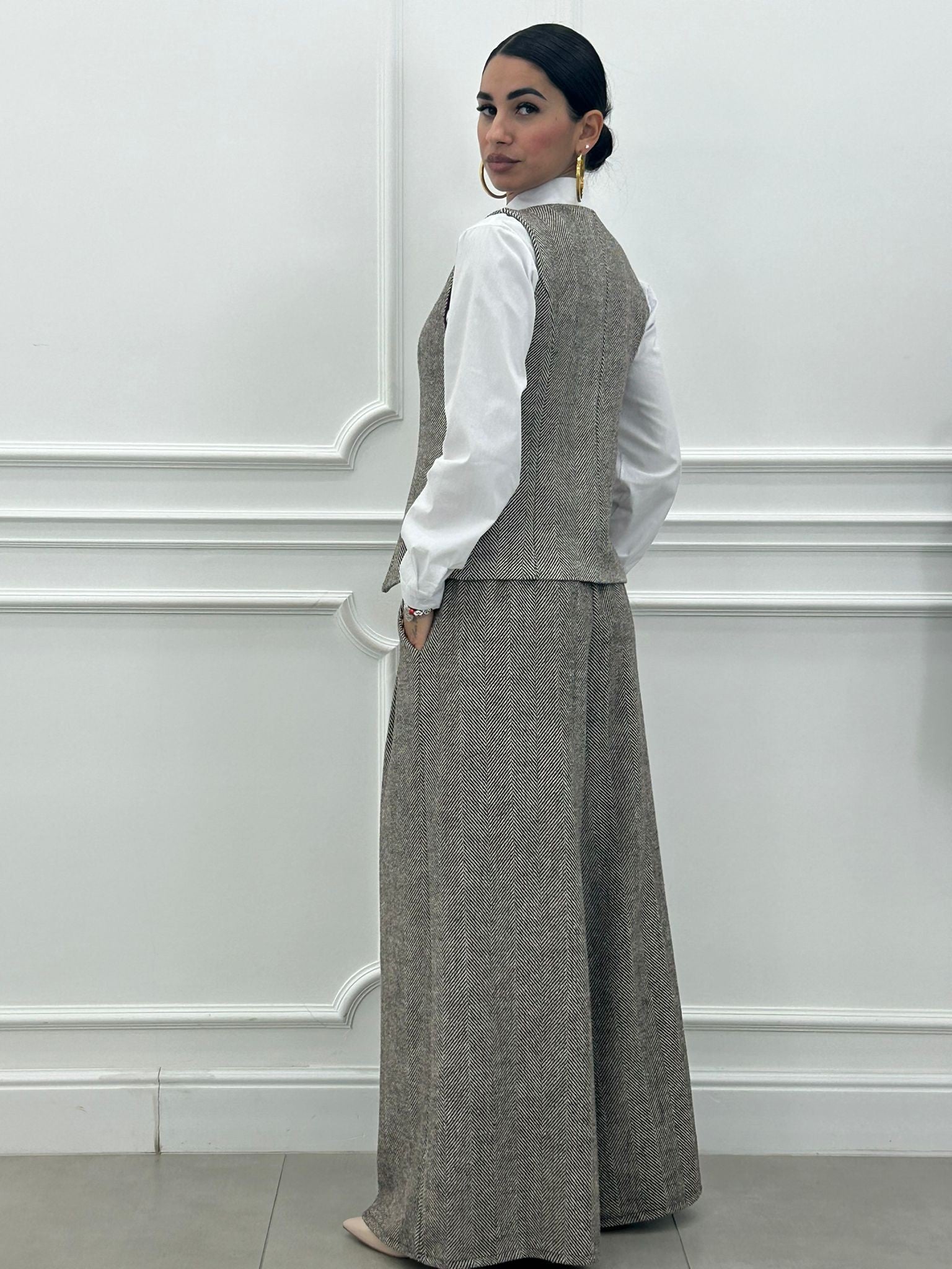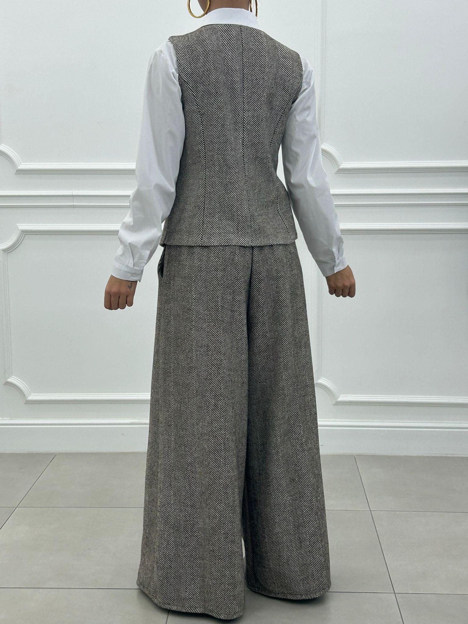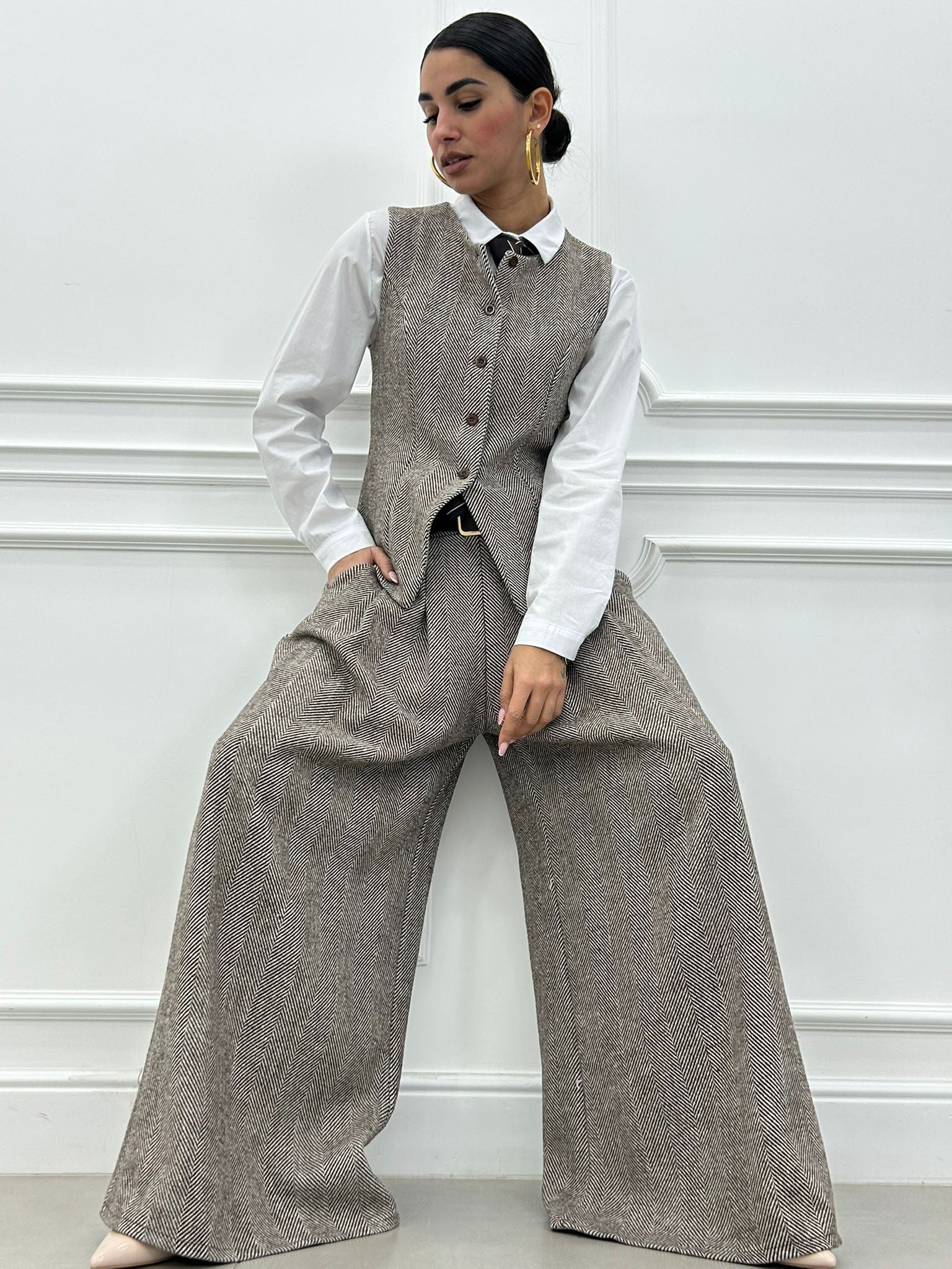 Coordinato spigato gilet con bottoni e pantalone con cintura , elastico in vita