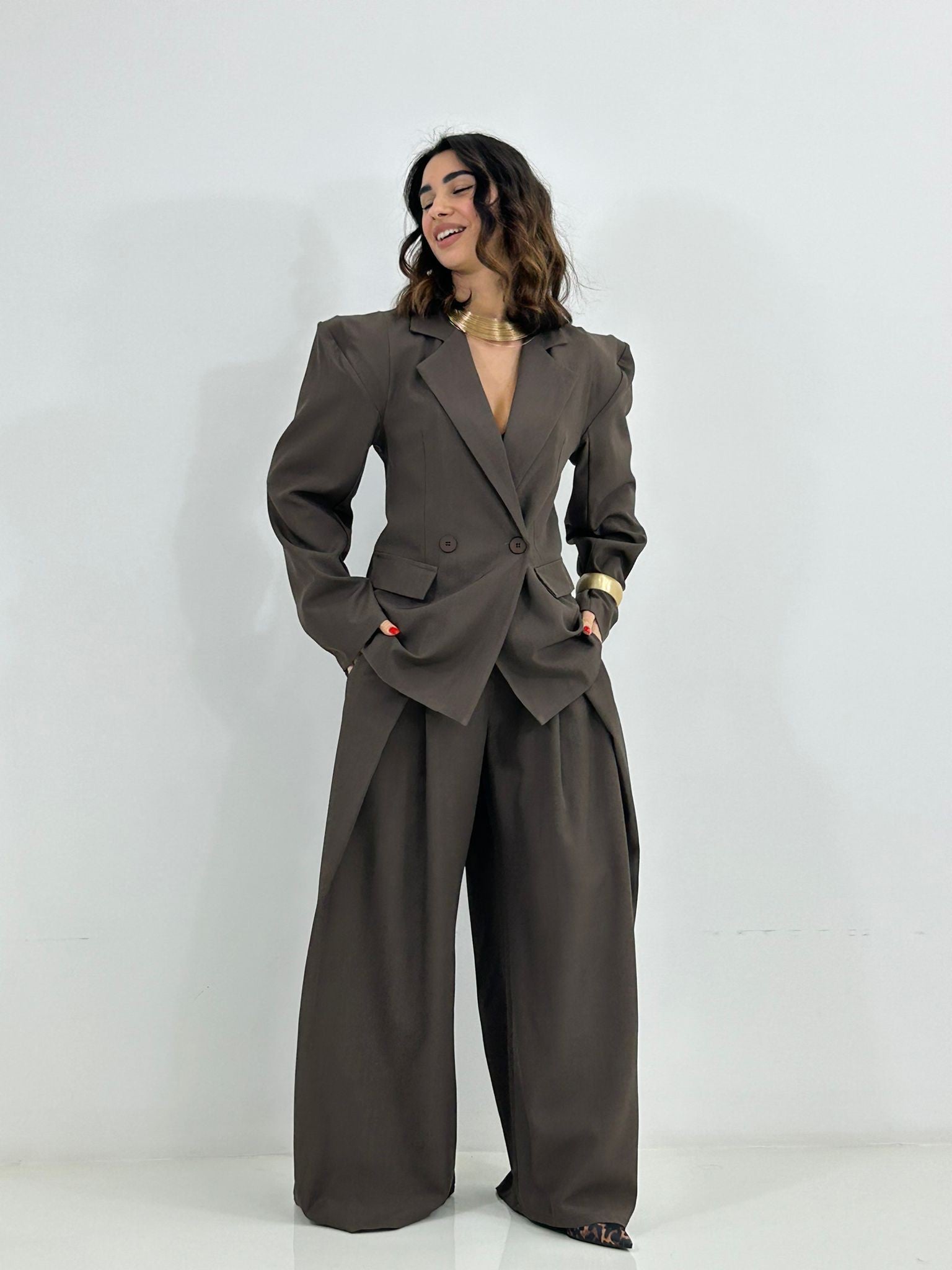 Coordinato giacca doppio petto e pantalone con elastico in vita e tasche