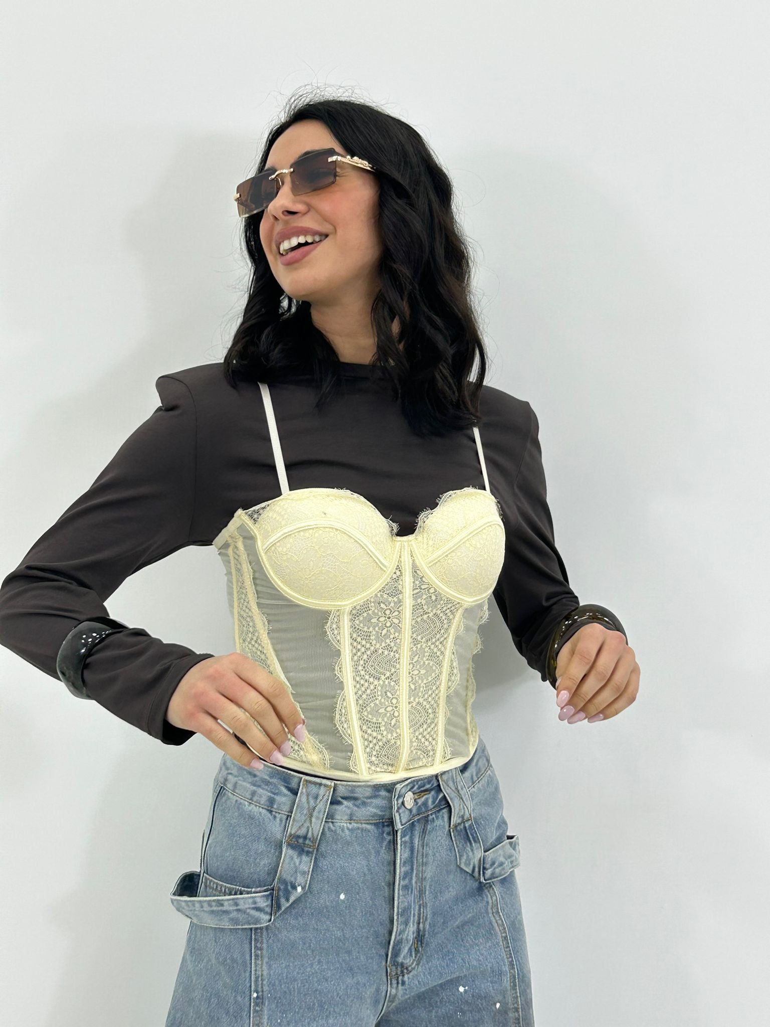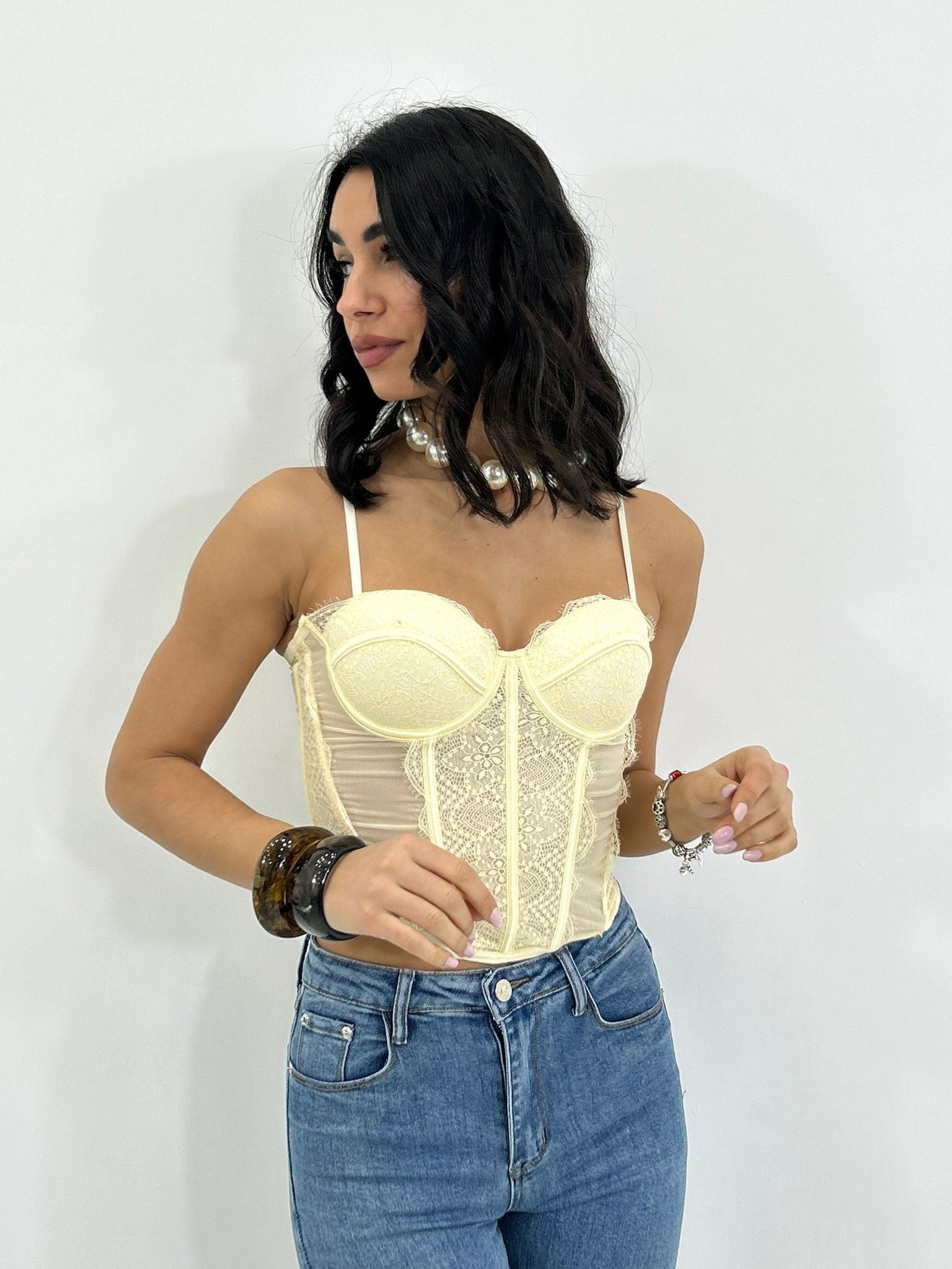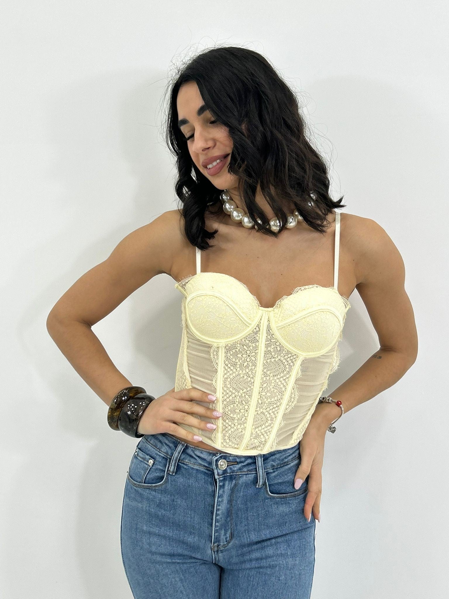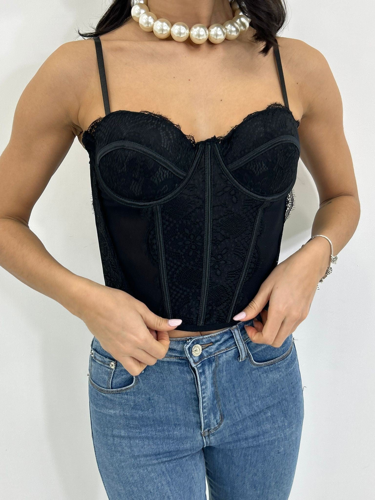 Corpetto in pizzo , coppe al seno , bretelline regolabili