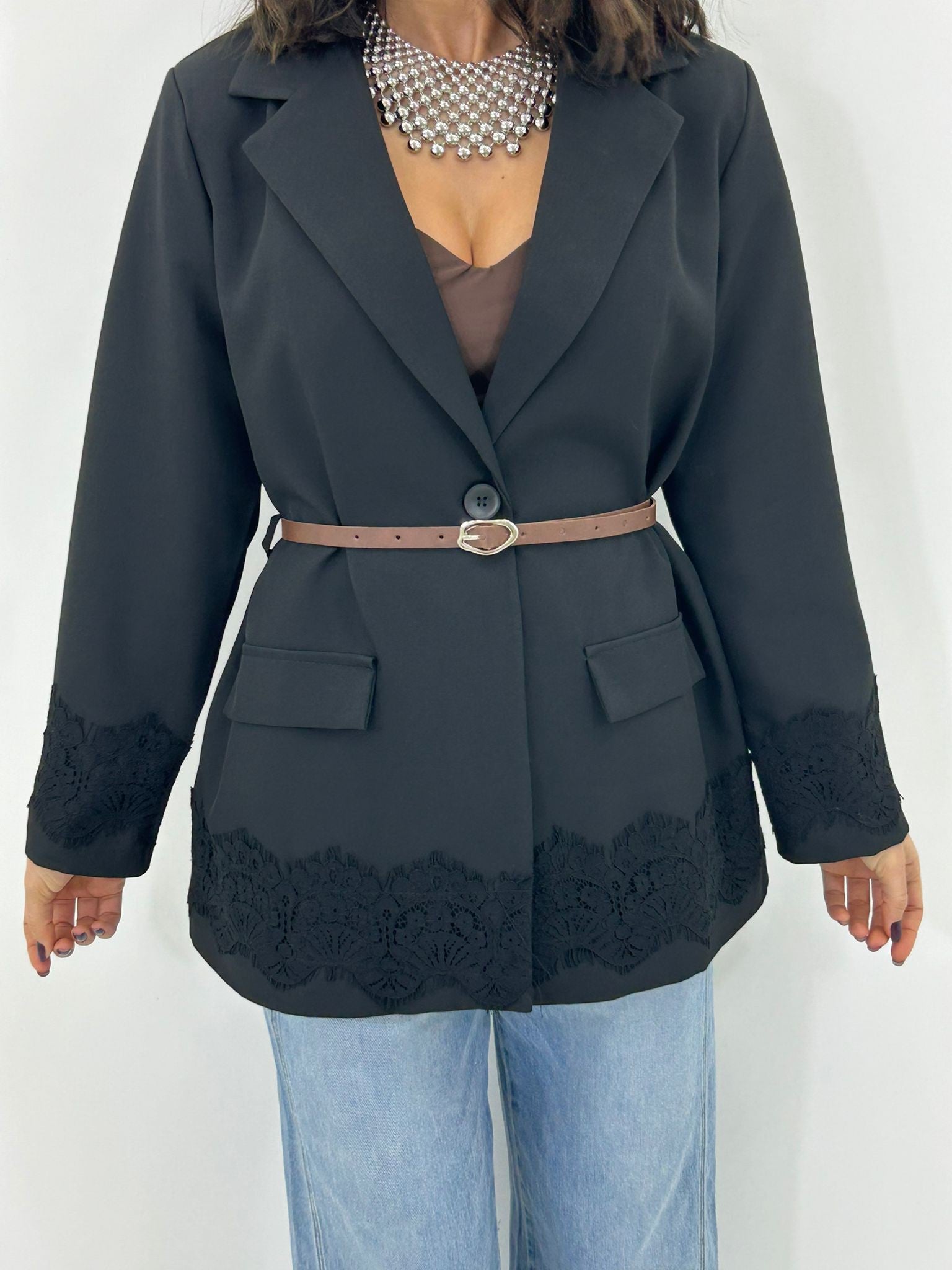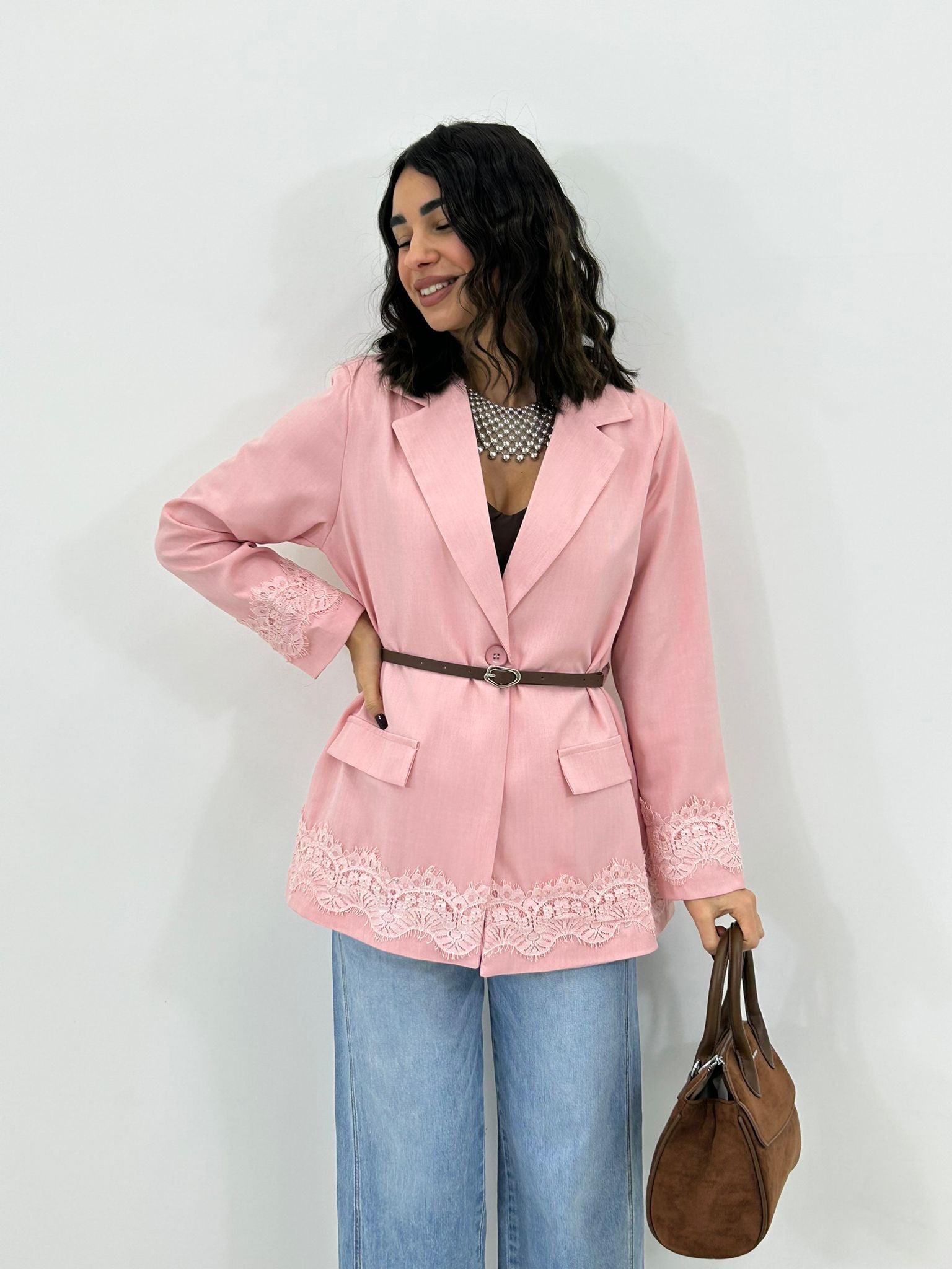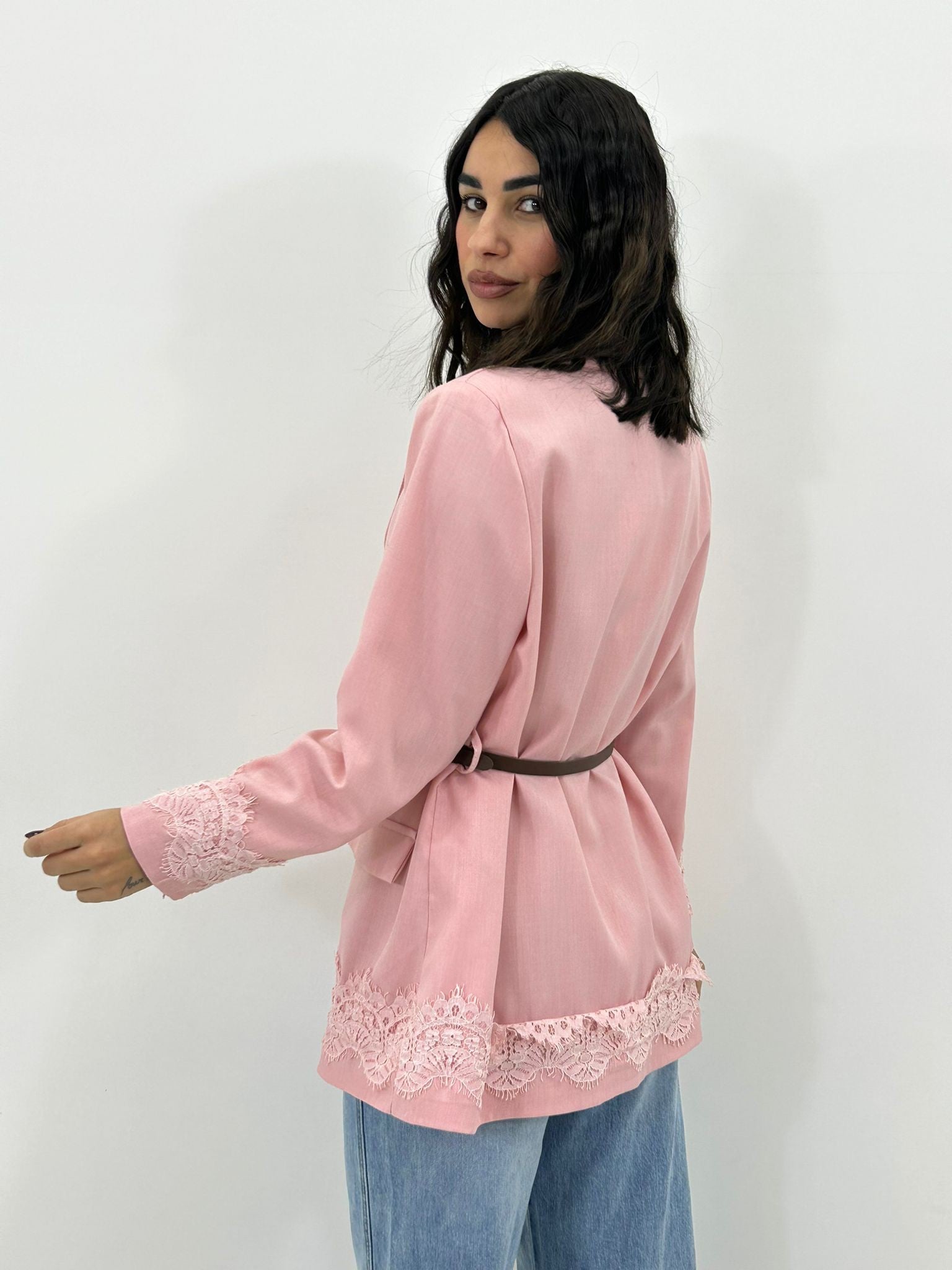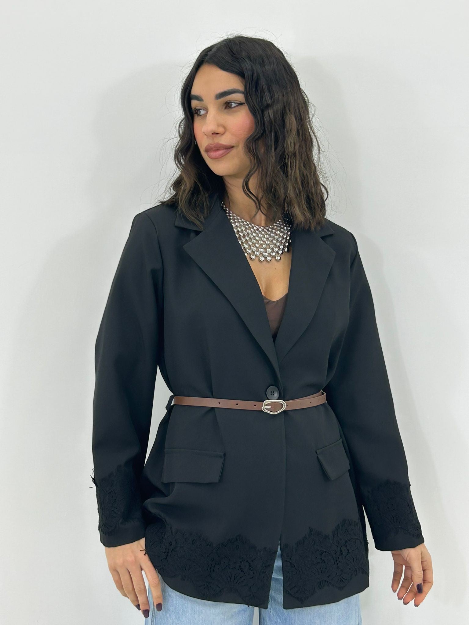 Giacca con dettagli in pizzo e cinturino in vita ,interno foderata