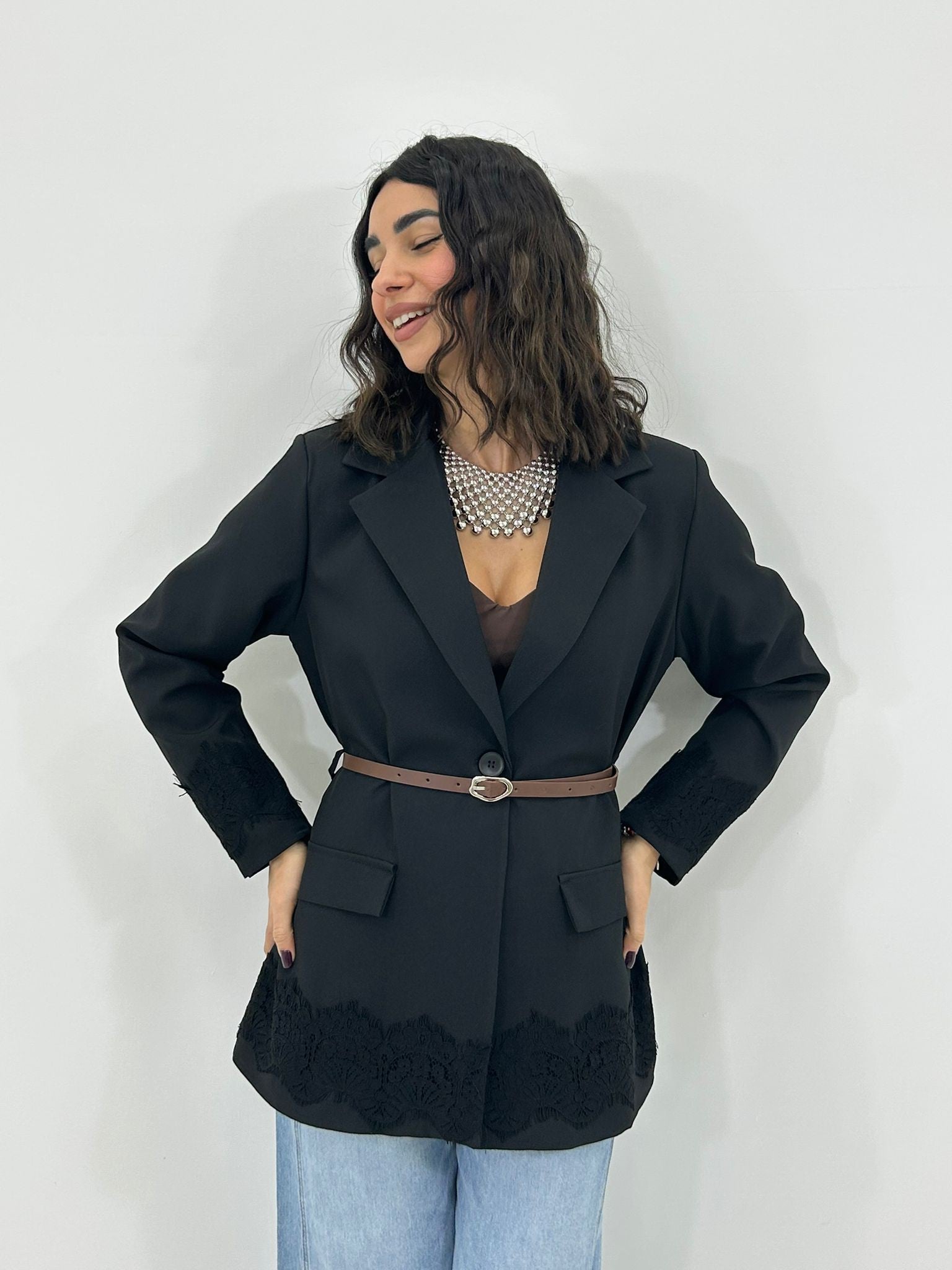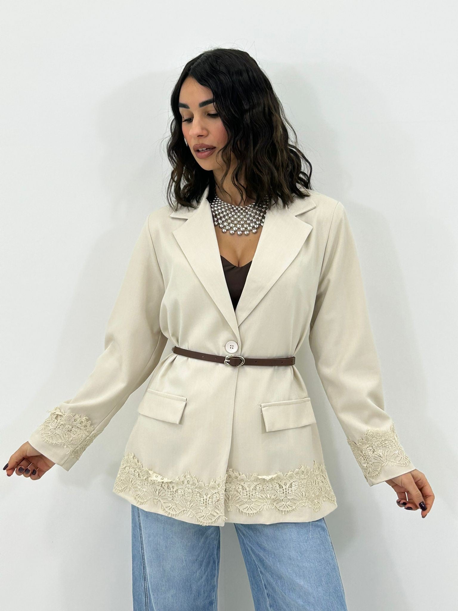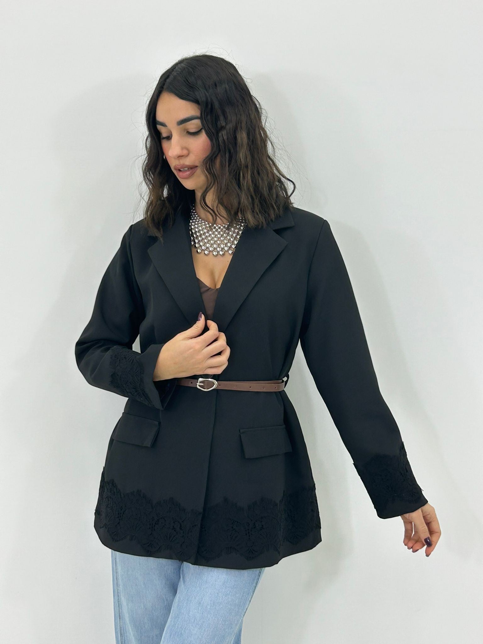 Giacca con dettagli in pizzo e cinturino in vita ,interno foderata