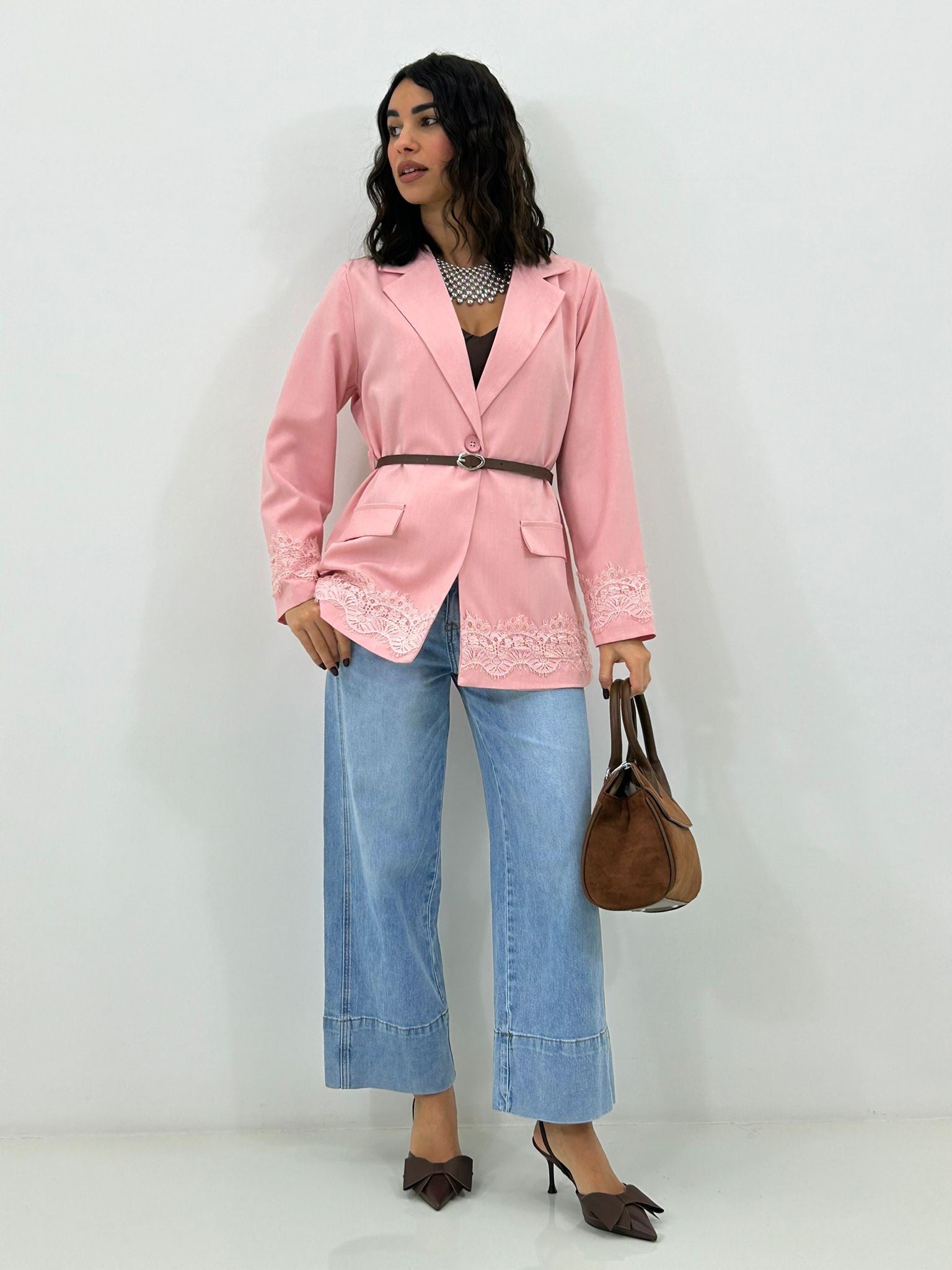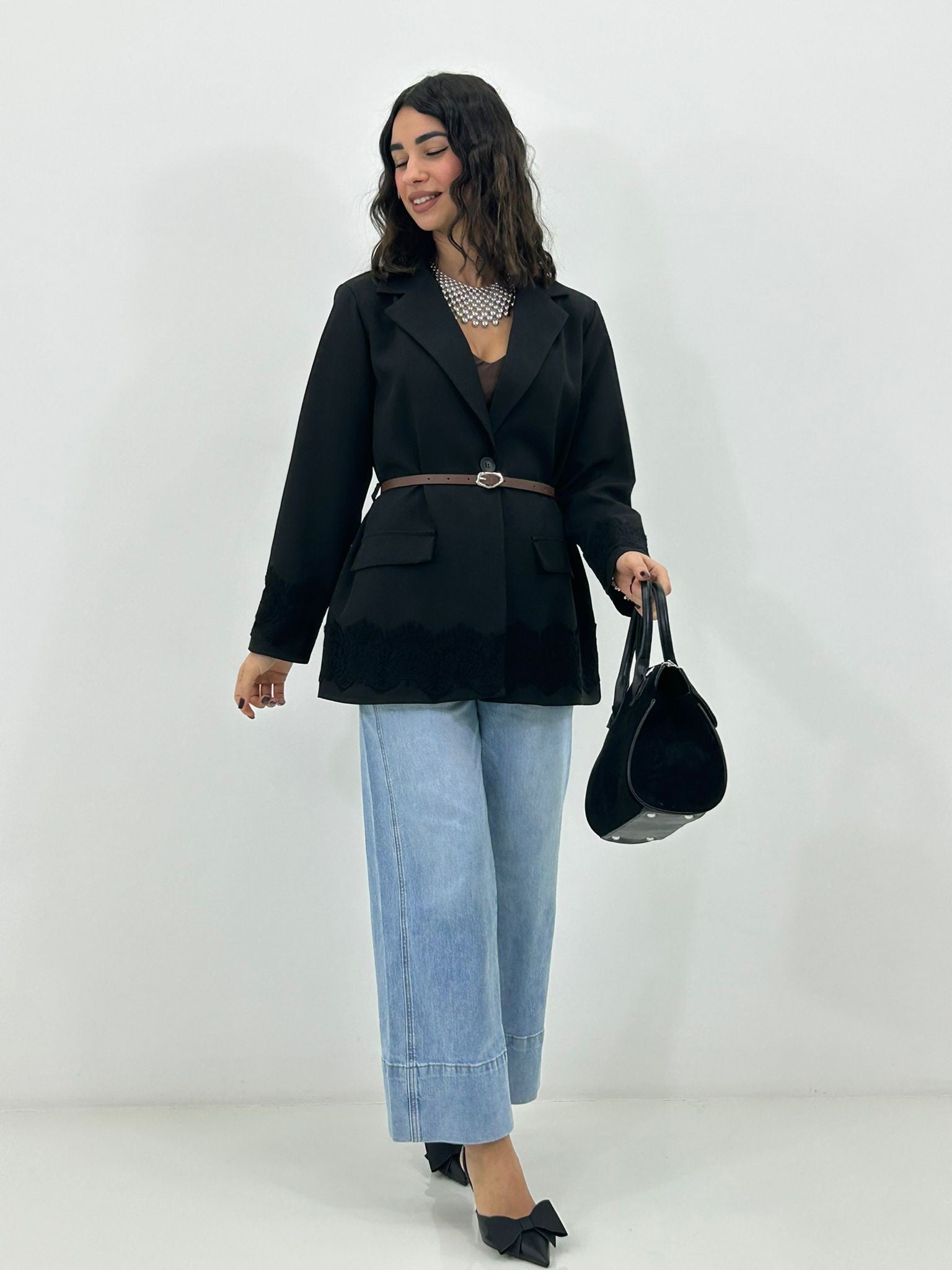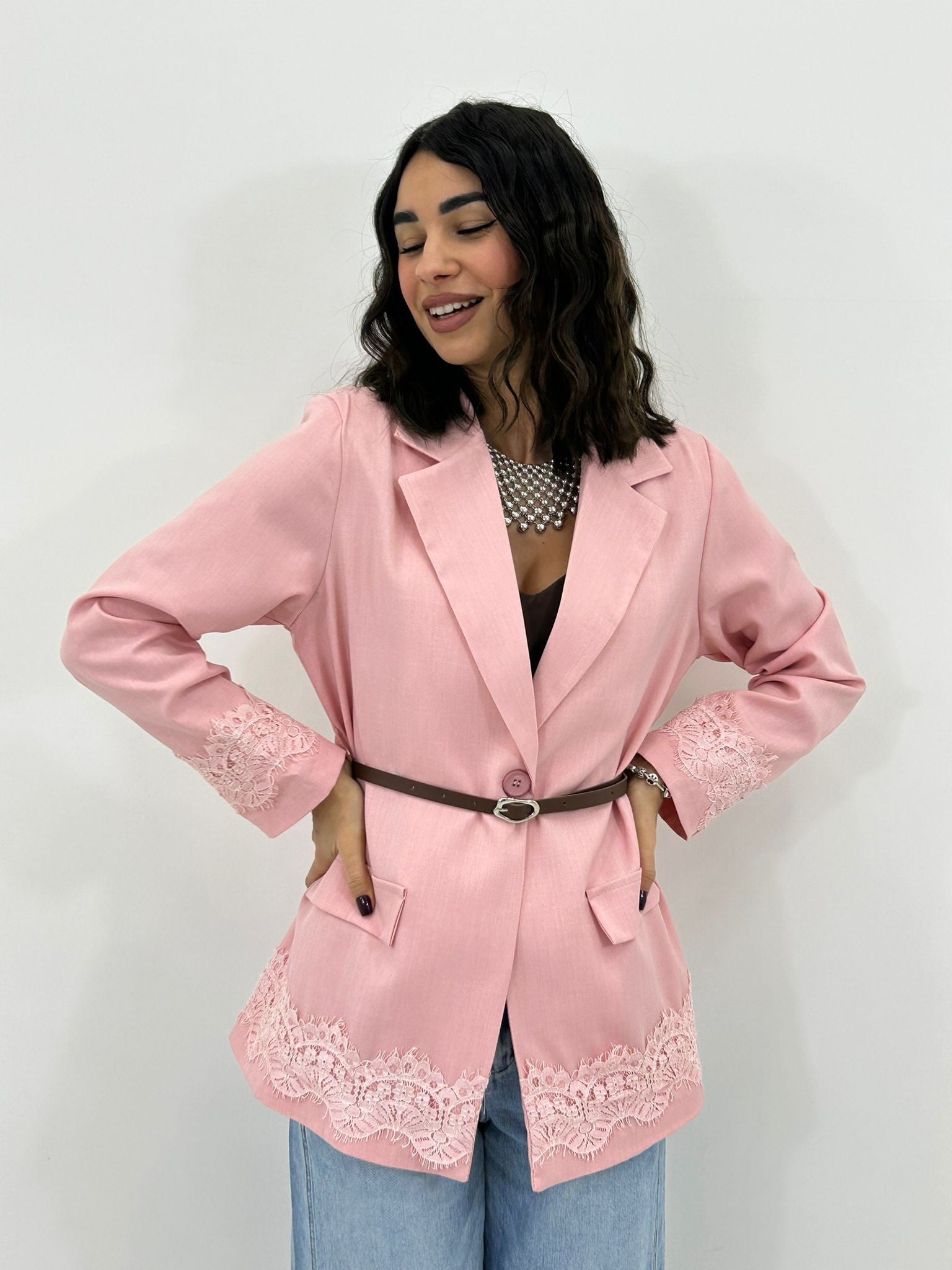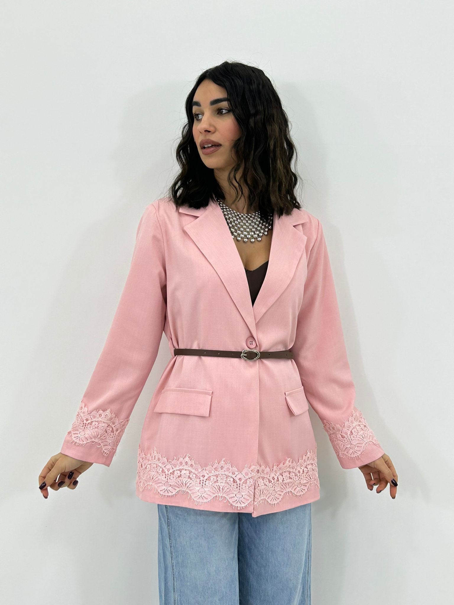 Giacca con dettagli in pizzo e cinturino in vita ,interno foderata