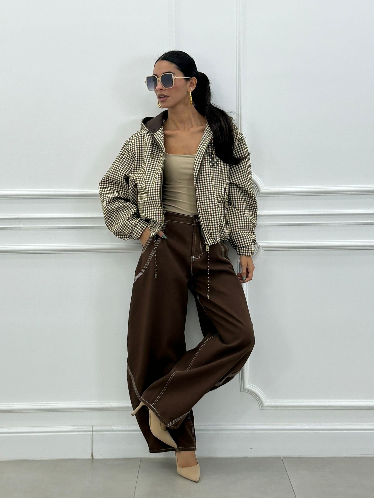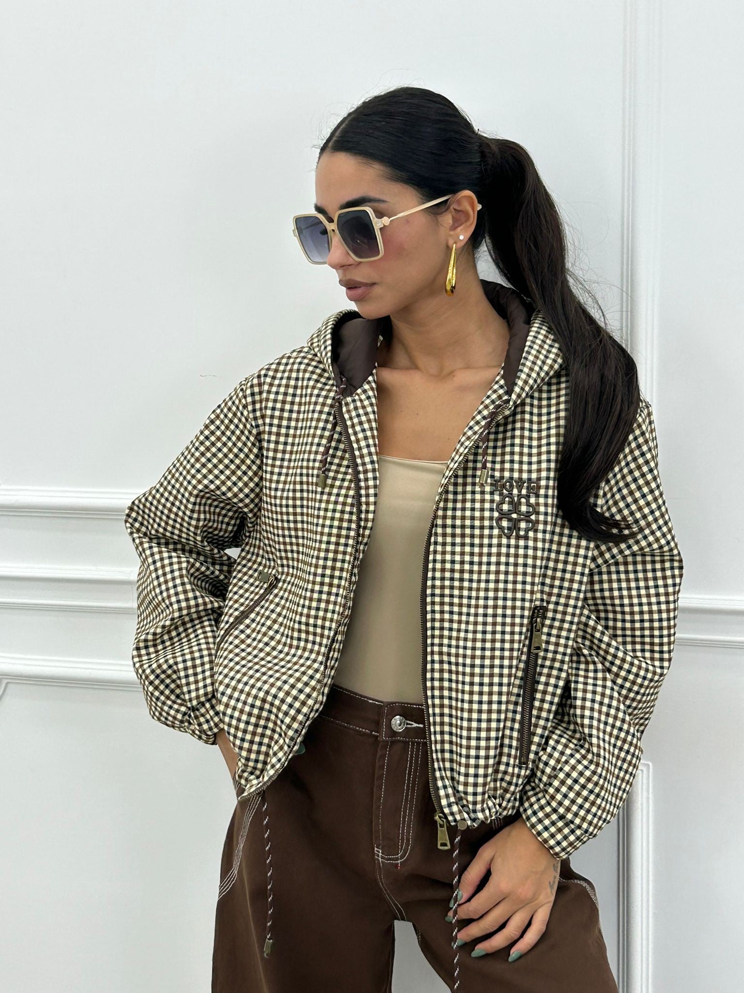 Giubbino tartan con zip ,cappuccio , laccio regolabile e tasche
