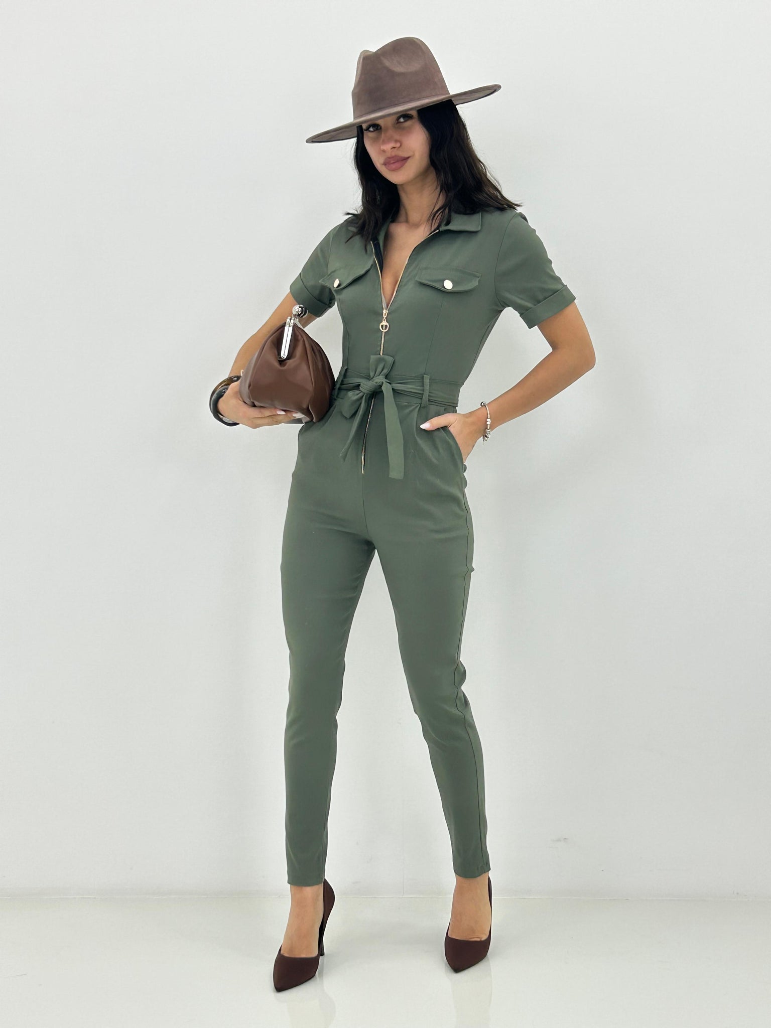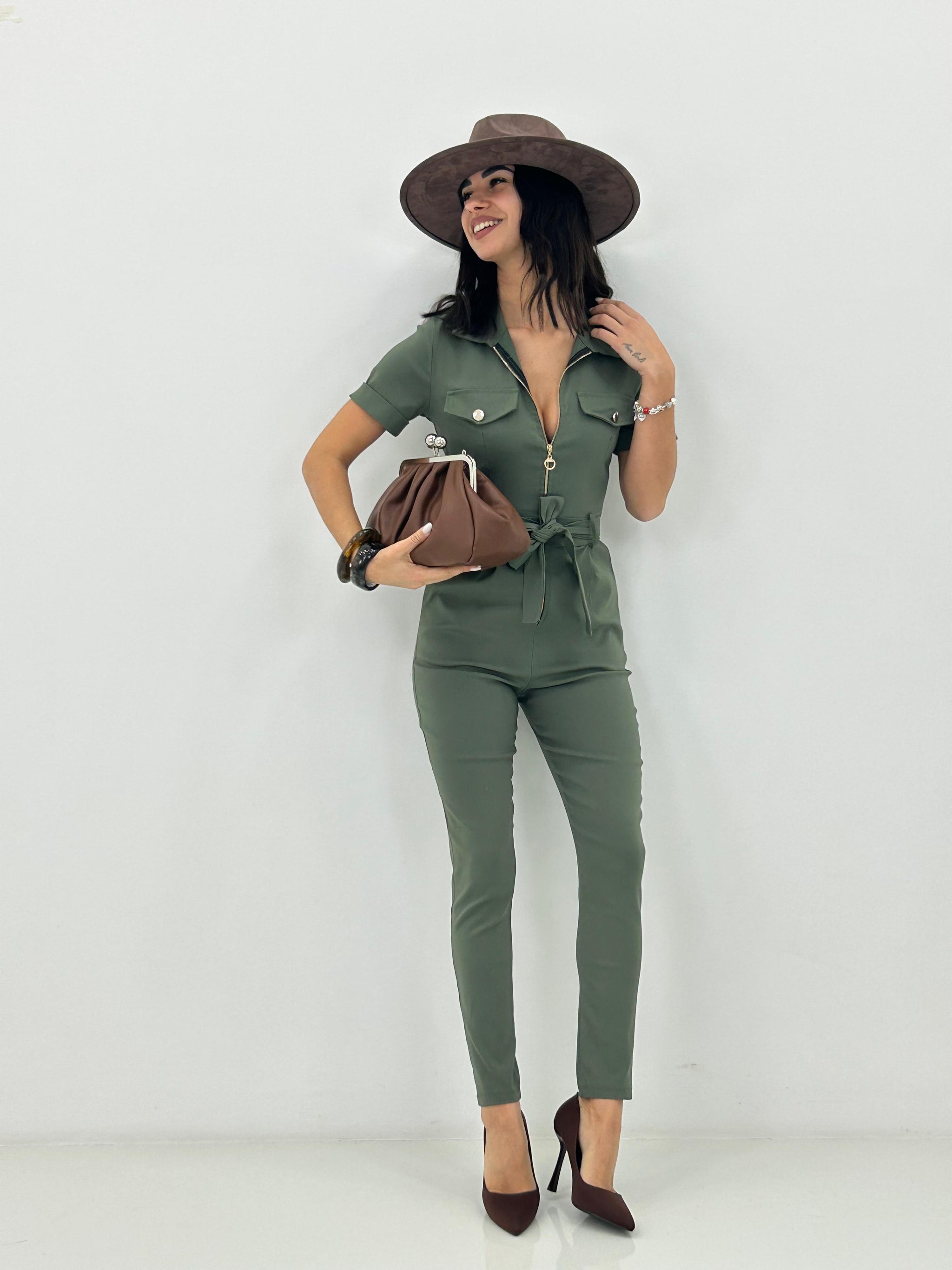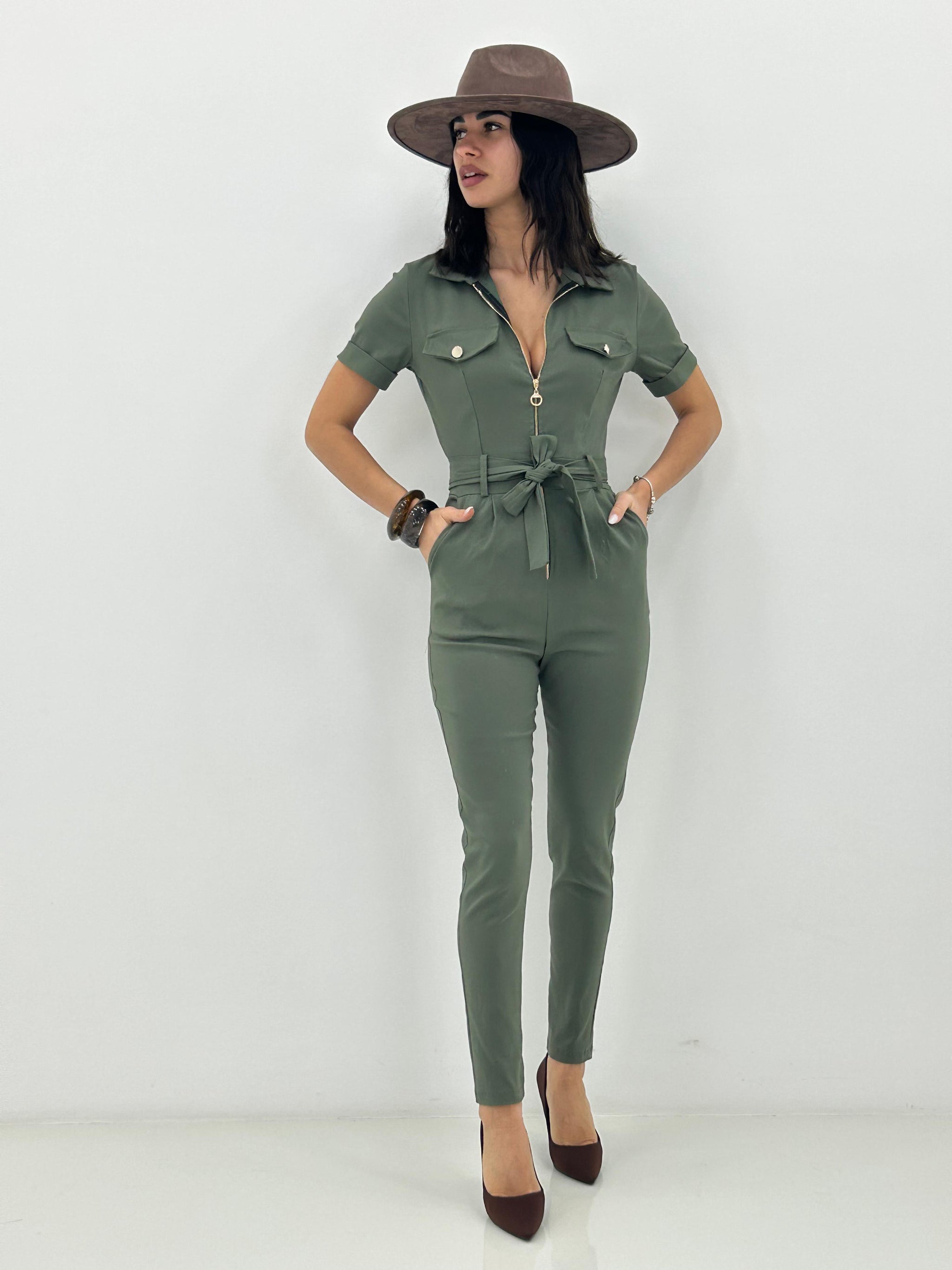 Jumpsuite con zip sul davanti compresa di fusciacca in vita estraibile.