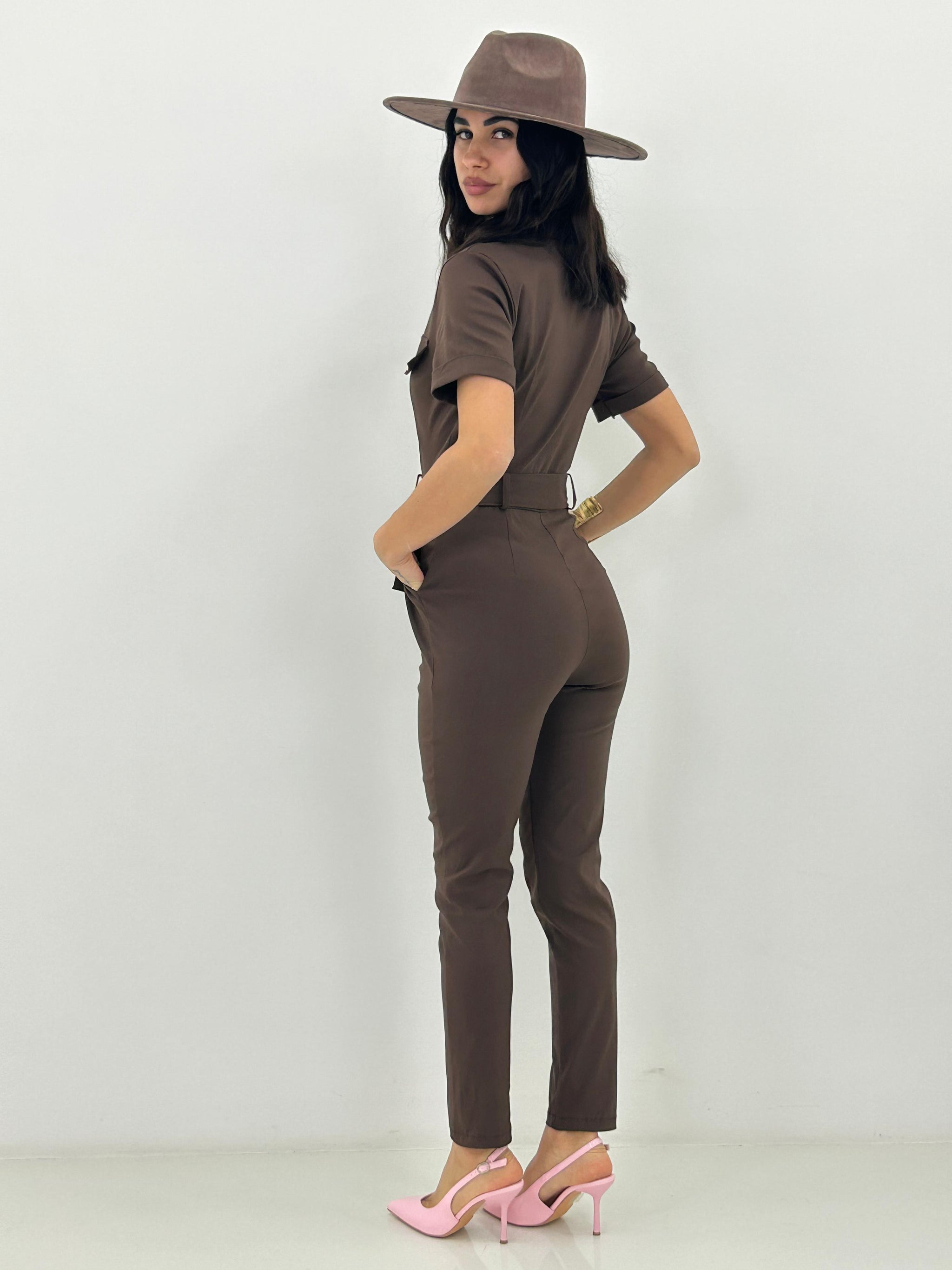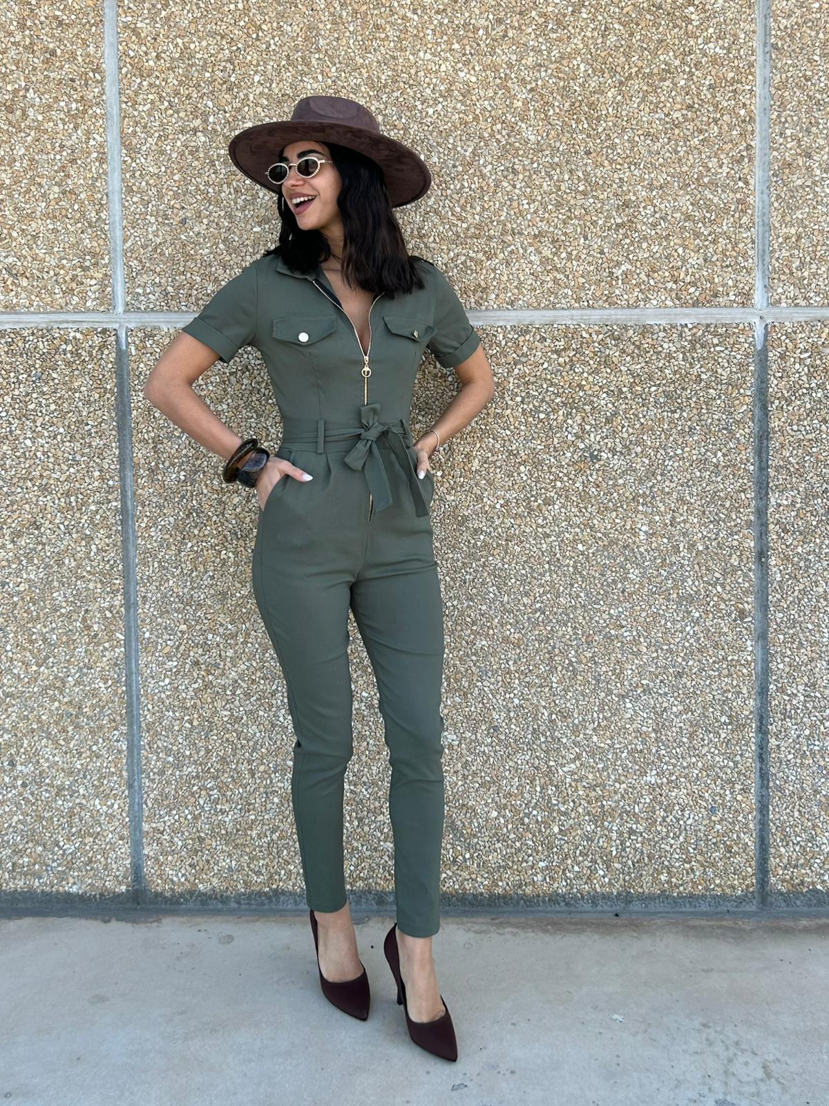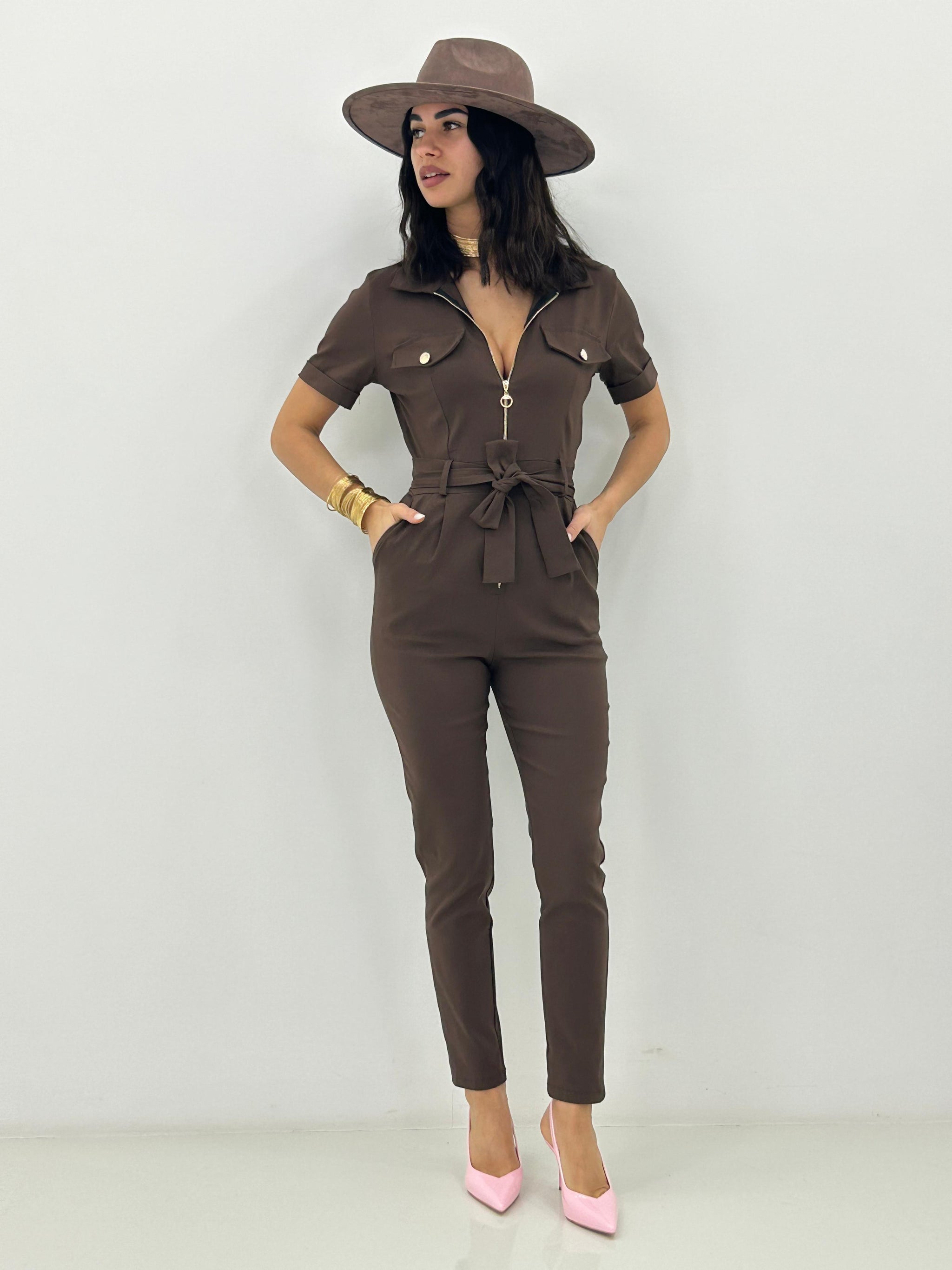 Jumpsuite con zip sul davanti compresa di fusciacca in vita estraibile.