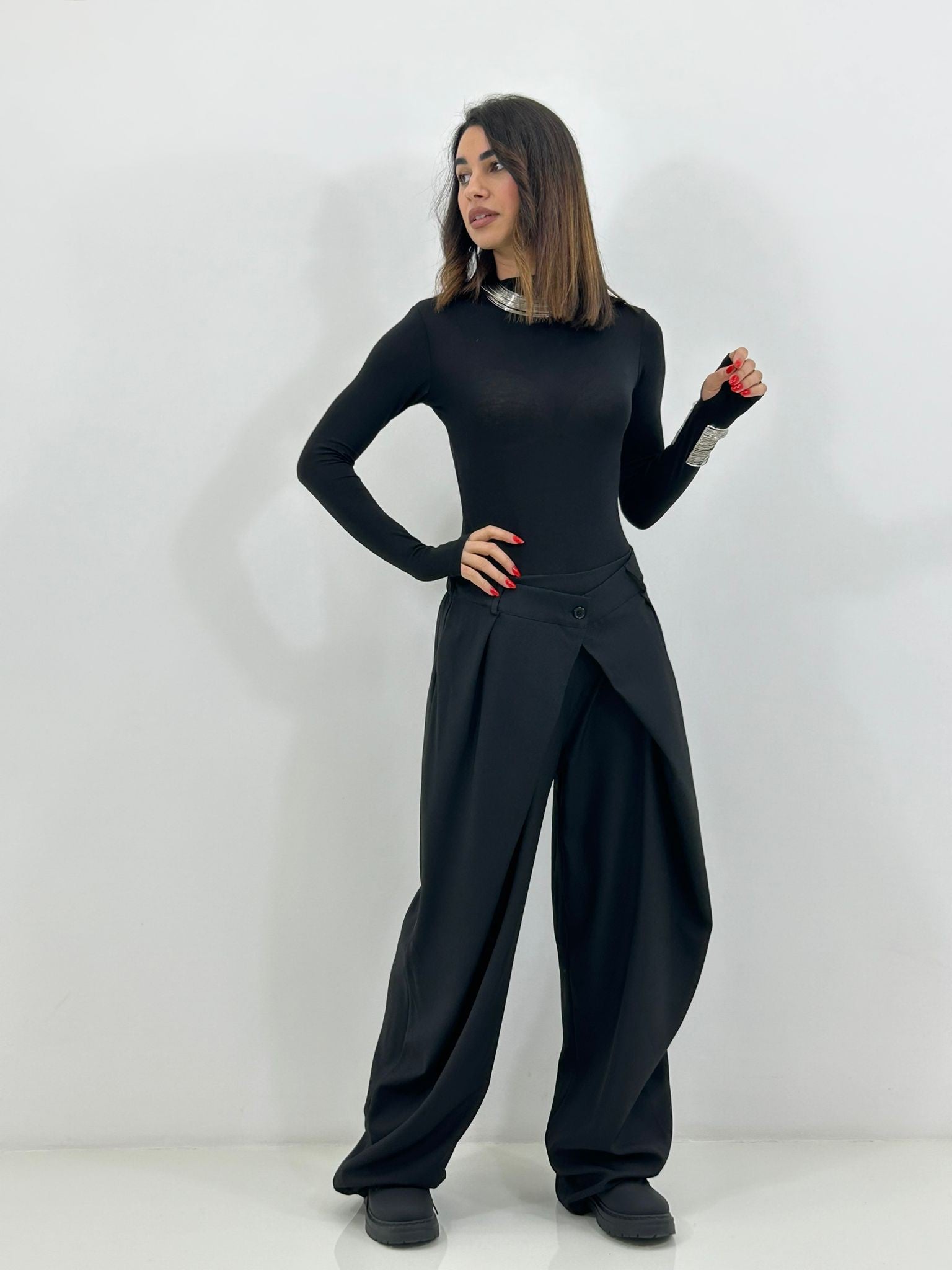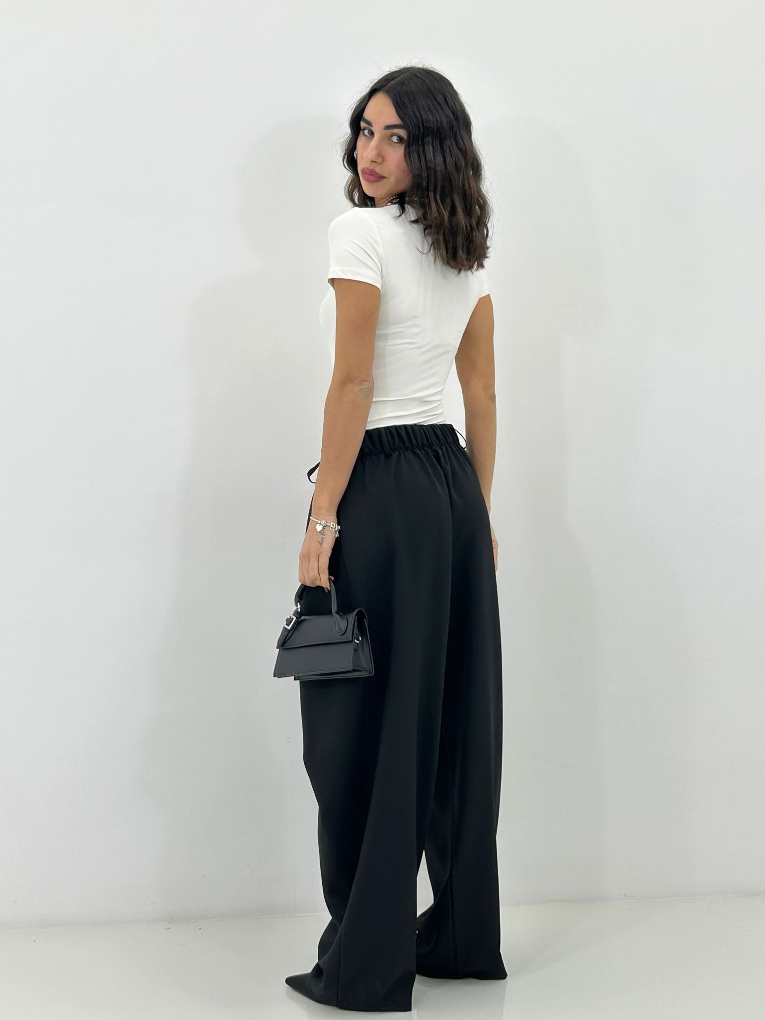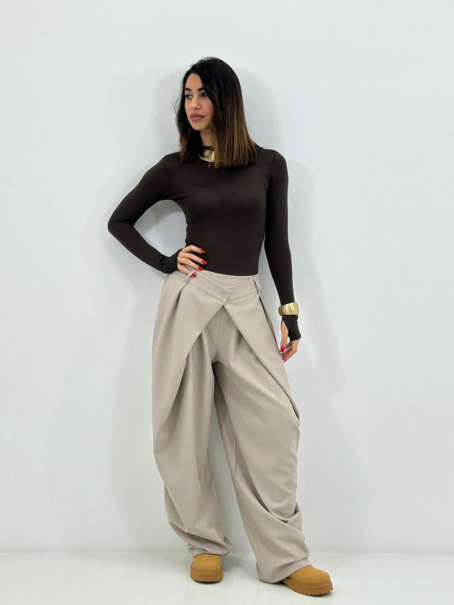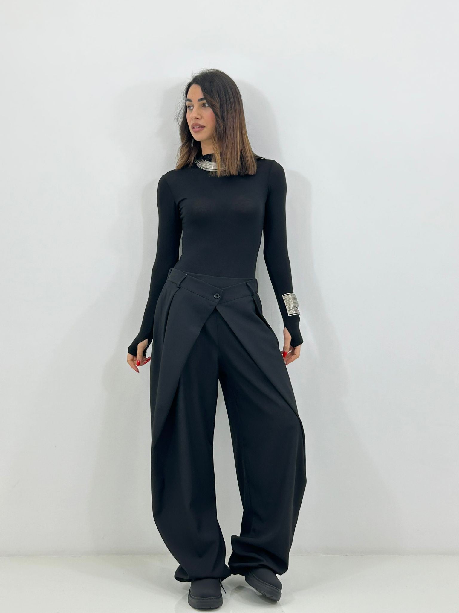 Pantalone chiusura portafoglio con tasche,elastico sul retro