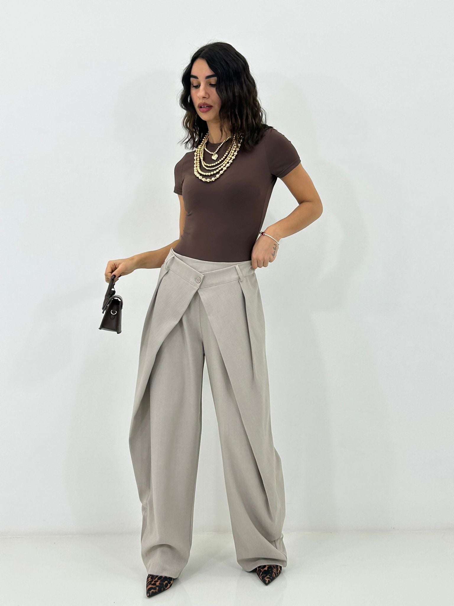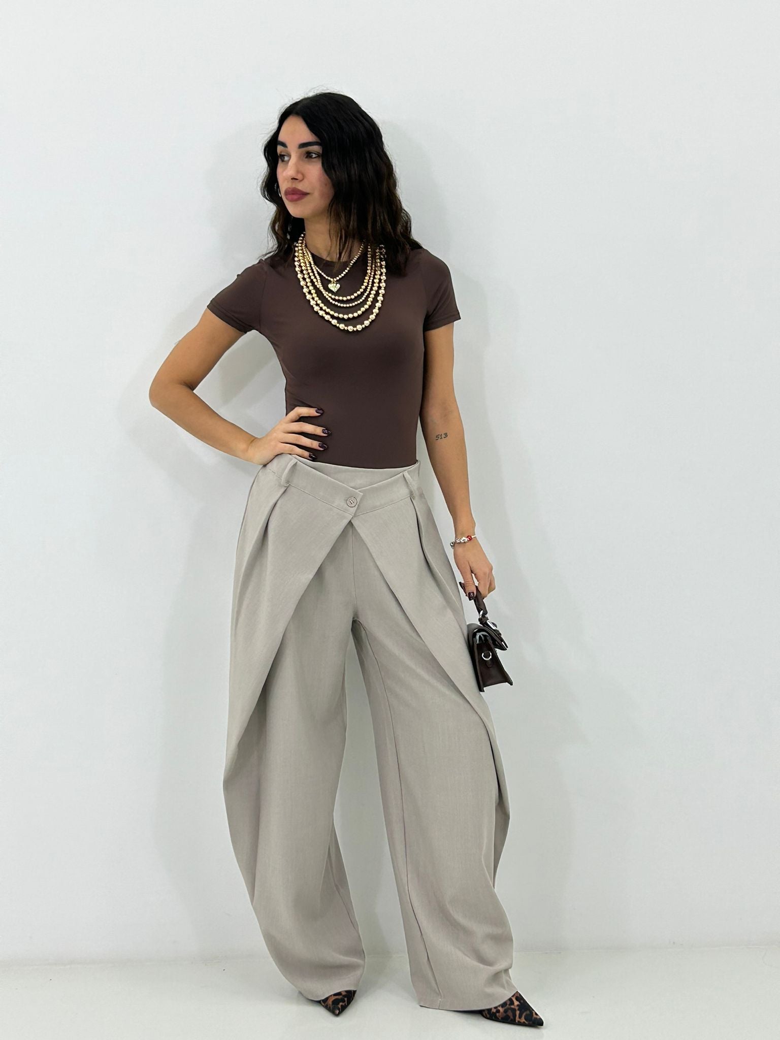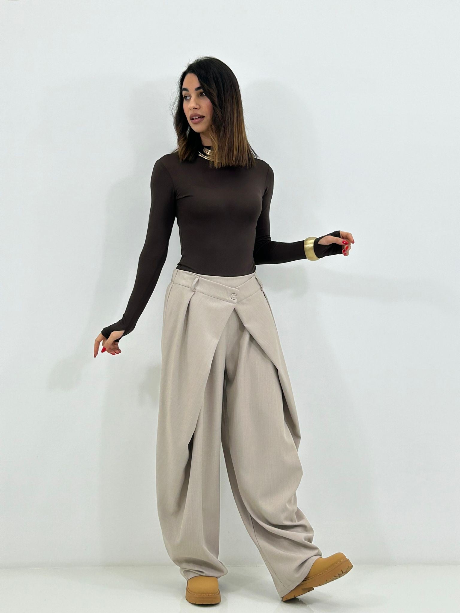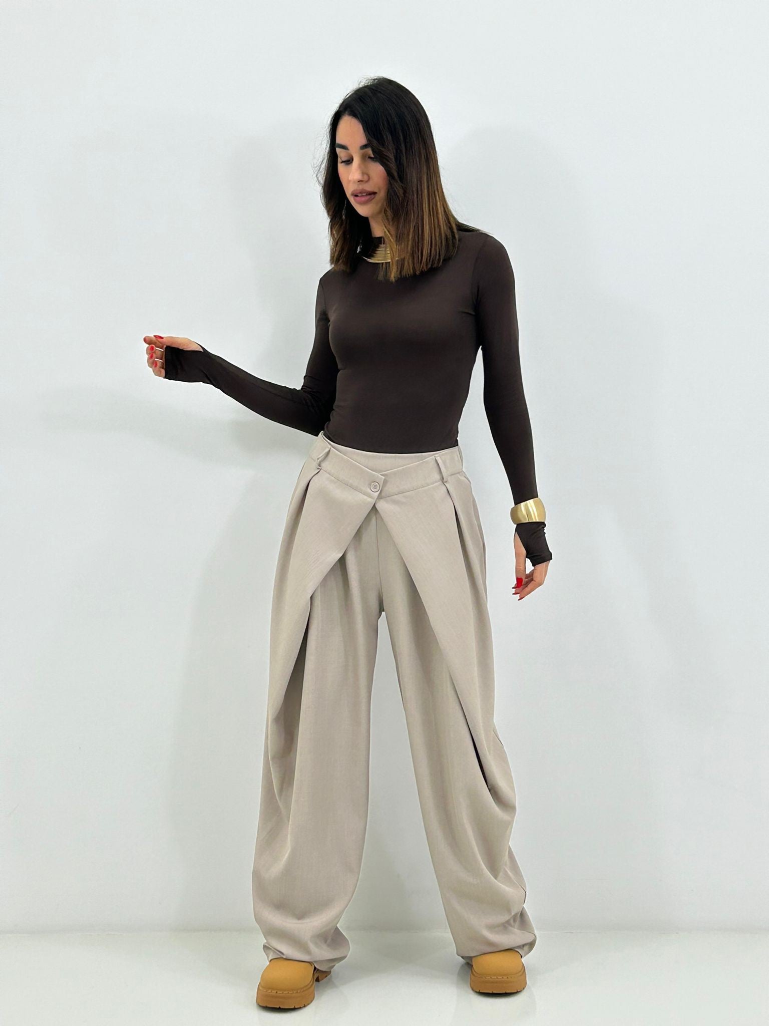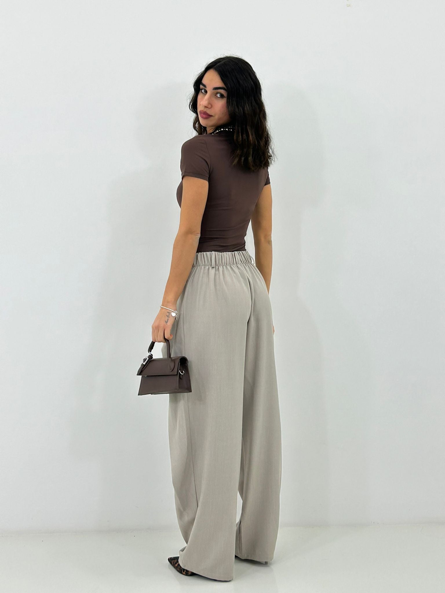 Pantalone chiusura portafoglio con tasche,elastico sul retro