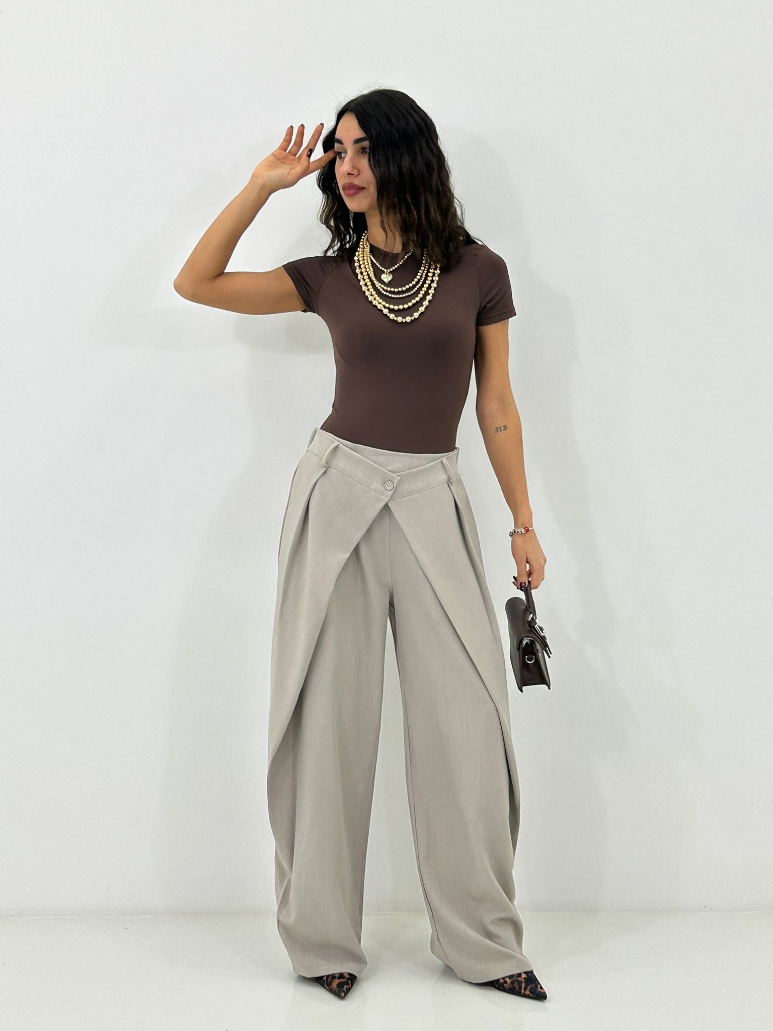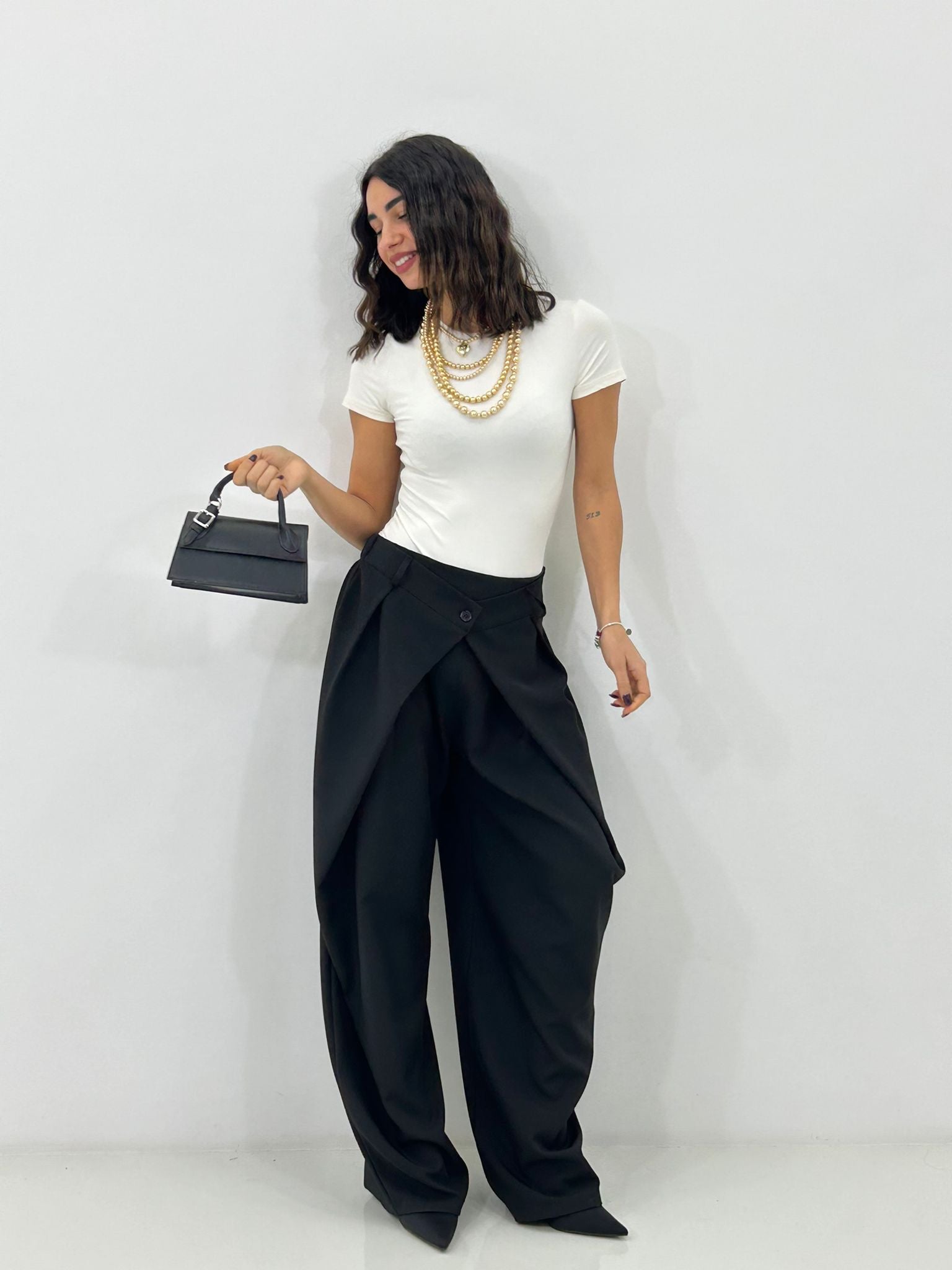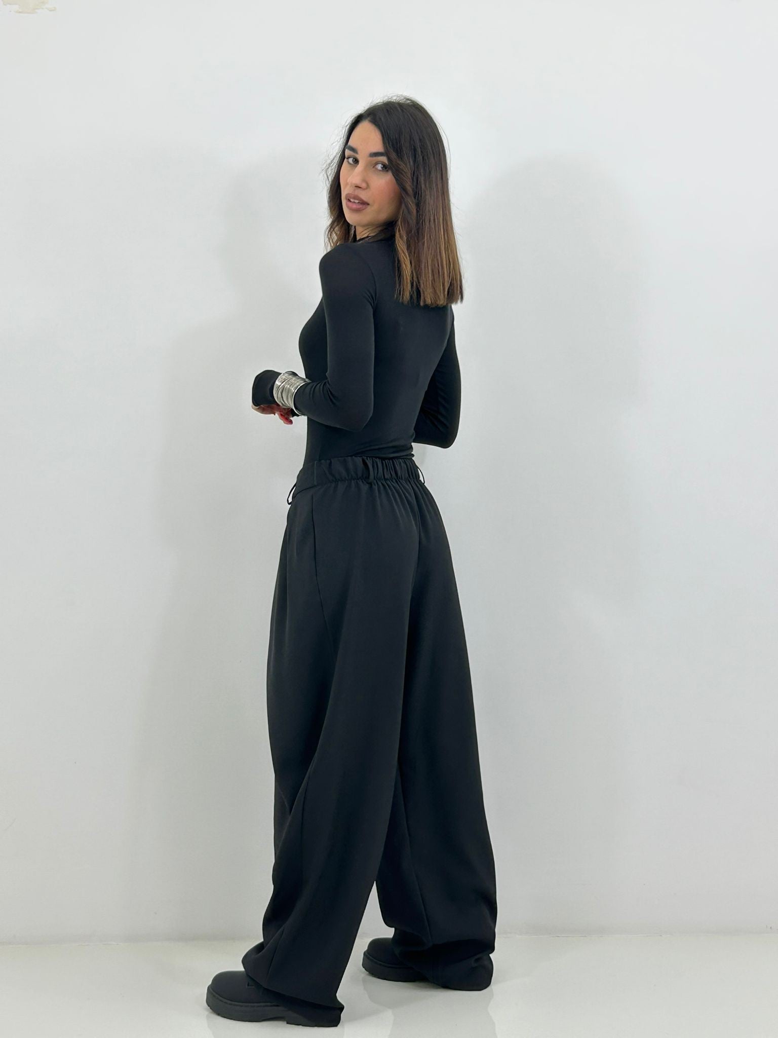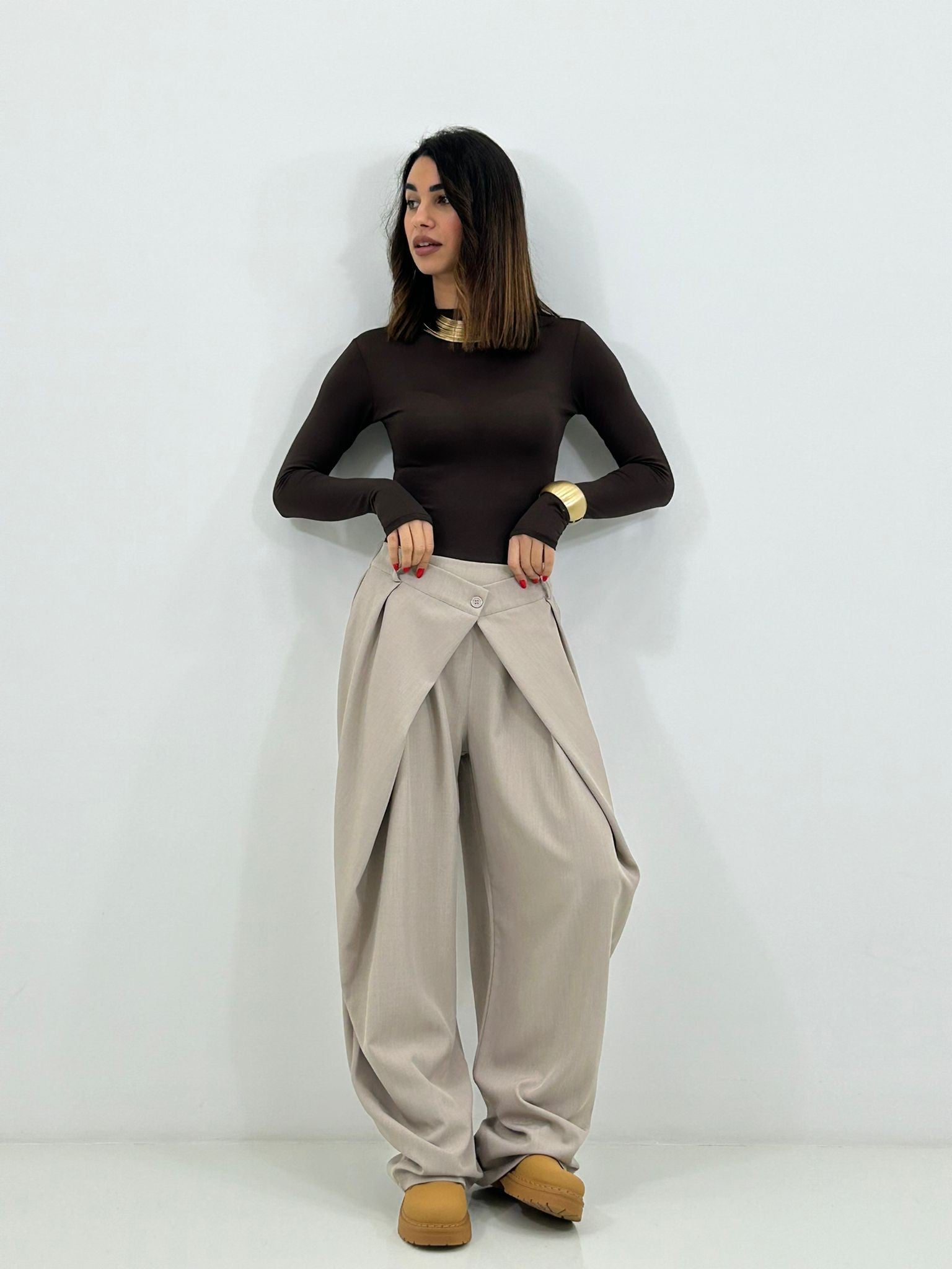 Pantalone chiusura portafoglio con tasche,elastico sul retro