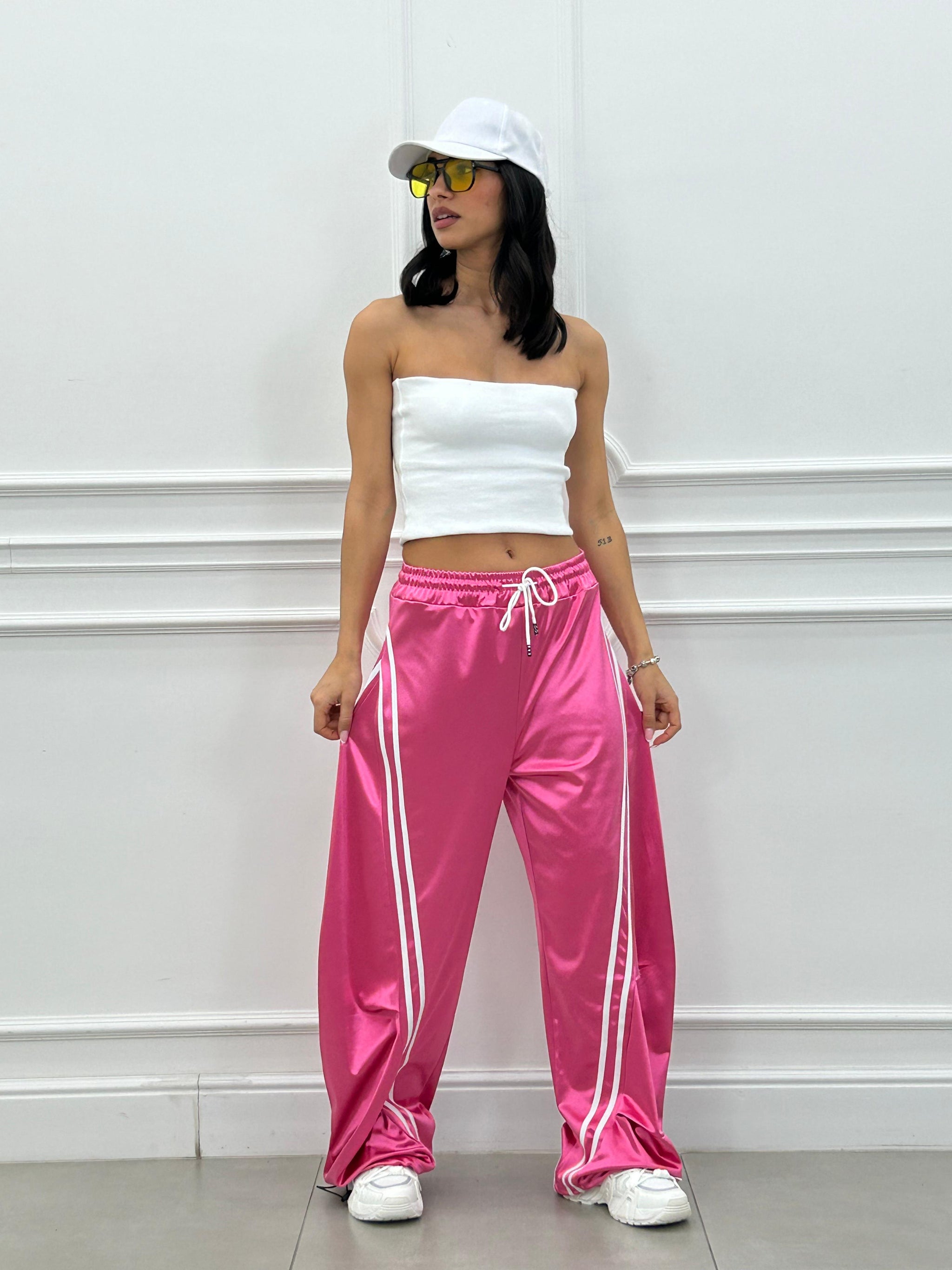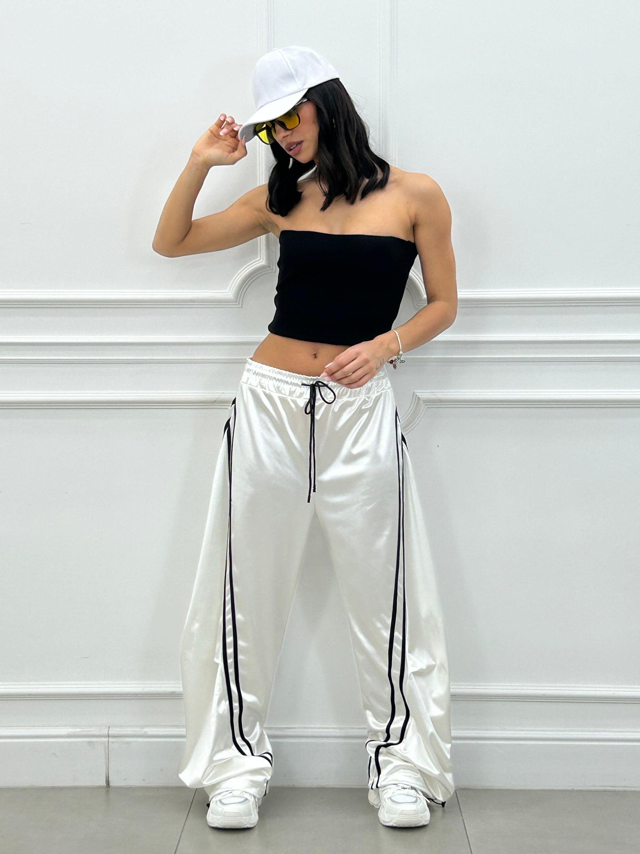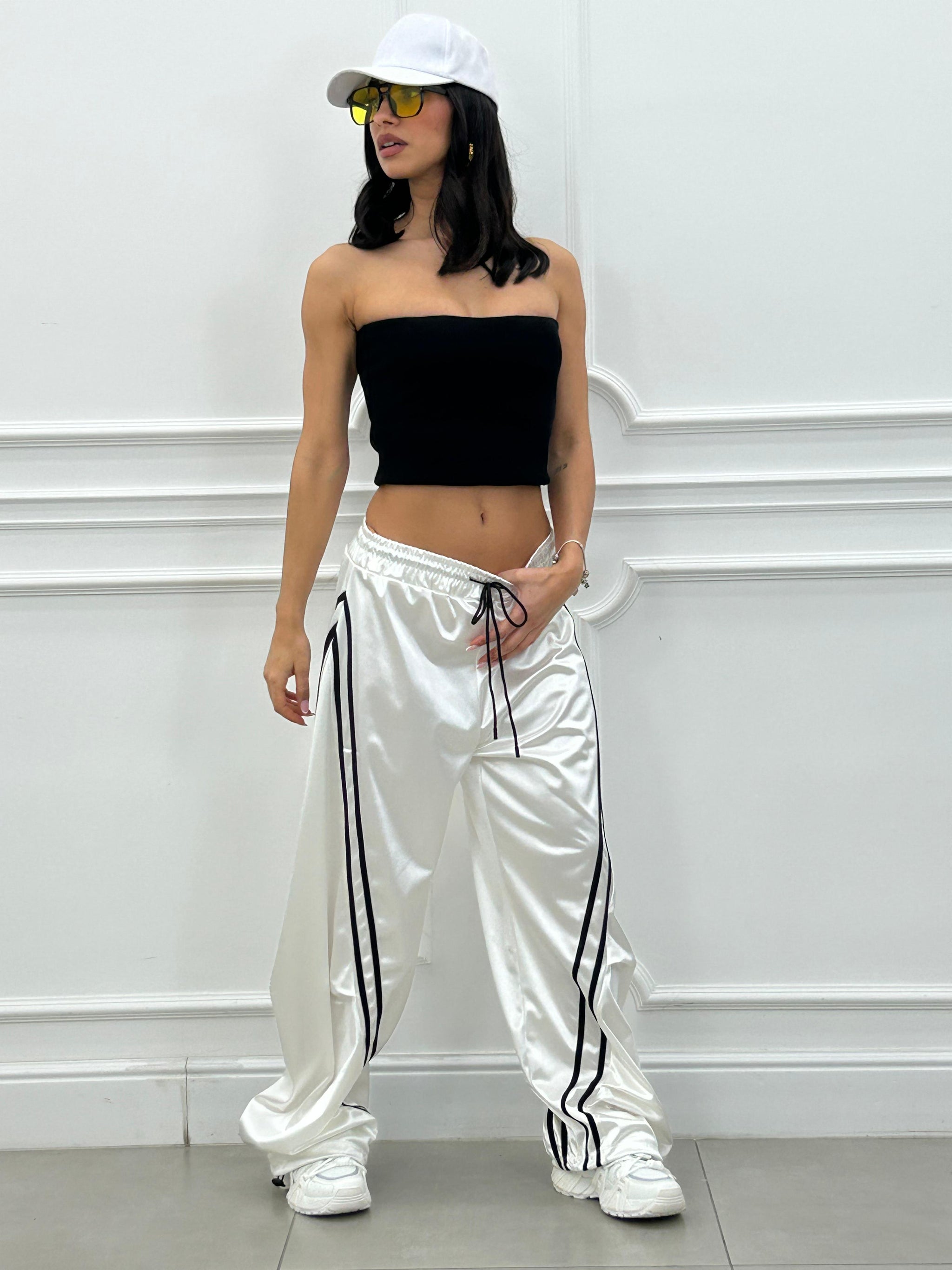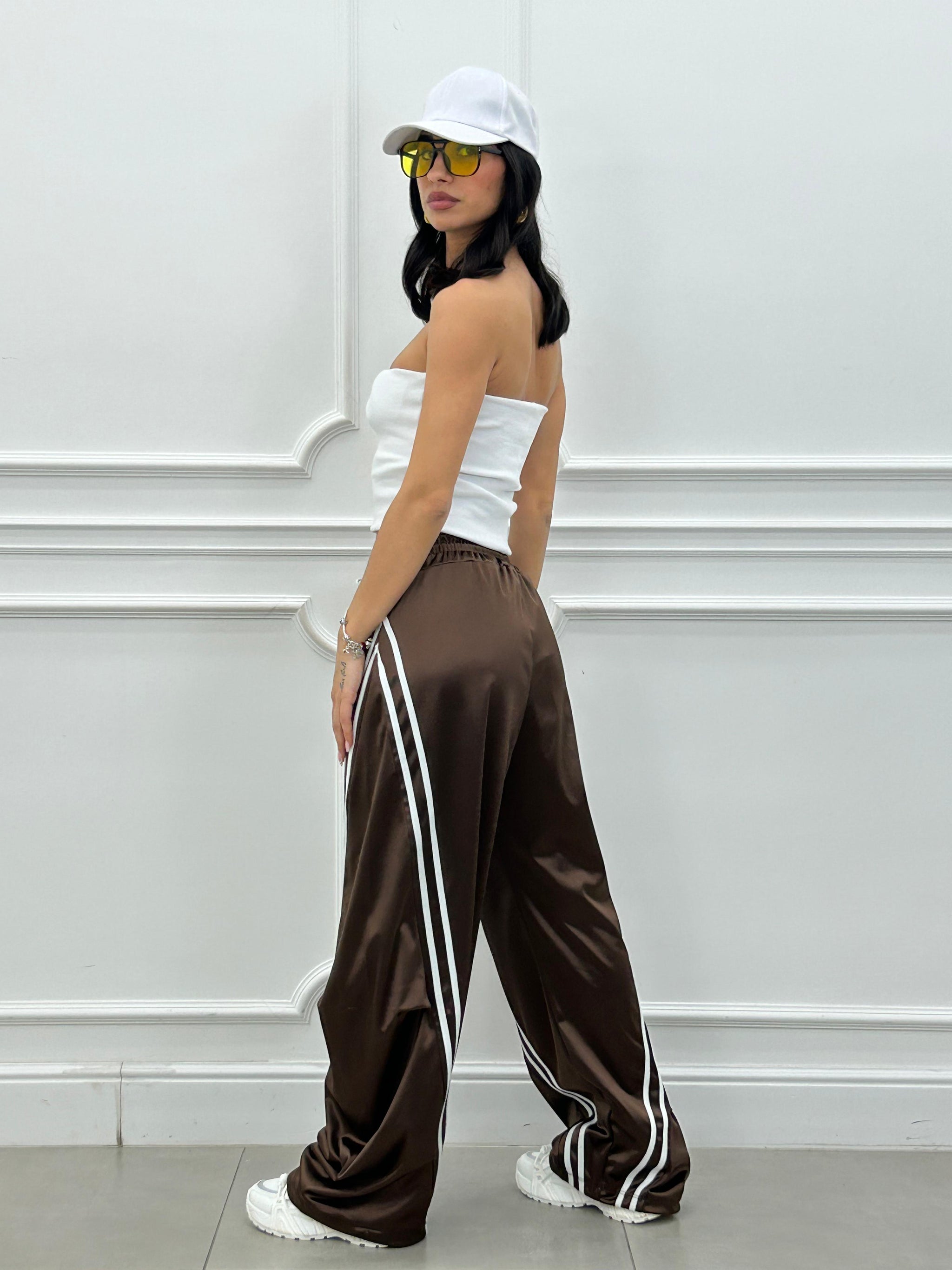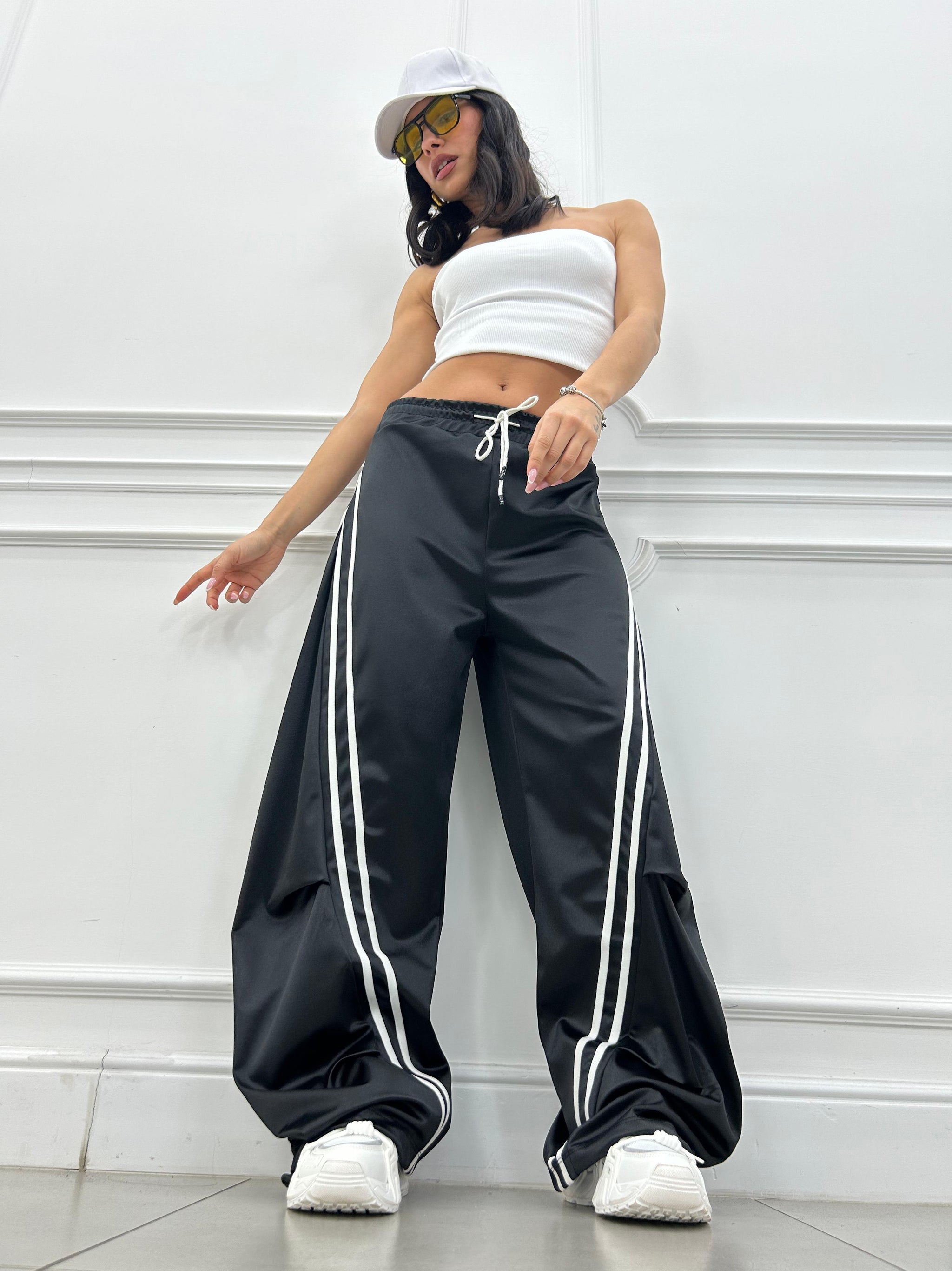 Pantalone di tuta effetto balloon con righe a contrasto.