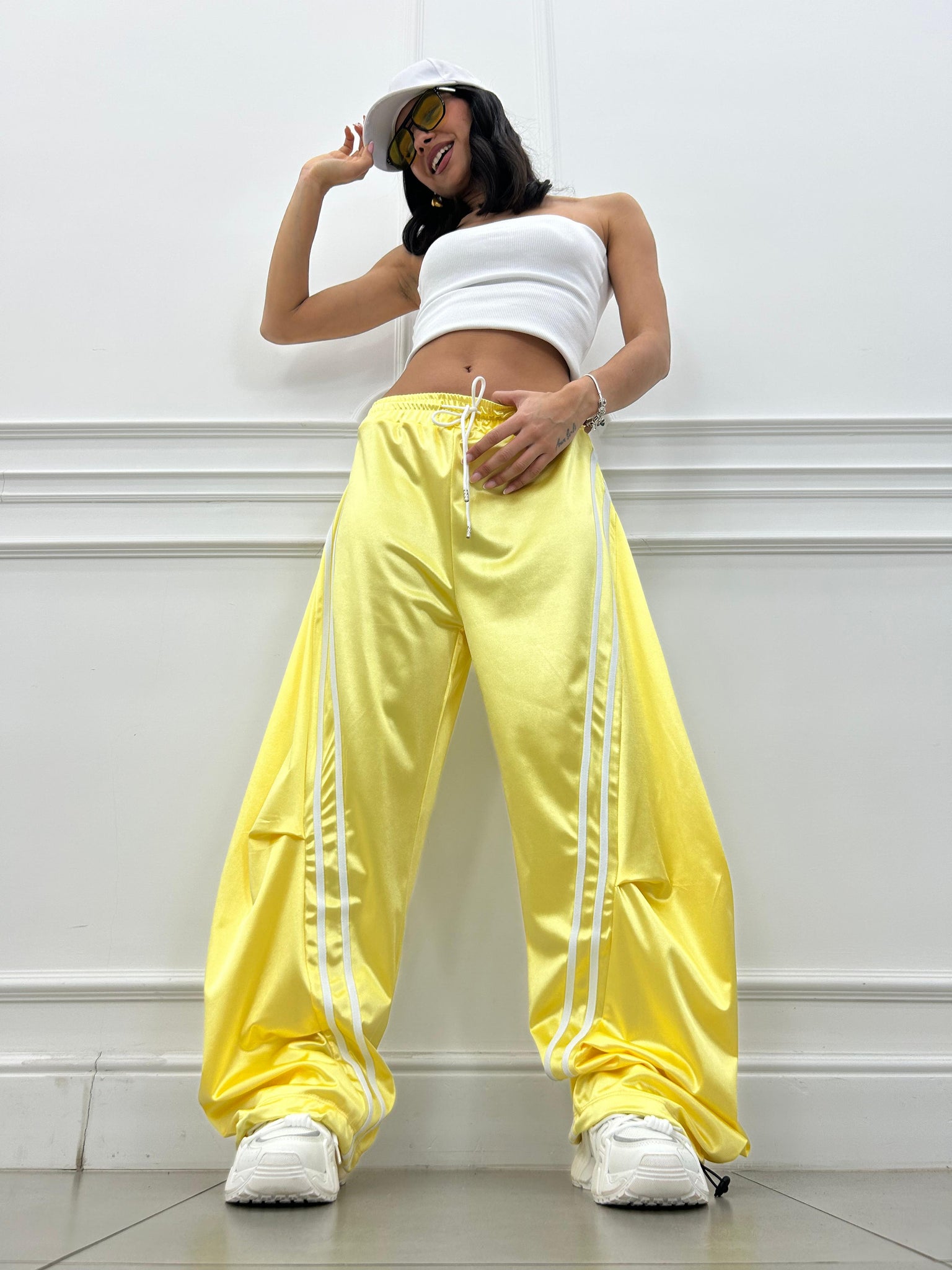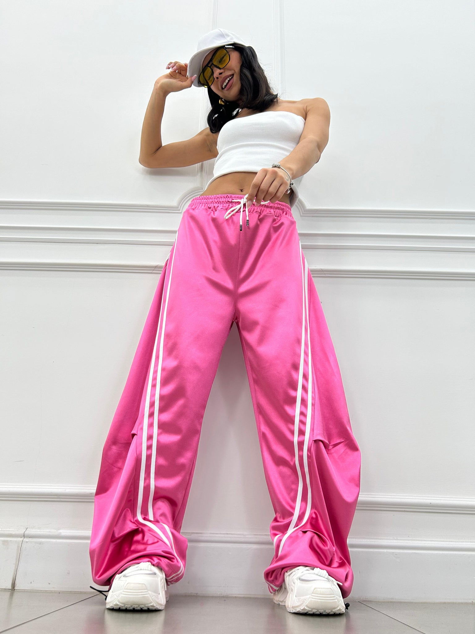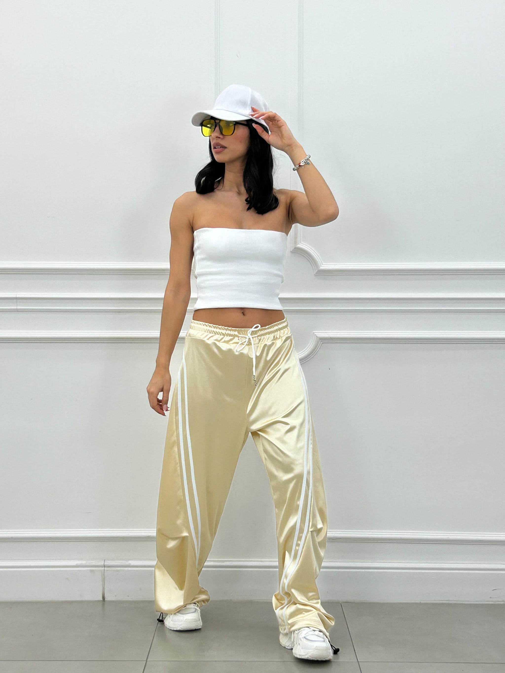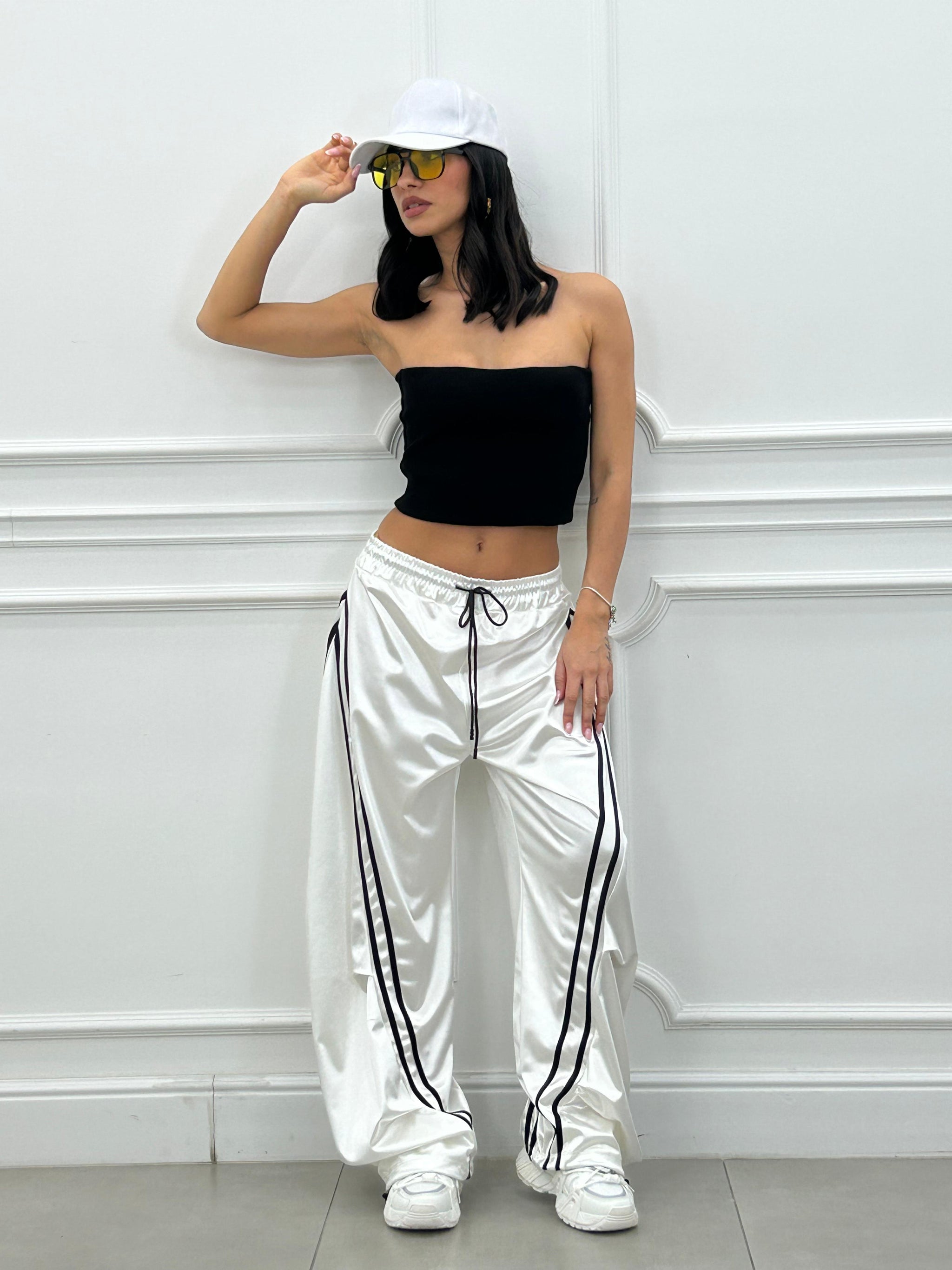 Pantalone di tuta effetto balloon con righe a contrasto.