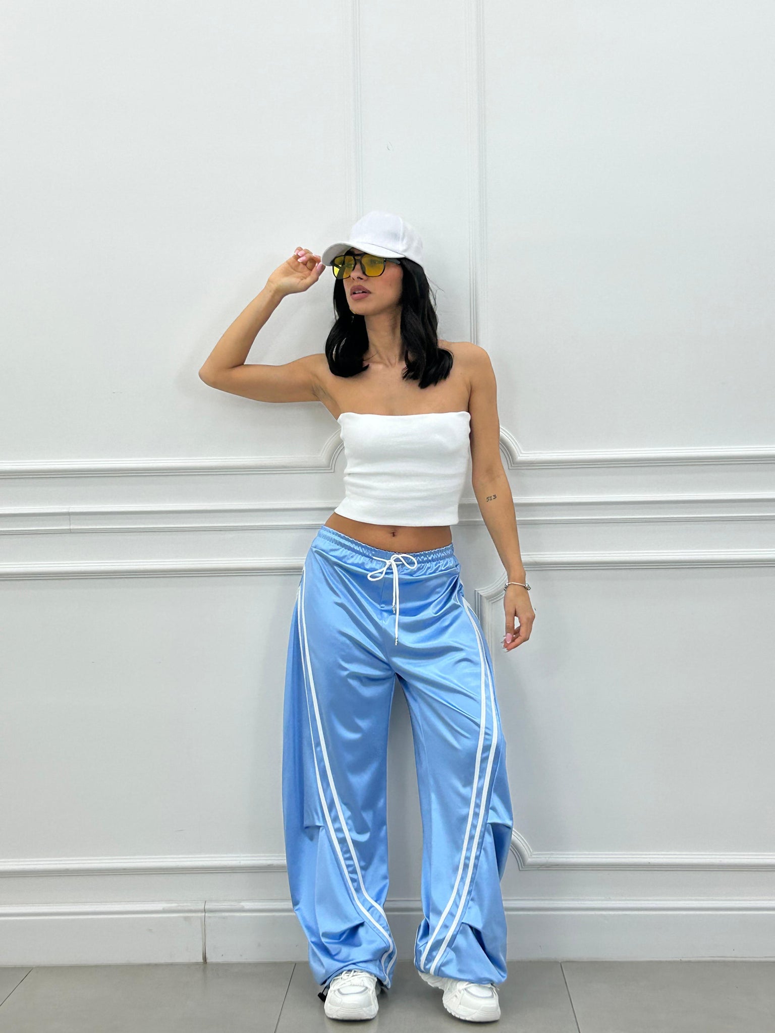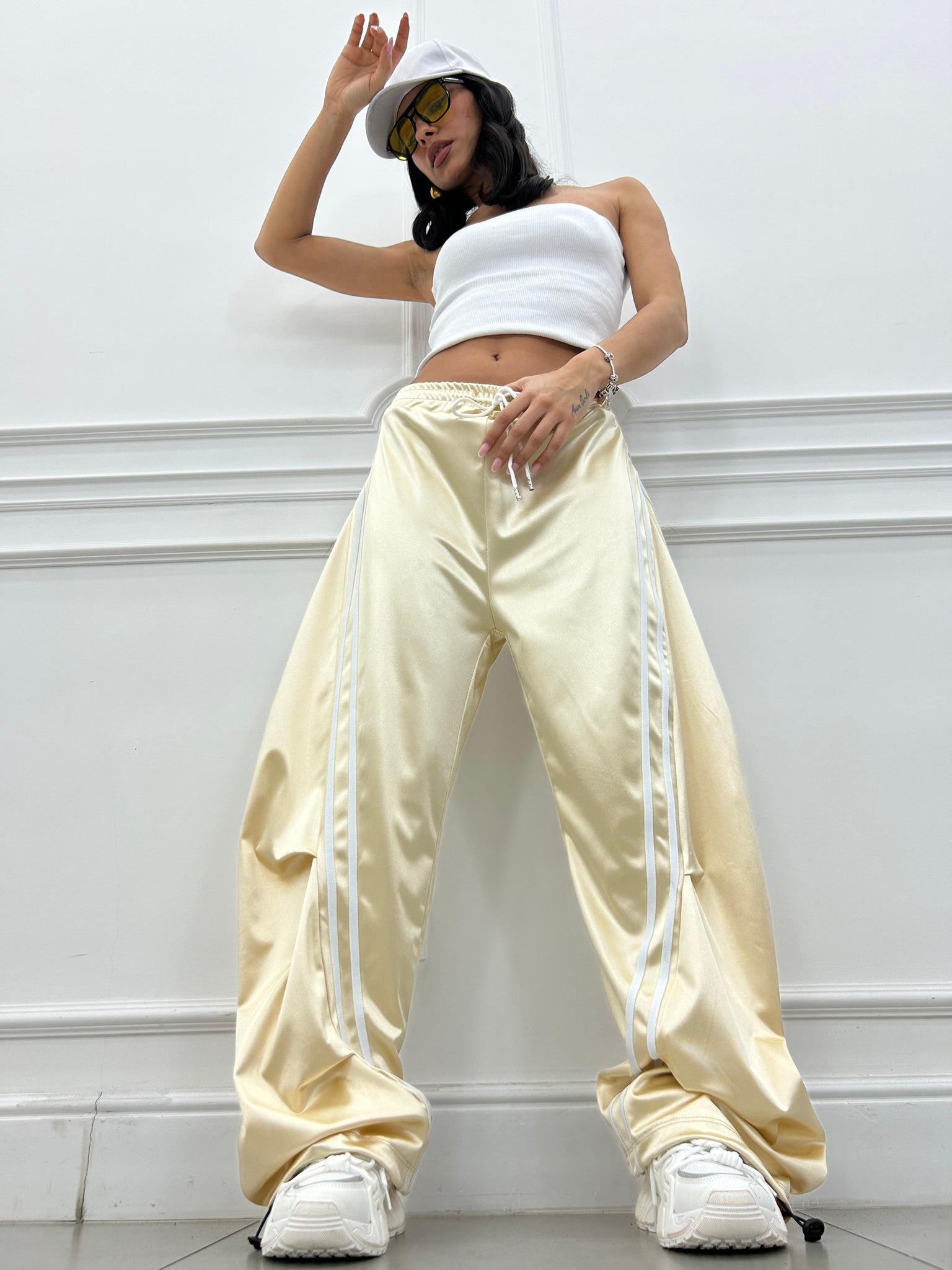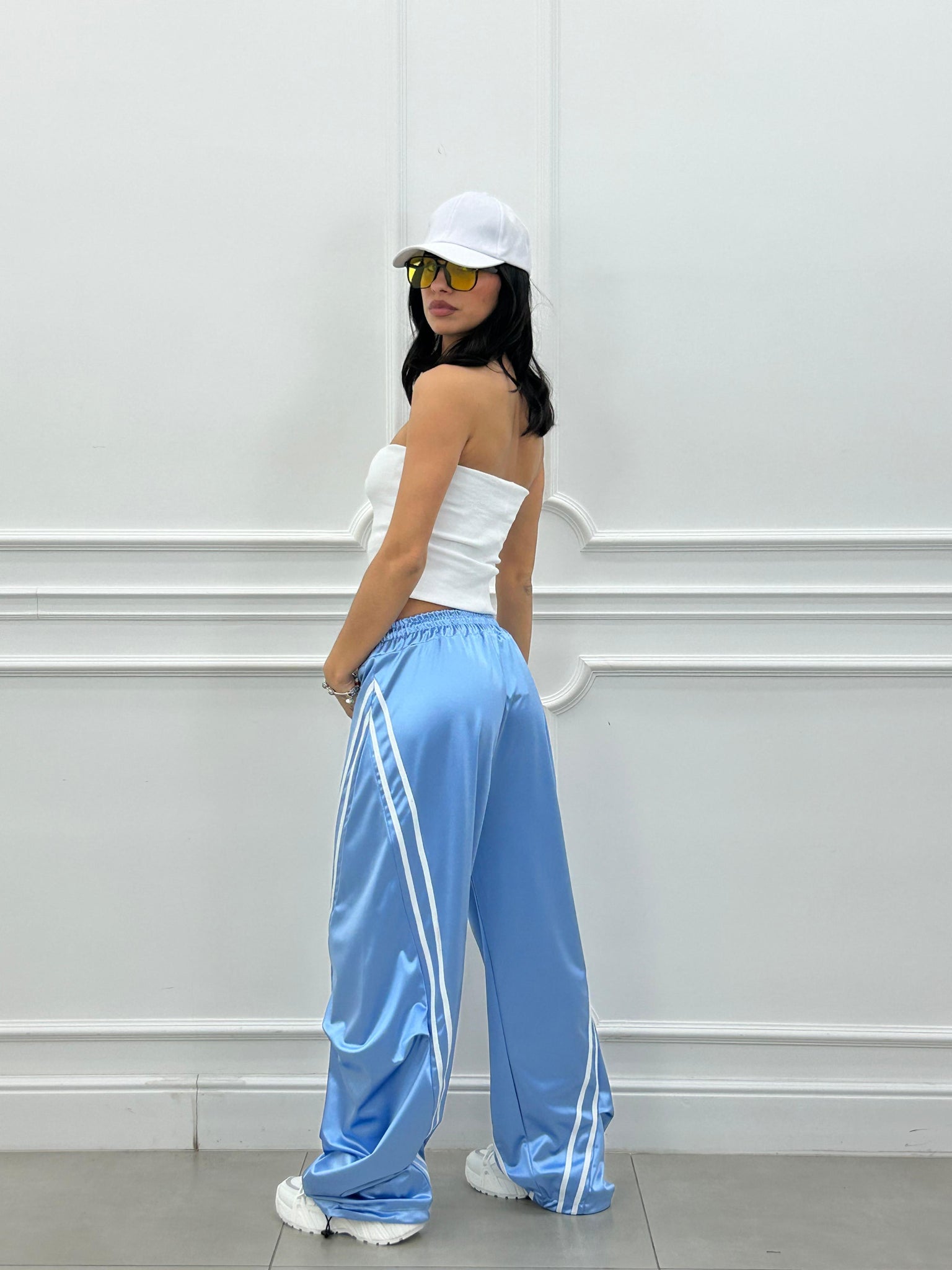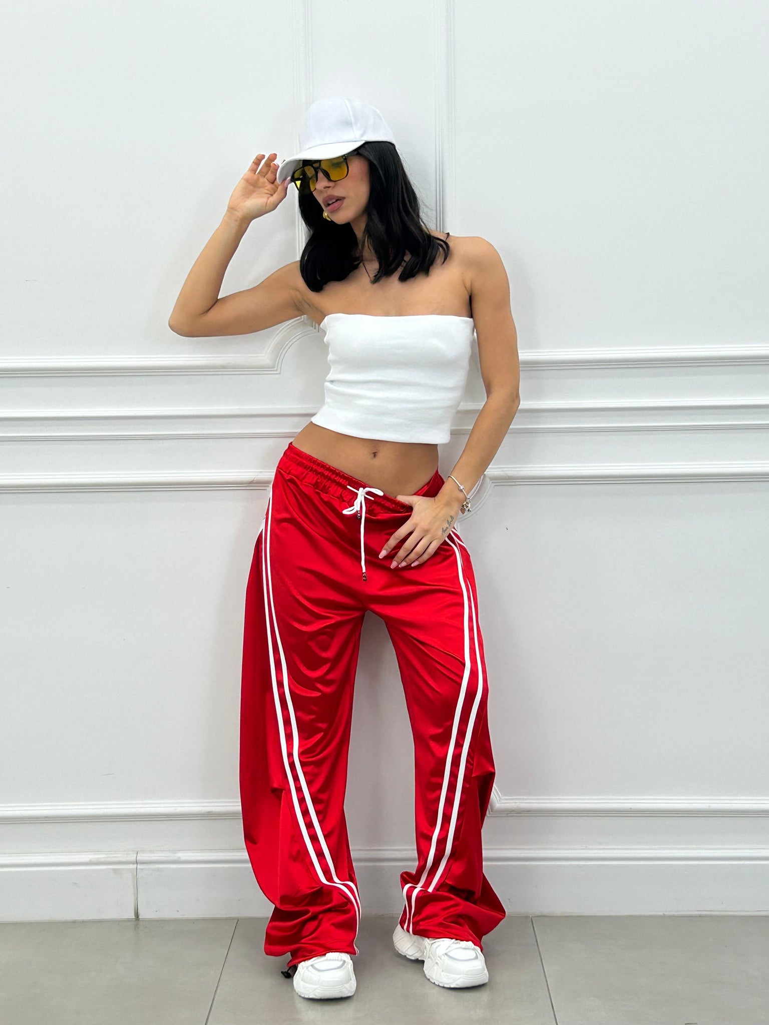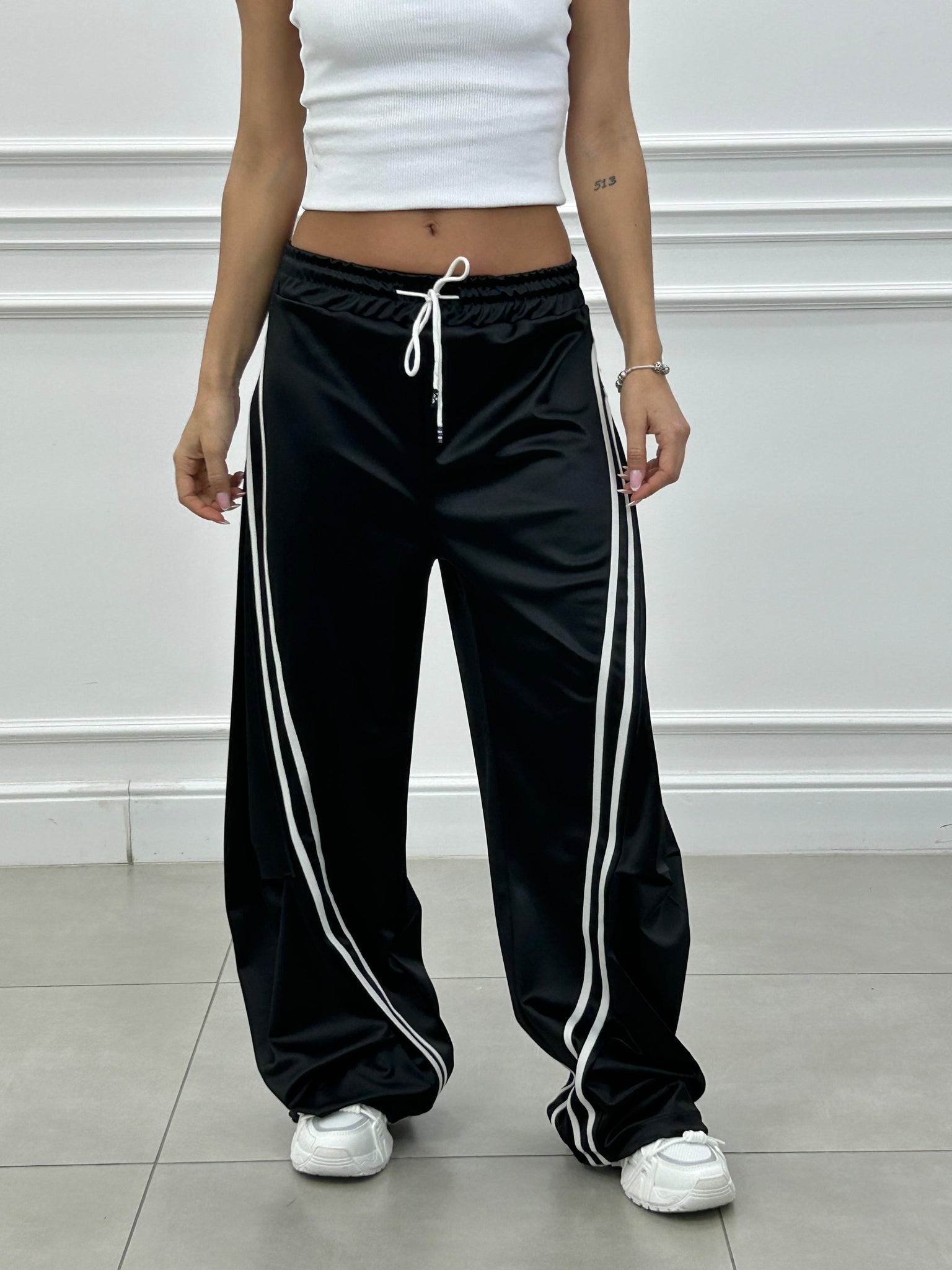 Pantalone di tuta effetto balloon con righe a contrasto.