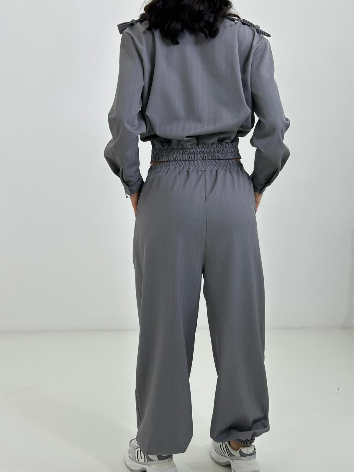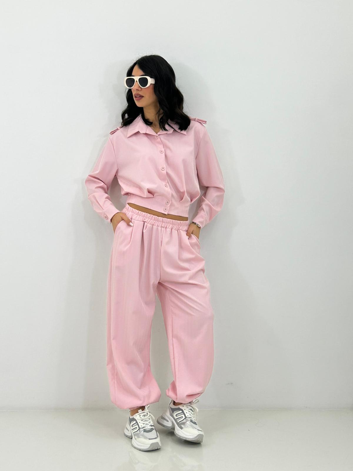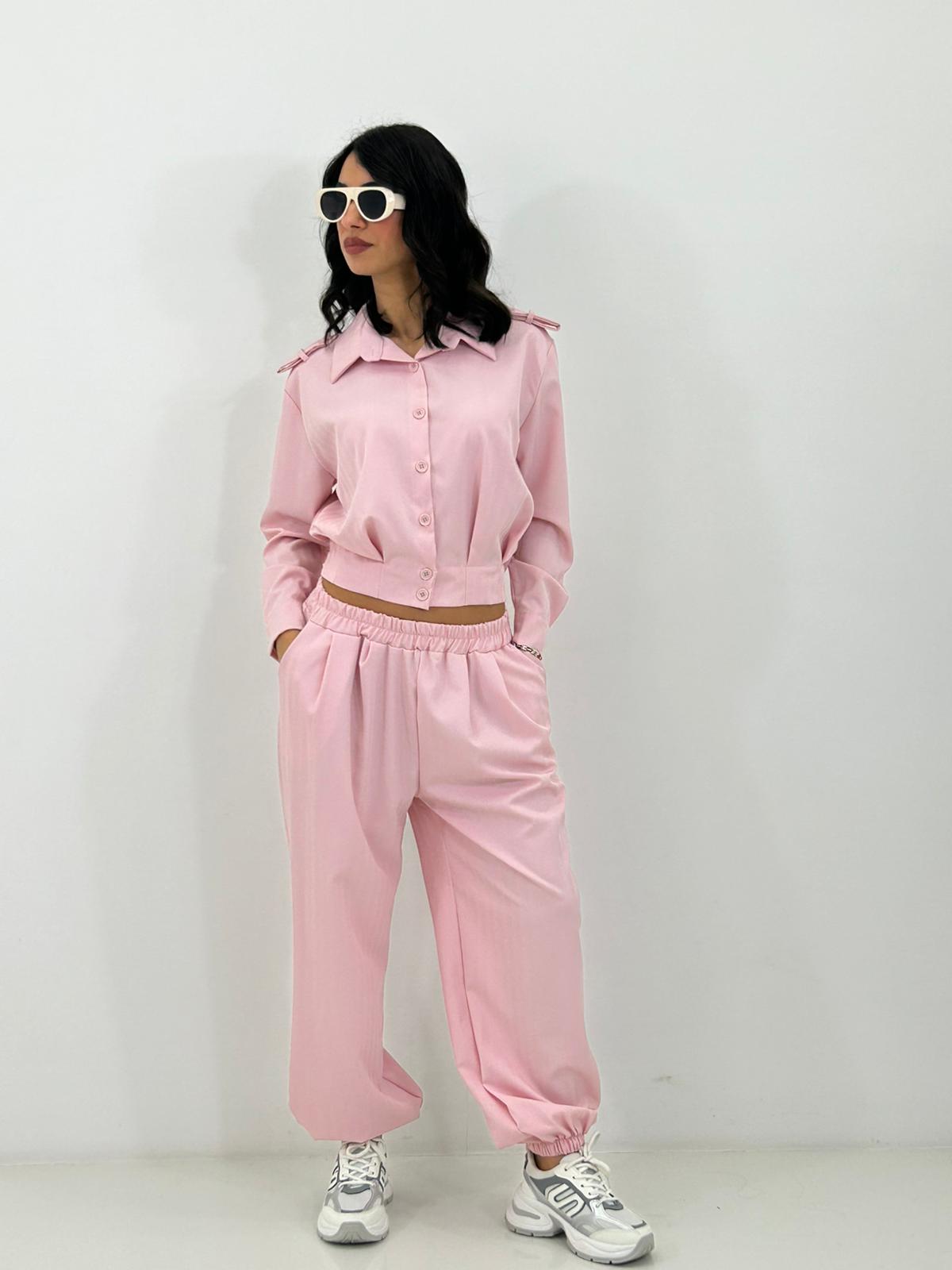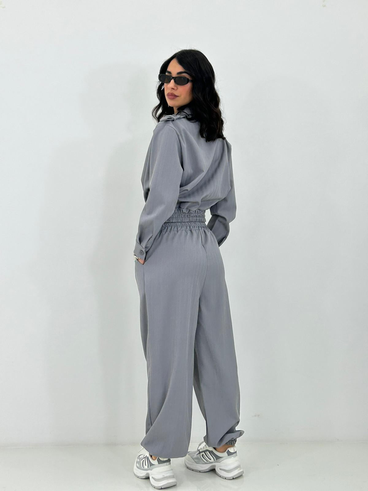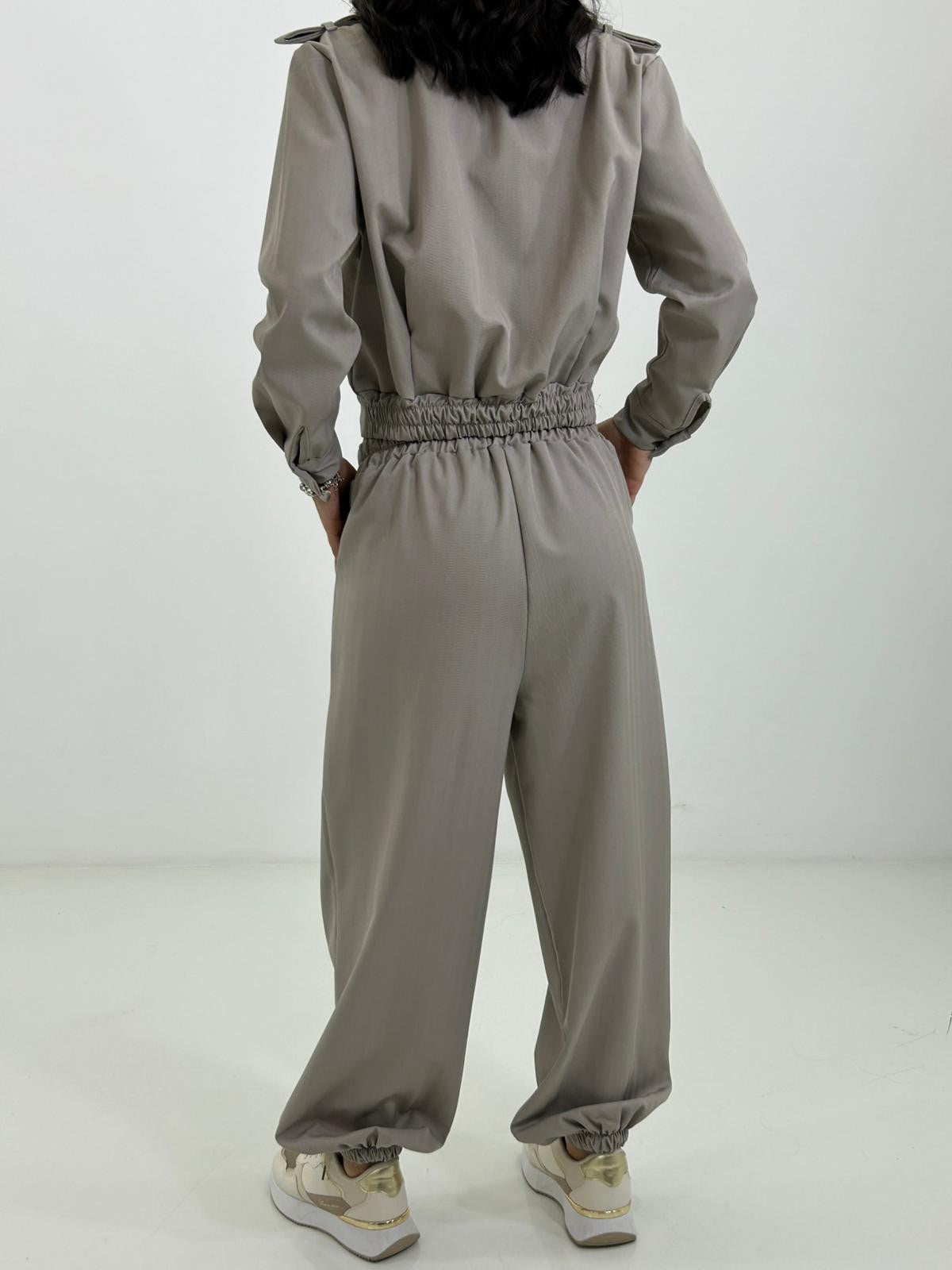 Coordinato giacca con bottoni e colletto , pantalone con elastico in vita e caviglie