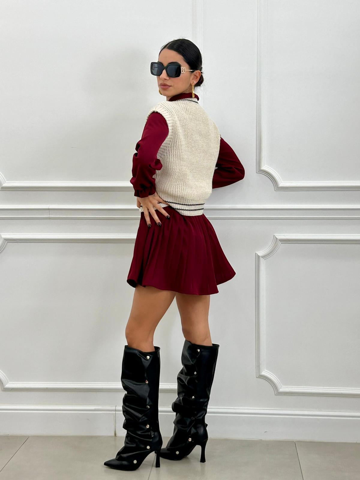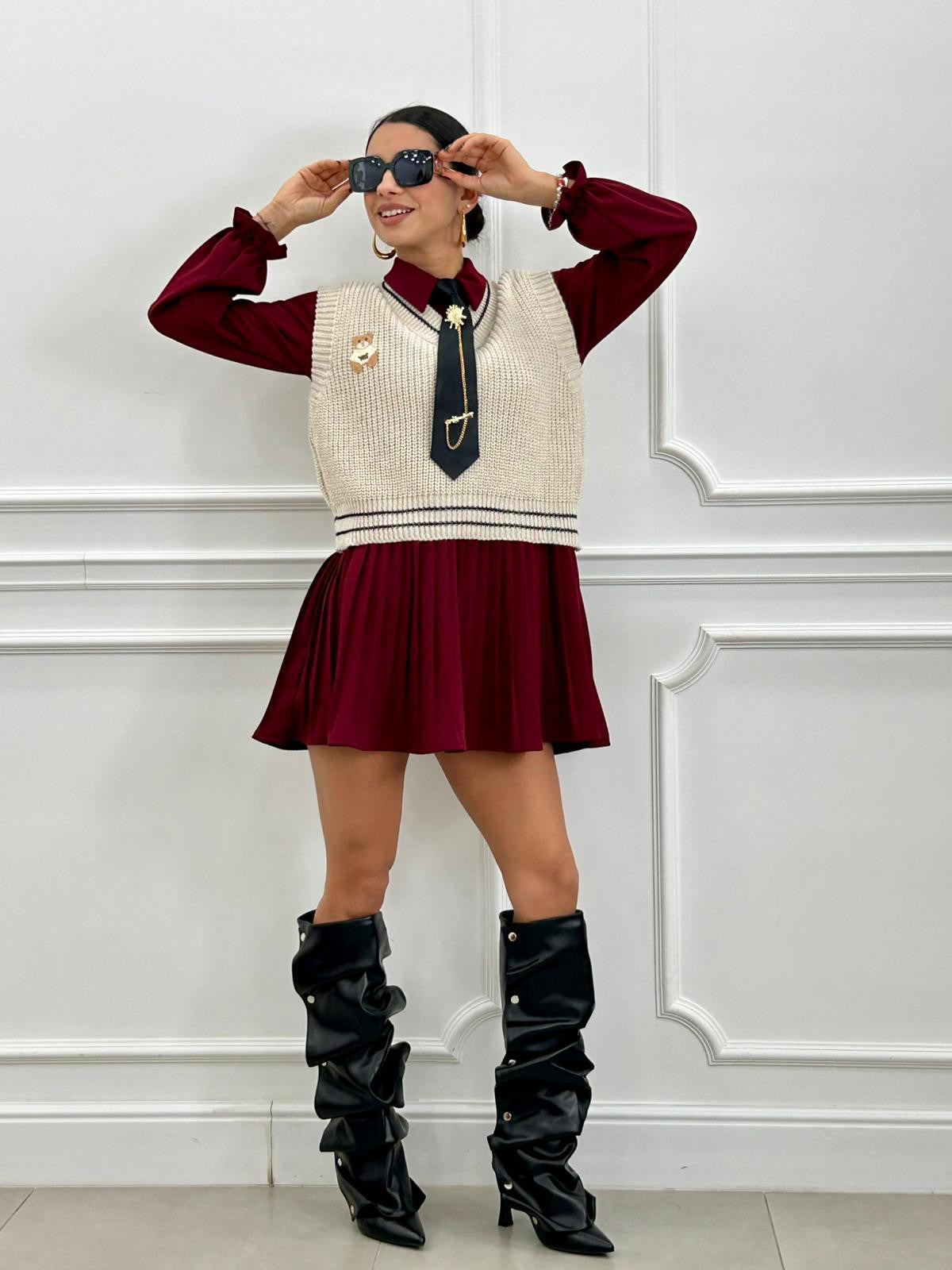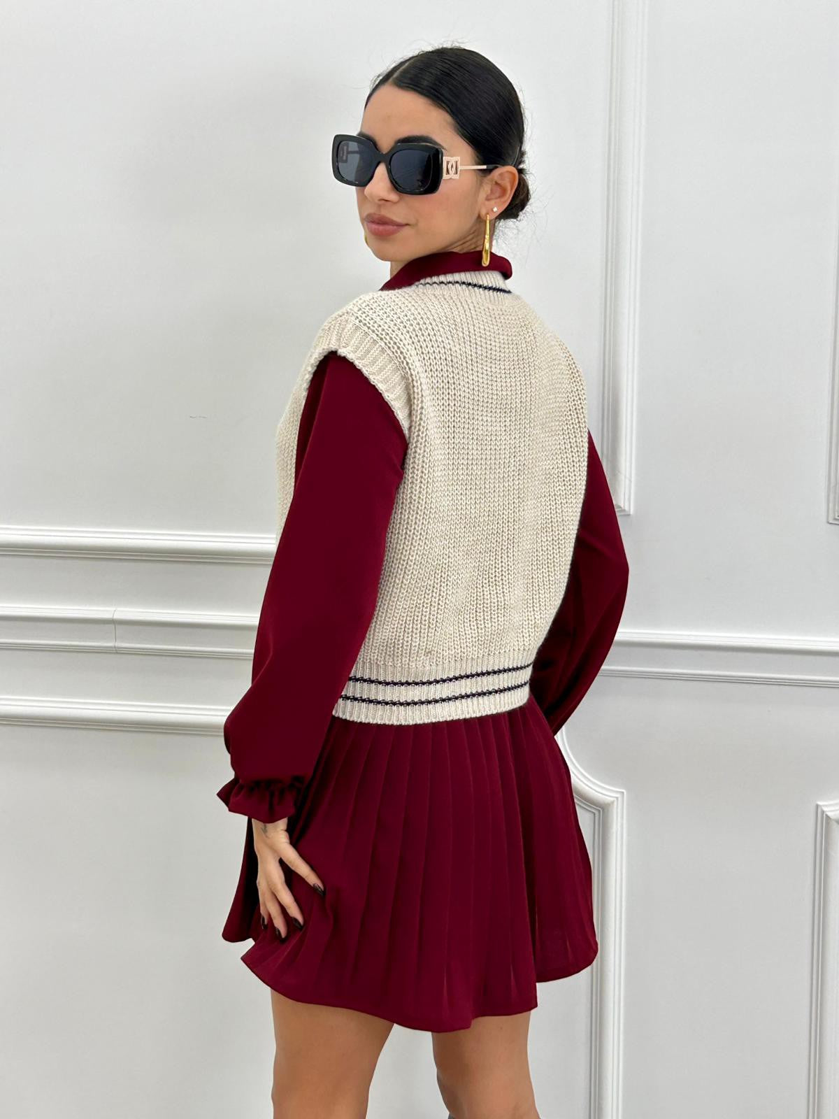 Set due pezzi , vestitino con cravatta e maglioncino smanicato