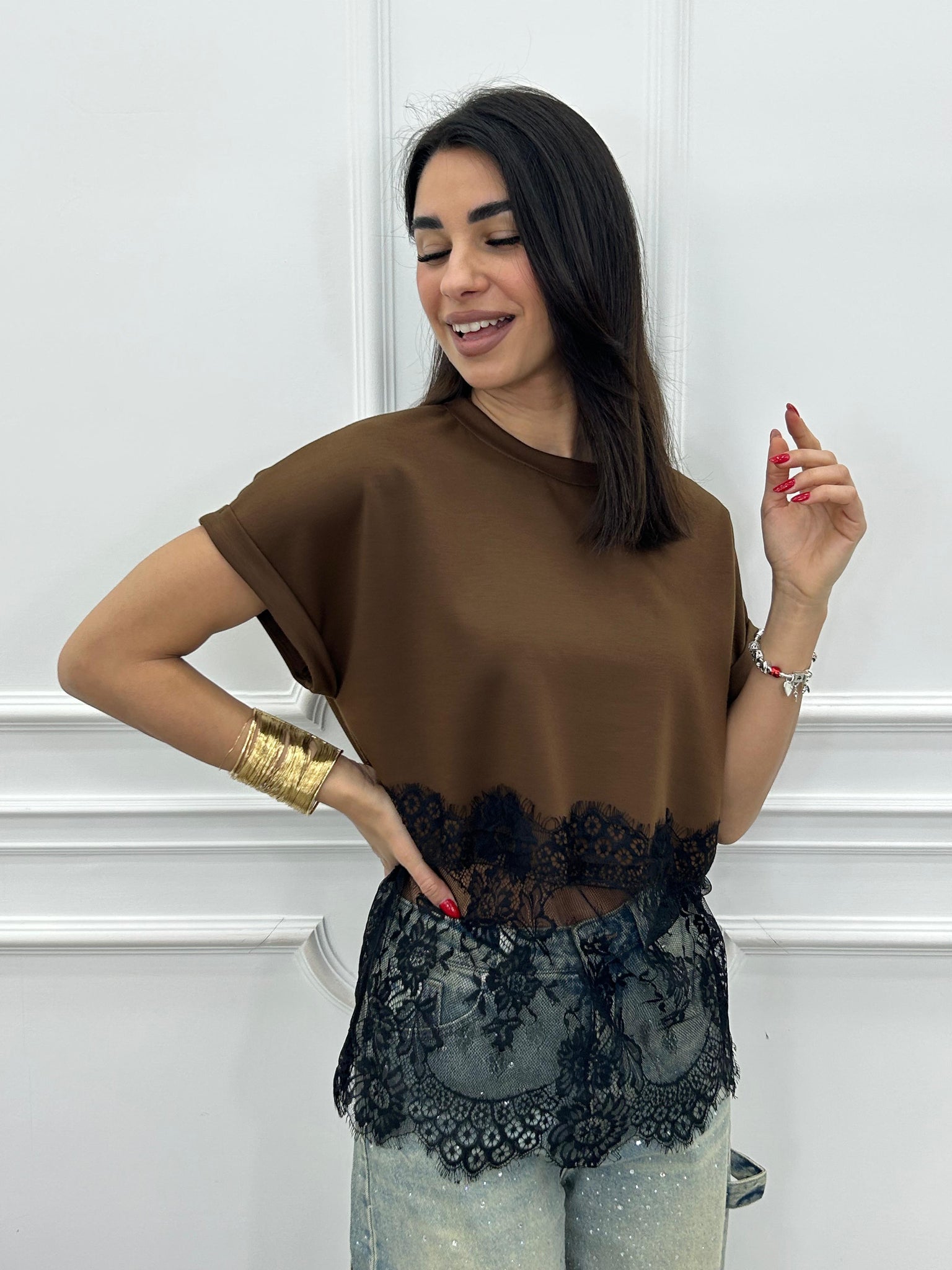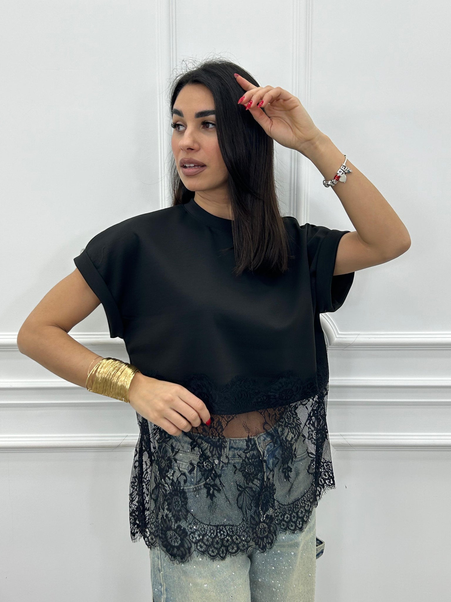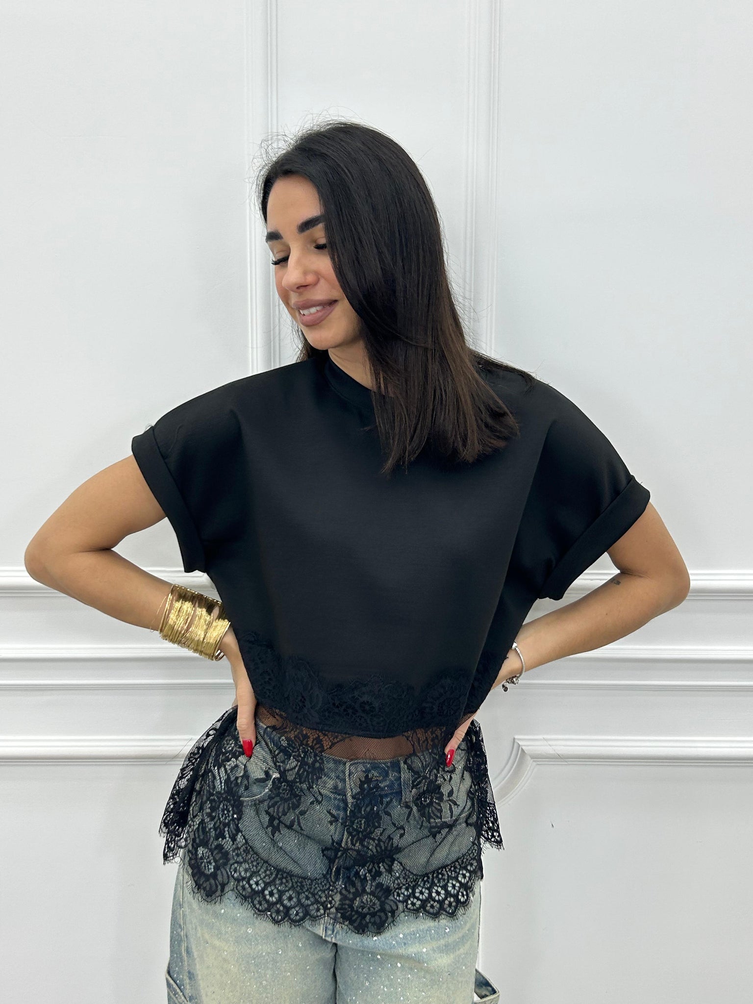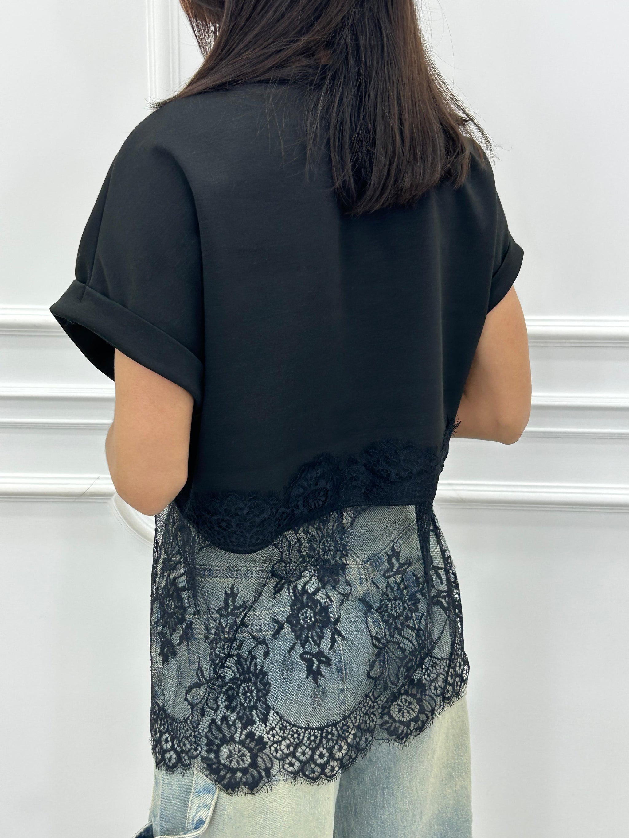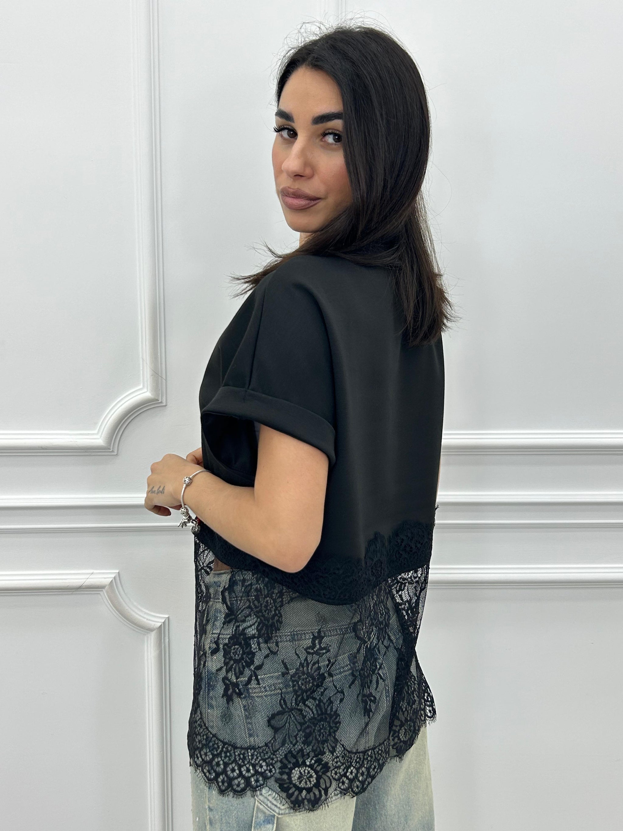 T-shirt mezza mancia con dettaglio in pizzo